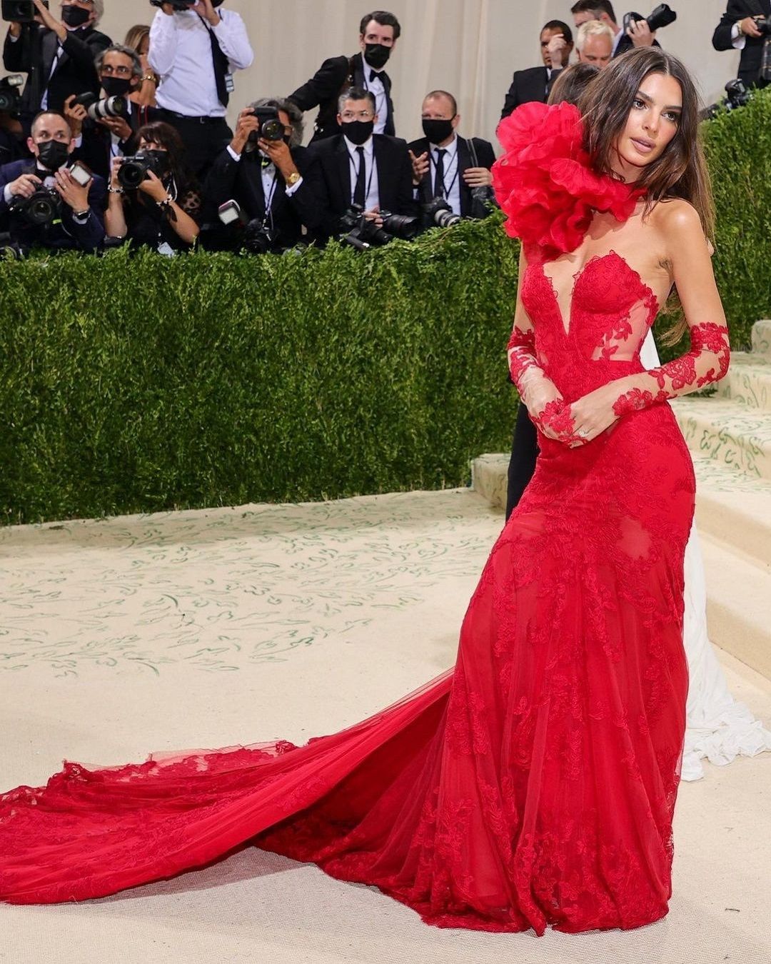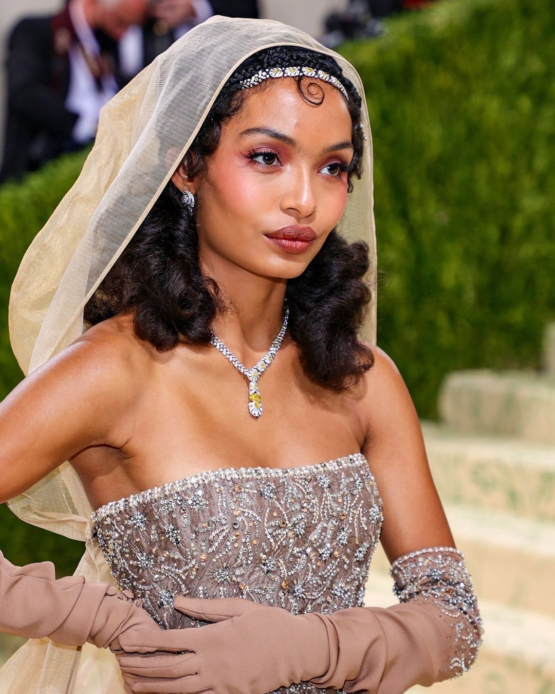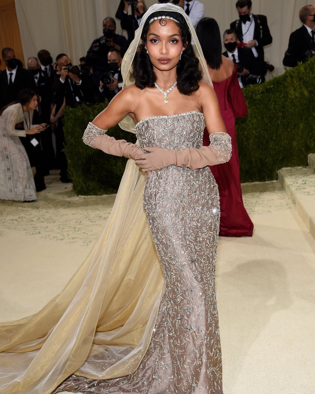 Everyone expected Billie Eilish (host of the gala together with Timothée Chalamet, Amanda Gorman and Naomi Osaka) to appear in Gucci or with a contemporary look, instead the singer opted for a voluminous dress by Oscar de la Renta, a bit Peach Blossom Barbie style, matched with a soft blonde bob and a beauty inspired by Marilyn Monroe. On the lips, however, no 50s red lipstick, but a nude lipstick. Definitely more literal the homage of Kaia Gerber who wore the same dress, also by Oscar de la Renta, worn by Bianca Jagger at the Met in 1981. Some other examples? For Yara Shahidi the inspiration came from Josephine Baker; Gigi Hadid with her asymmetrical black and white Prada, looked like a modern Rita Hayworth; while Emily Blunt's Miu Miu dress recalled the model worn by Hedy Lamarr in the movie Ziegfeld Girl.