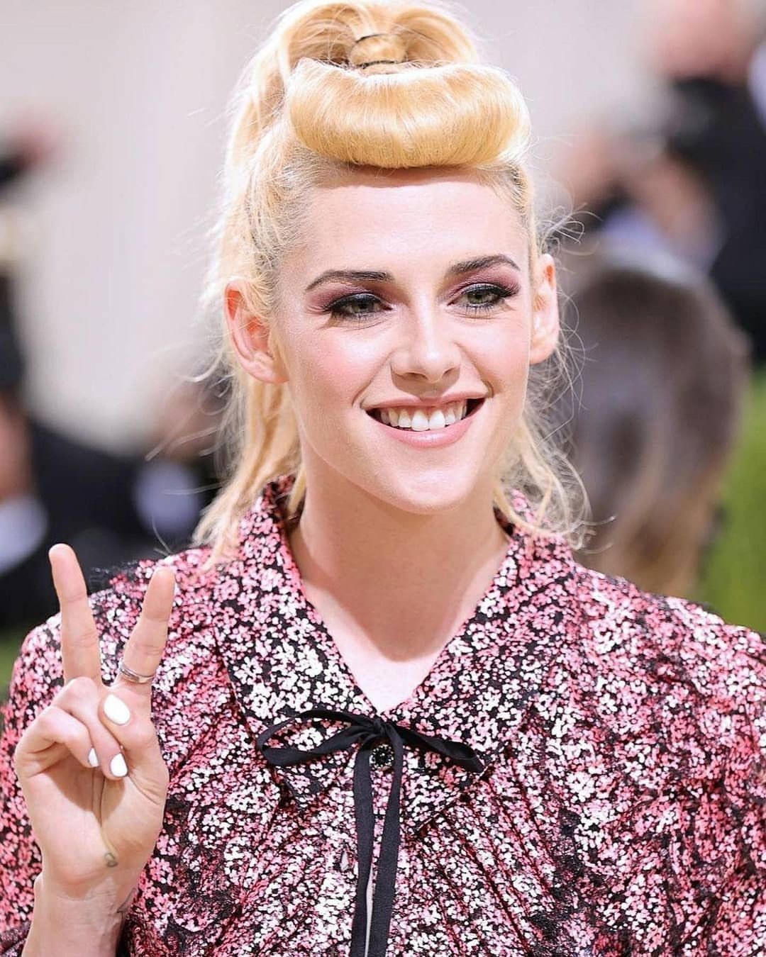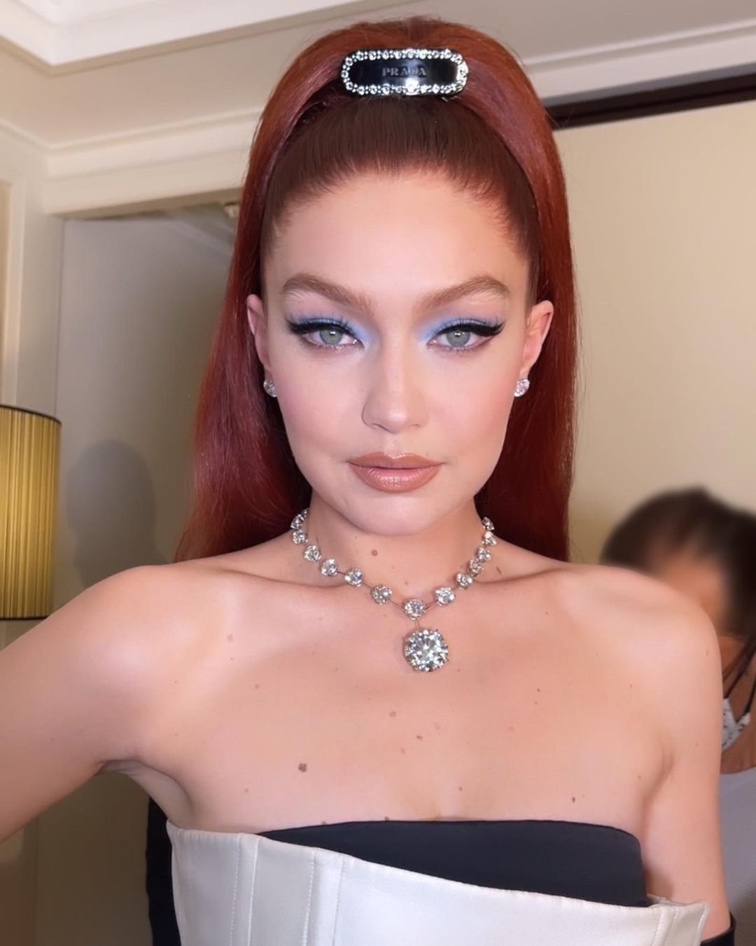 As already mentioned, even for beauty, the inspiration comes from vintage, from the Golden Age of Hollywood with red lips, cat-eyes, waves and '50s hairstyles in the spotlight. The looks to copy? Gigi Hadid, a bit Jessica Rabbit, with blue eyeshadow, eye-liner and a very high ponytail; Kristen Stewart's curly 50s pinup bangs; Rihanna's dark lipstick that can also be worn with a simple beanie; Emma Chamberlain's graphic and colorful eye-liner.