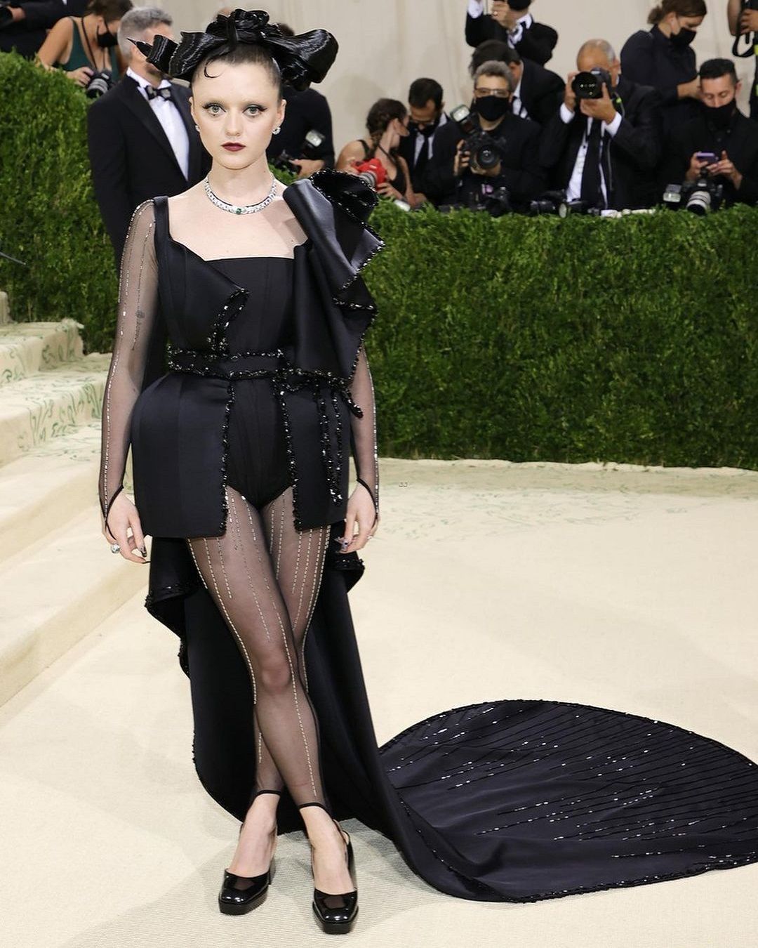 On the red carpet there were many looks that mixed nude and bling-bling effect such as Zoë Kravitz in Saint Laurent, Emily Blunt in Miu Miu or Kendall Jenner in Givenchy as well as many voluminous models with a great scenographic effect such as the Valentino creations for Carey Mulligan and Bee Shaffer or Rihanna's black Balenciaga dress. The same brand also for Kim Kardashian who brought the concept of total black on another level. The queen of KUWTK arrived at the Met together with the designer Demna Gvasalia with a mini-dress with a long train, Knife socks boots tight, long and a balaclava that completely covered her face.