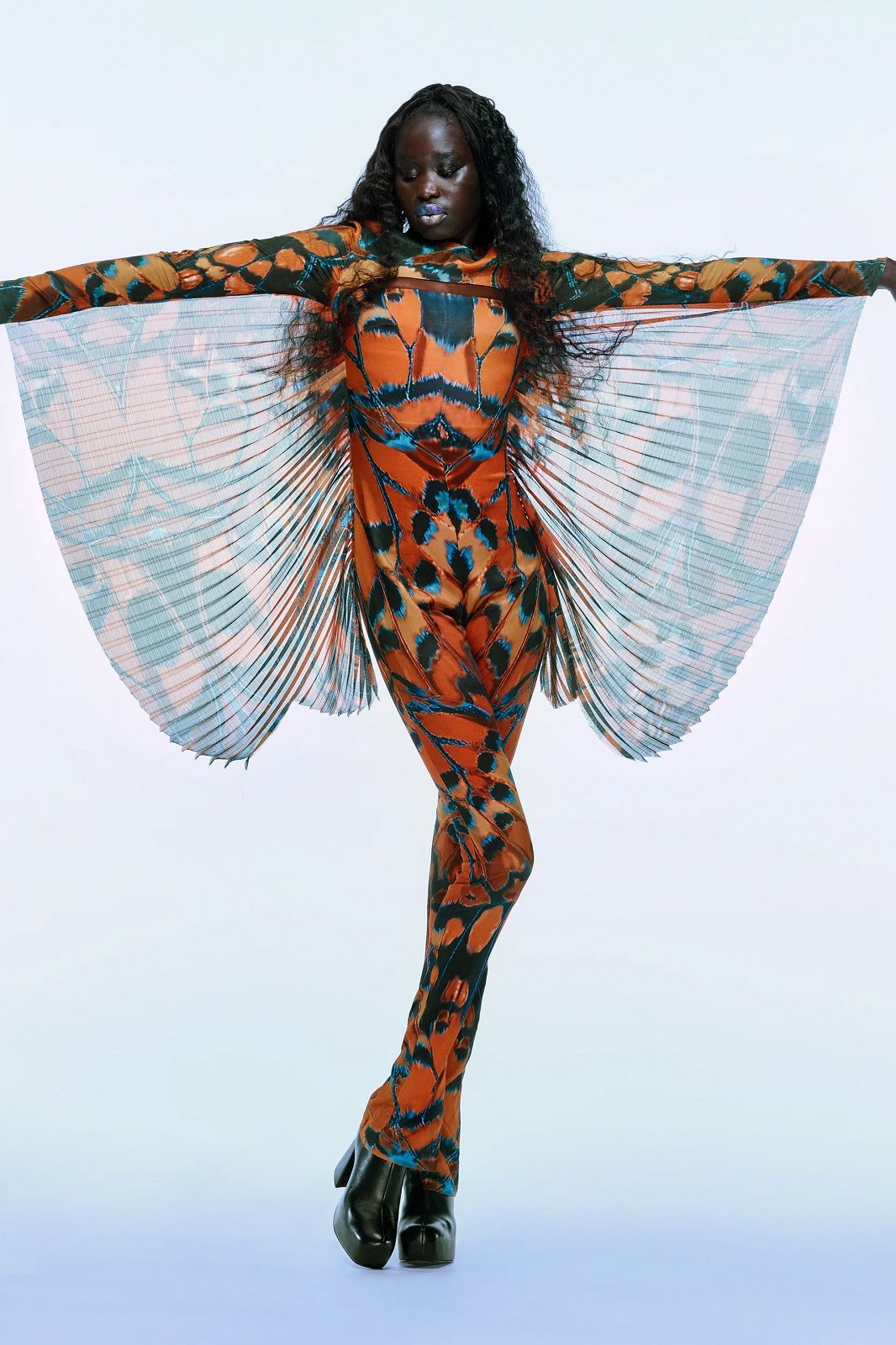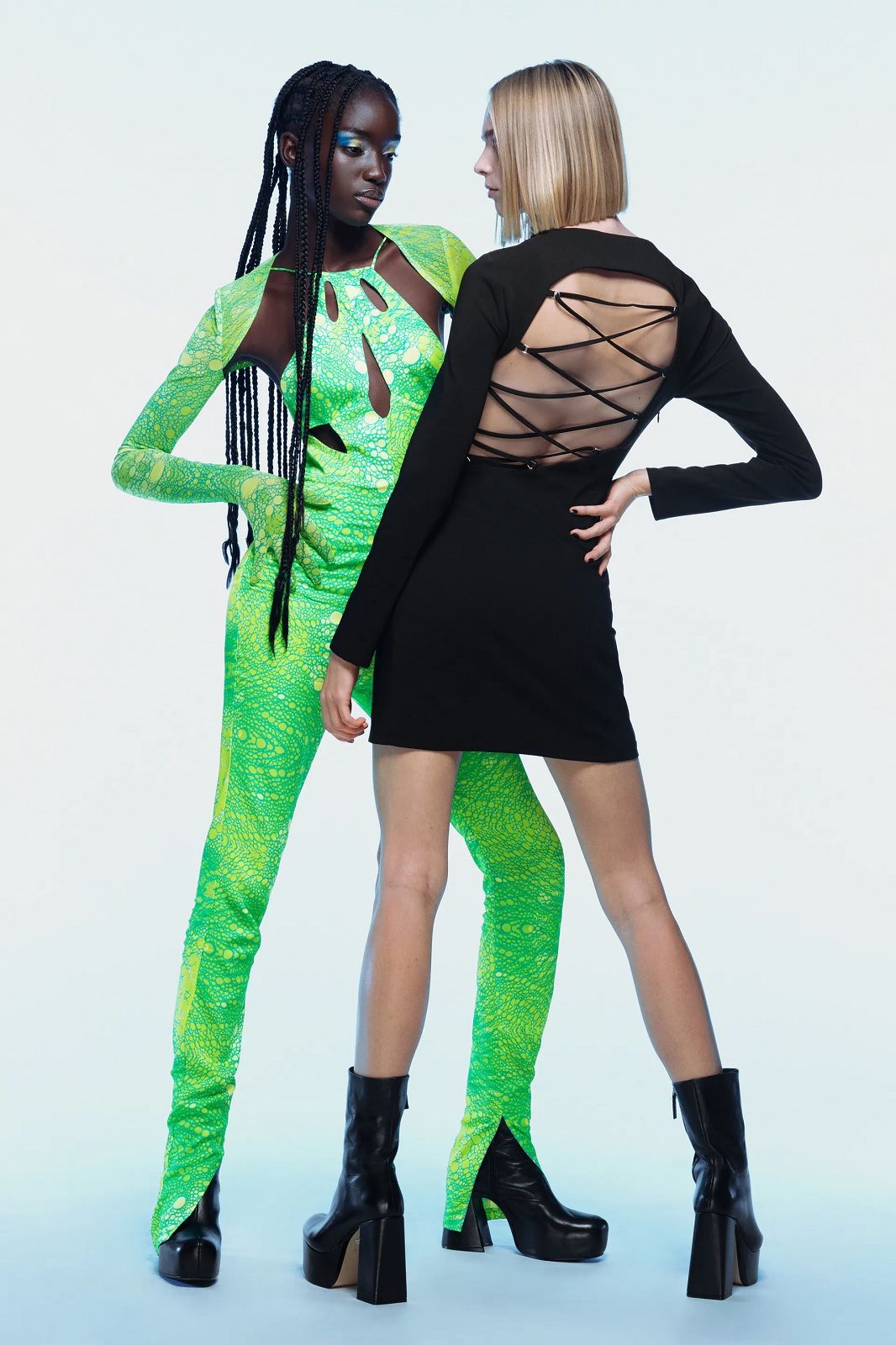 If you don't want to spend hours watching Tik Tok to learn how to make the most spooky make-up or go crazy looking for the most original outfit to wear on the night of October 31st, don't worry! Zara can help you. The Iberian retailer has launched two collections for Halloween. The first is called Game Collection and is a real mini line of six costumes inspired by fantastic creatures: robot, butterfly, dragon, alien, spider and galactic. The aesthetics of these catsuits and dresses are very similar to that captivating Y2K nostalgia proposed by brands such as Knwls, LaQuan Smith or Nensi Dojaka. The fitted silhouettes, butterfly shapes, cut-out details and particular patterns seem designed to conquer Gen Z or to be worn by celebrities like Dua Lipa and Kendall Jenner.