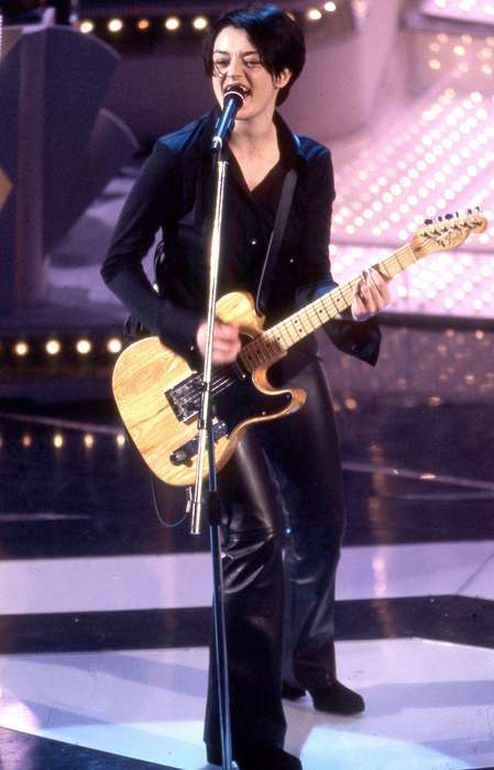 The 90s also arrived in Sanremo, but while grunge, Brit-pop, boy and girl bands were all the rage in the rest of the world, five women, each with her own sound, were destined to influence contemporary Italian music on the Ligurian Riviera. The first is Carmen Consoli: brunette bob, red lipstick, latex shirt and trousers, a southern riot girl with a proud look, a guitar in her arms and a song, Confusa e Felice, that was to become a radio hit. The second has blonde curls and an open smile, Irene Grandi with her soft mini dress, amphibians and muffs. Marina Rei, on the other hand, entered the stage barefoot, in a sheer blouse and jewelled belt. She immediately impressed with both her talent as a multi-instrumentalist and the look that Gen Z Y2K addicts should still emulate today: cropped top, wide trouser legs, fluffy frisée hair, ice eyeshadow and metallic purple lipstick. And finally there are Giorgia and Laura Pausini, powerful voices that make legions of teenagers sing, but their musical debut does not match their stylistic potential: they prefer tomboy cuts, little make-up, military-inspired jackets and outfits that do not show them off at all, and we'll have to wait a few more decades for them to shine.