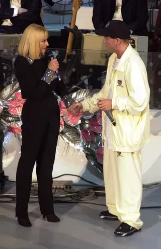 «I designed the clothes I wore on stage, all of them always and only white, because it was the colour of mourning in Chinese culture, which I was studying a lot at the time, and it represented for me the end of the love story I was talking about in the song», Elisa will often say this, remembering the gauzy top and white trousers she wore to perform her first hit in Italian, Luce (tramonti a nord est): she arrives smiling, shy and barefoot, and although the announced winner is called Giorgia, she surprises everyone and takes home the podium. The new millennium also marks the triumph of another outsider, Alexia, a dance wave with funky vibes, expressed in terms of look in zebra print, scarf, glitter or striped trousers and micro tops. A combination not too different from the one worn by the very young Paola and Chiara in black latex trousers and pastel shirts. It is impossible not to remember the two of them, dressed alike, sitting on high stools and looking into each other's eyes as they sang Amici come prima in unison. The Iezzi sisters are not yet the it-girls we will remember from the video of Vamos a bailar, but already in the late 90s they hint at their biting potential. The first outfit? A white minidress with 60s glamour, while for their 2001 performance they opted for an off-the-shoulder top and an ultra-short miniskirt with studs and a train.