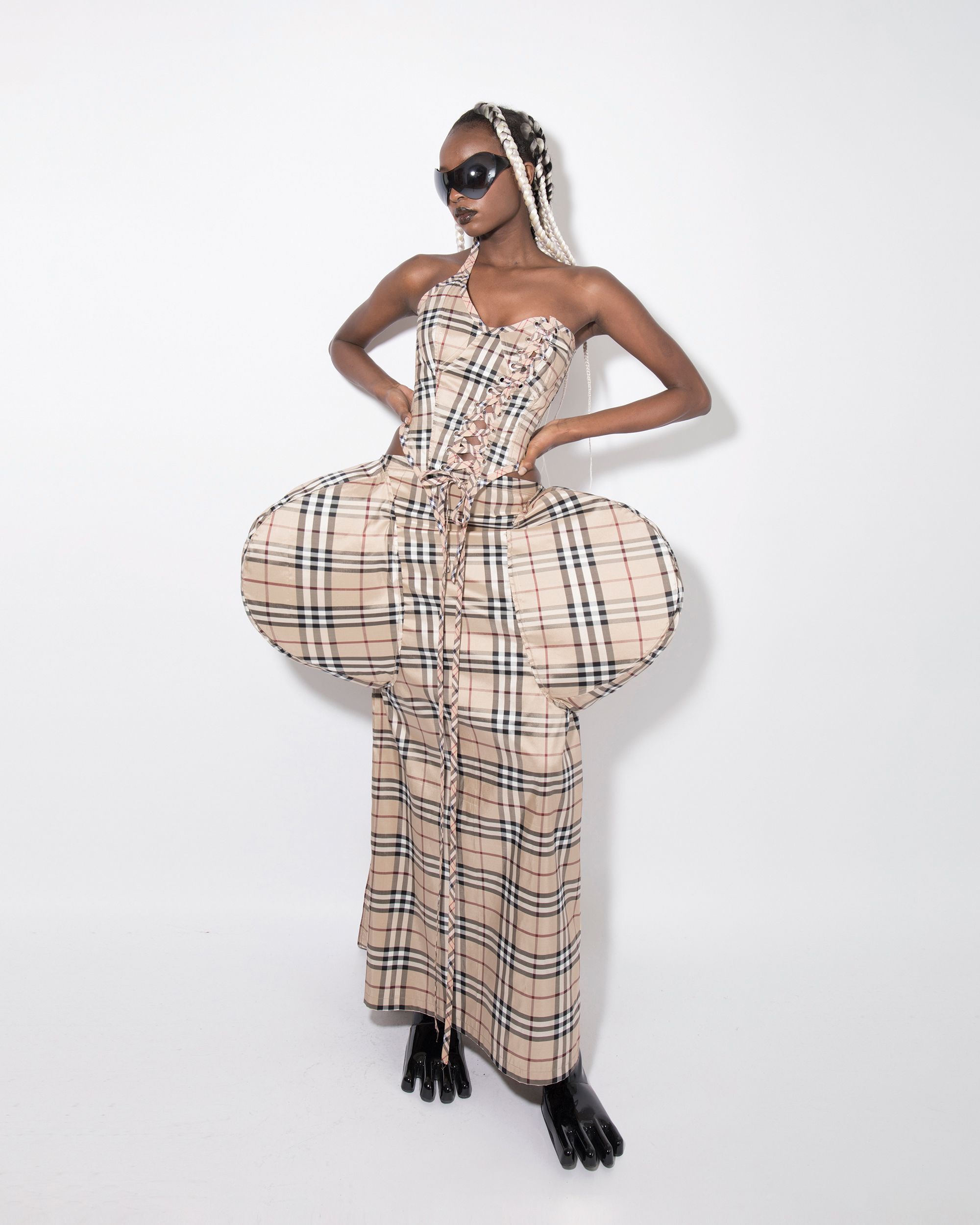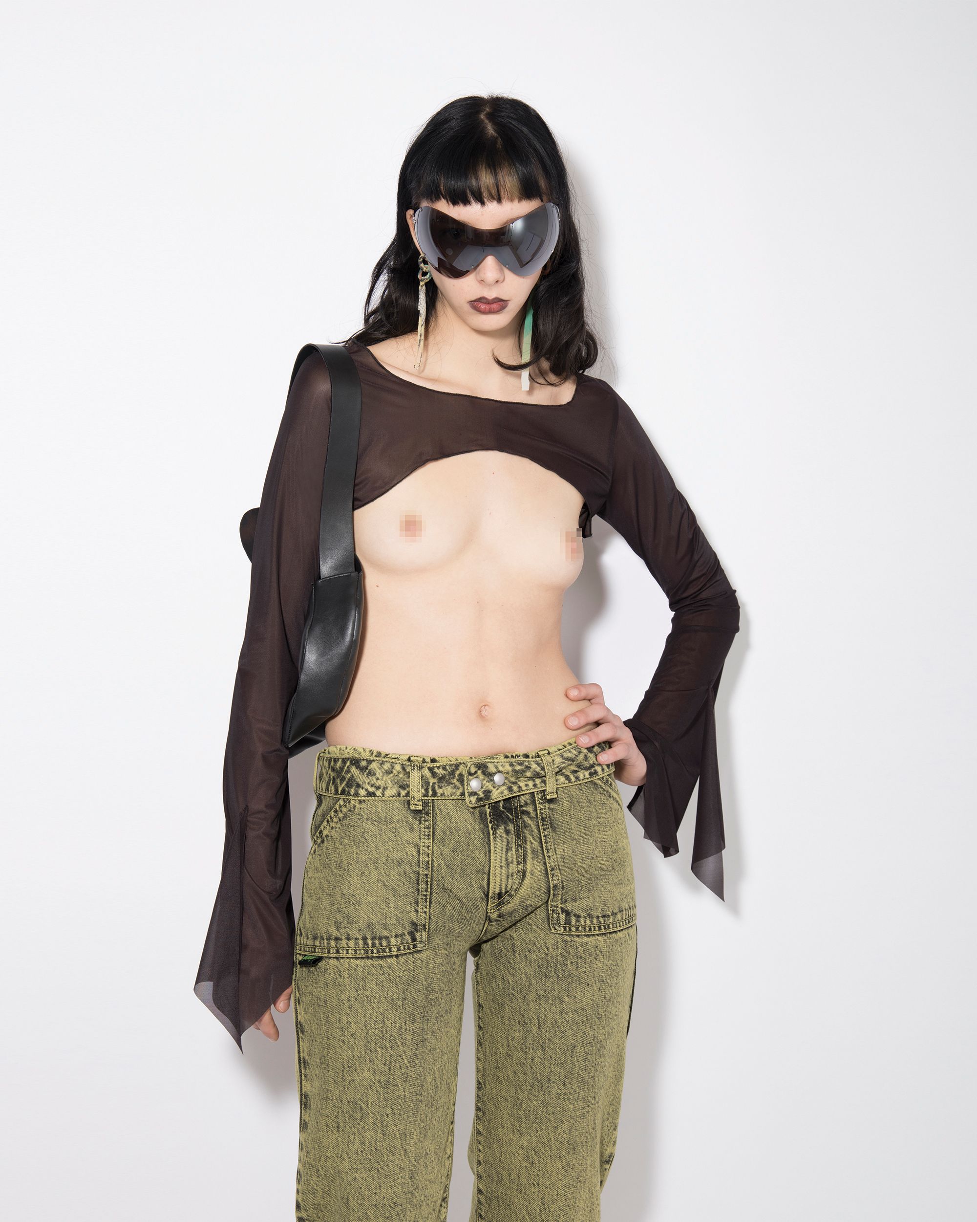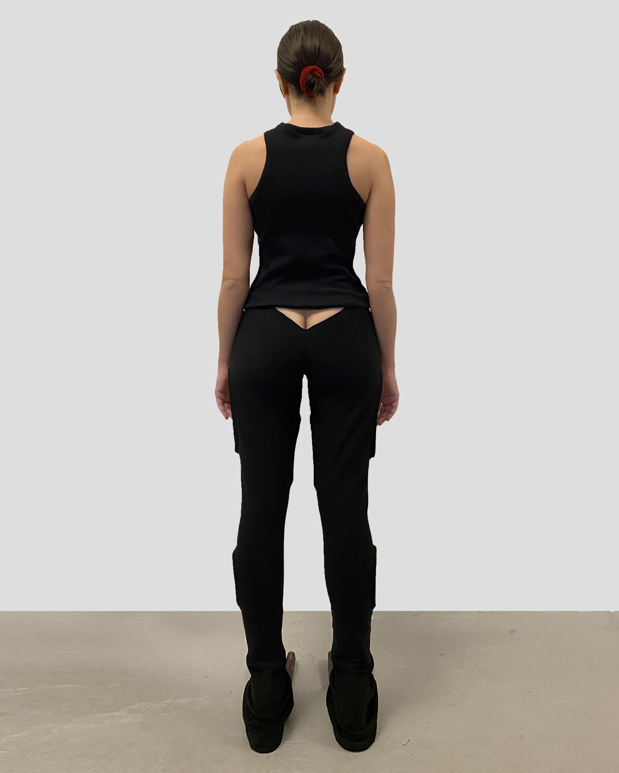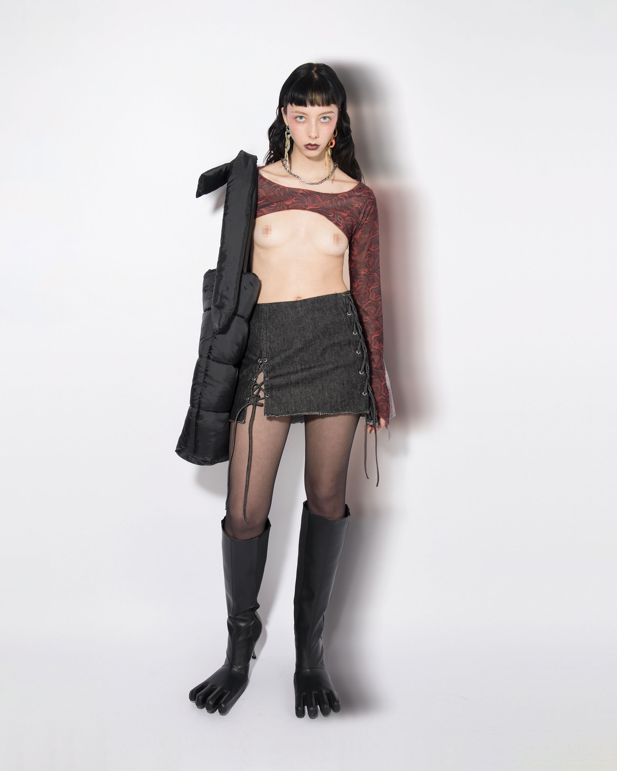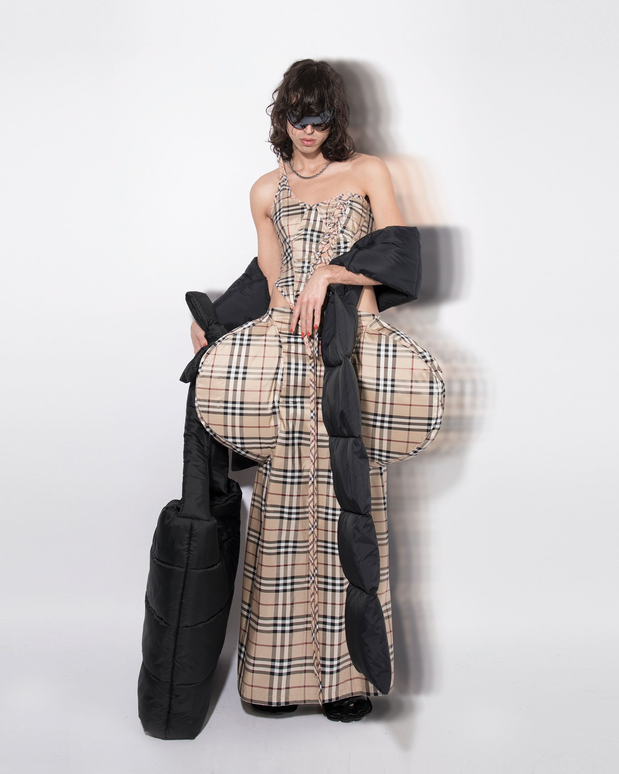 With our latest collection Neo-Nude I wanted to dive into the early 2000s fashion but make pieces that belong in 2022. I wanted to use the low cut trend but exaggerate it to focus on actual cleavage but for the butt. I also wanted to use the exposure of nudity that flourished during the 2000s but instead of covering up the repeatedly stigmatized areas of the body I wanted to shed light on them.
