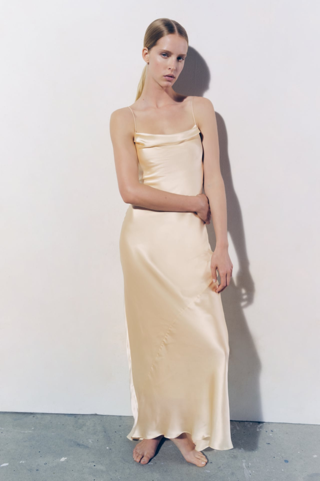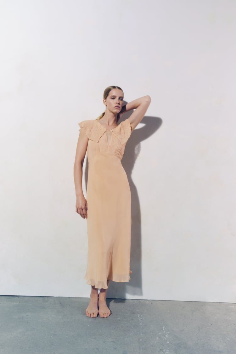 In full Zara-design style, the garments retrieve references from the catwalks and from dresses that have stolen the breath on the red carpets: impossible not to notice the inspiration taken for the long-sleeved dress with lined cuffs from the Dior dress worn by Kate Moss in 2007 at the party for the opening of the exhibition "The Golden Age of Couture Gala" at the Victoria and Albert Museum. Same for the dress with draped neckline that is very reminiscent of the slip dress worn by Gwyneth Paltrow for the Oscars 1996.