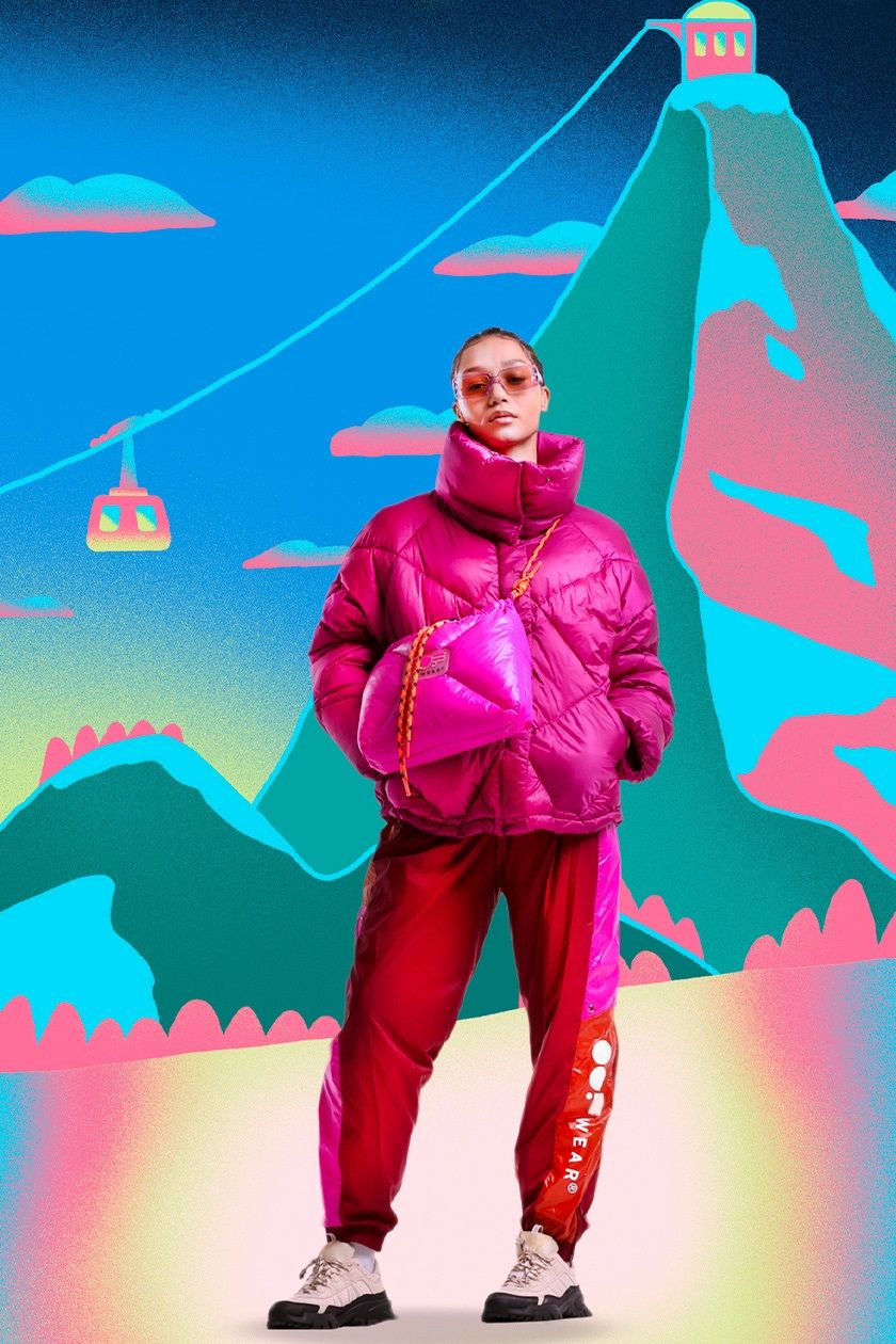 OOF WEAR is back with a new vitaminic, fun and versatile collection that brings a captivating joie de vivre to the FW 2022/23 season. Alex Prager's shots, with their saturated tones and cinematic allure, are the starting point for Retro Pop Future and its outerwear that mixes different colours, materials, silhouettes and textures to create a unique style explosion. Voluminous shapes meet floral or spotted patterns and a rainbow of fluorescent and acid colours contrasted with softer, earthy tones. Lilac, fuchsia, yellow, green, mustard, blue, white, brown, red, pink, purple, orange invade with their pop cheerfulness the light nylon down jackets, to be chosen in the matt or shiny version; the padded colour block waistcoats in water-resistant technical fabric, the eco fur prints, but also all the other garments such as leggings, soft knits, wool waistcoats and activewear with a 90s look.