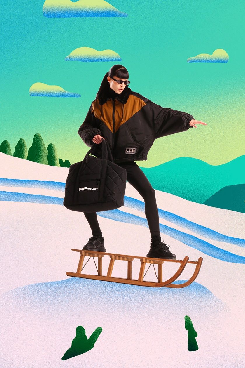 The outerwear with its irresistible verve, combined with the FW 2022/23 apparel pieces, is also the highlight of the video chosen by OOF to launch the new collection. Andrea Calvetti, against the colourful and funny backdrop of illustrator Jonas Kalmbach, takes us on a surreal and ironic journey inside a cable car. Infected by the cheerful pop of the OOf WEAR models, a group of unsuspecting passengers begin to dance, taking them, like by magic, to a virtual disco where style, light-heartedness and fun rule. The film will be on air on 24 February exclusively on the milanofashionweek.cameramoda.it platform.