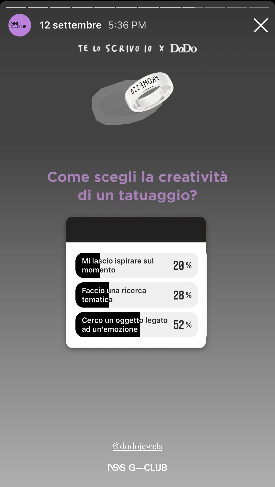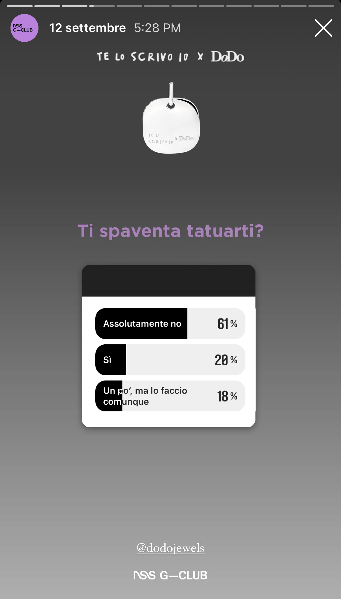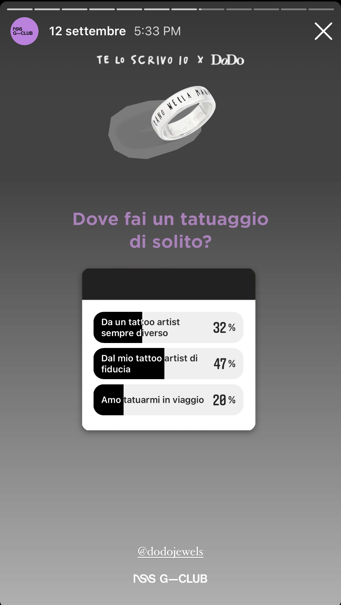 When asked to a 59% tattooed audience, the question Are you afraid of getting a tattoo? 62% of users who answered in the negative, confirming the new generation's passion for tattos, while only 20% said they were afraid of getting a tattoo and the remaining 18% who admitted they were a little afraid but did it anyway. Today the value people give to tattoos has changed from the past, but not too much: 66% of users say that for them a tattoo is a symbol that represents a personal memory, such as those who choose to tattoo "On my wave," because every wave has a different length and in life you have to find your own, while 27% tattoo for the aesthetic effect of the design. If one decides to share the meaning of the tattoo with someone, 56% choose a friend, 40 percent a relative, and only 5 percent their partner, a figure that shows how giving a gift of a piece of jewelry such as those in the DoDo x Te.loscrivoio collection can be a good idea to share a message that makes one remember a loved one or unites two people under the sign of a common passion as those who responded to the survey by giving the community their ideas for simple but effective tattoos, for example "Shine" or "Breathe." Ylenia Fabiano's creative irony on DoDo jewelry is irresistible and is besides a super cool gift idea a great cue to take for any future tattoos.