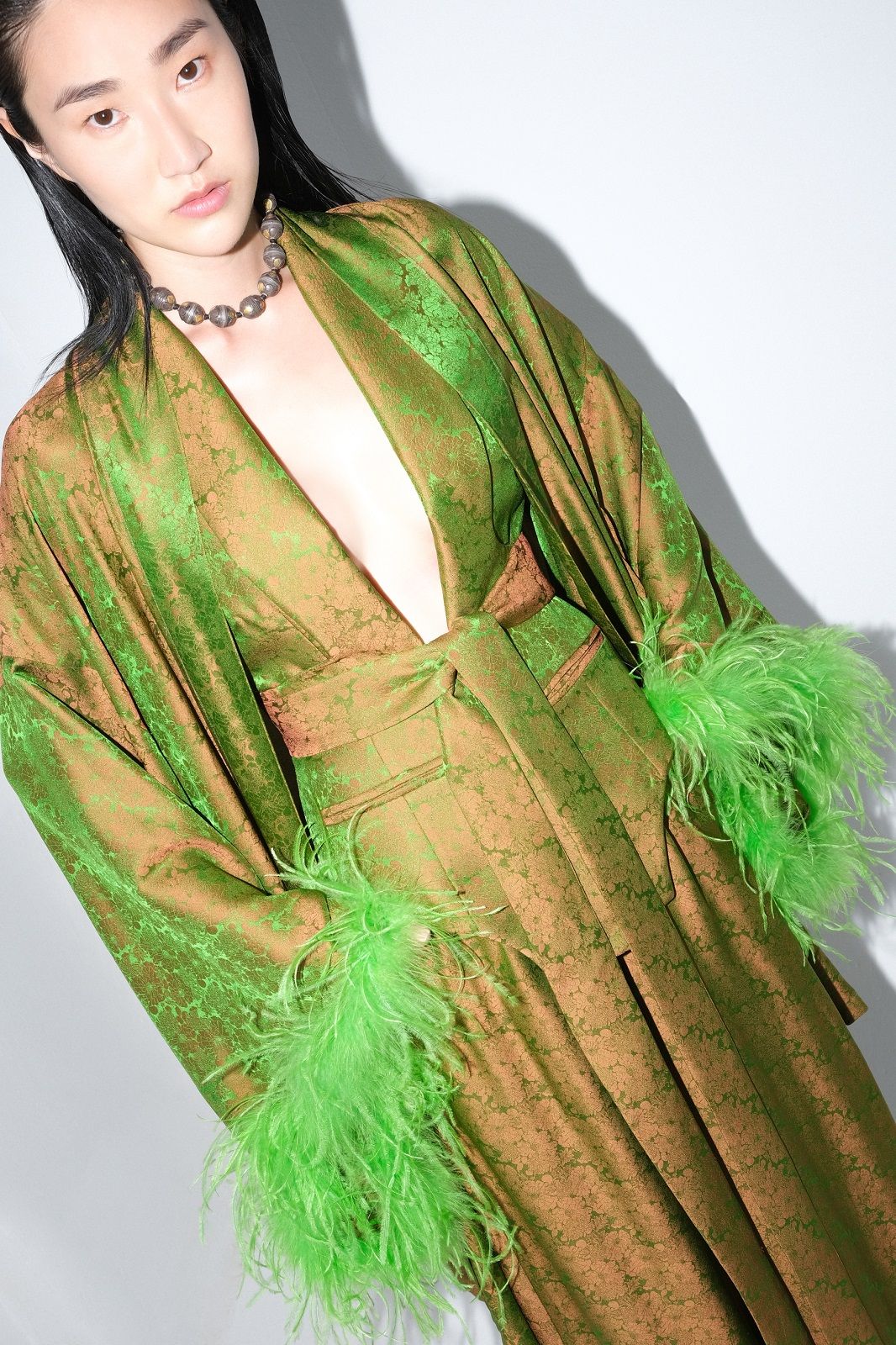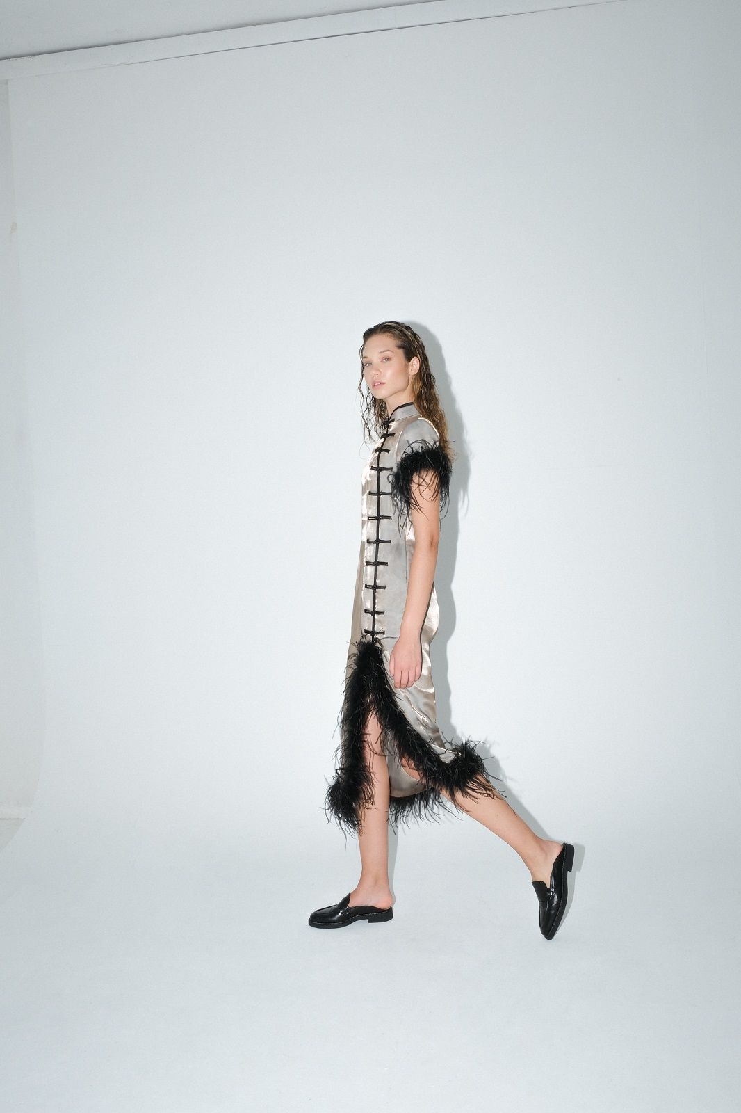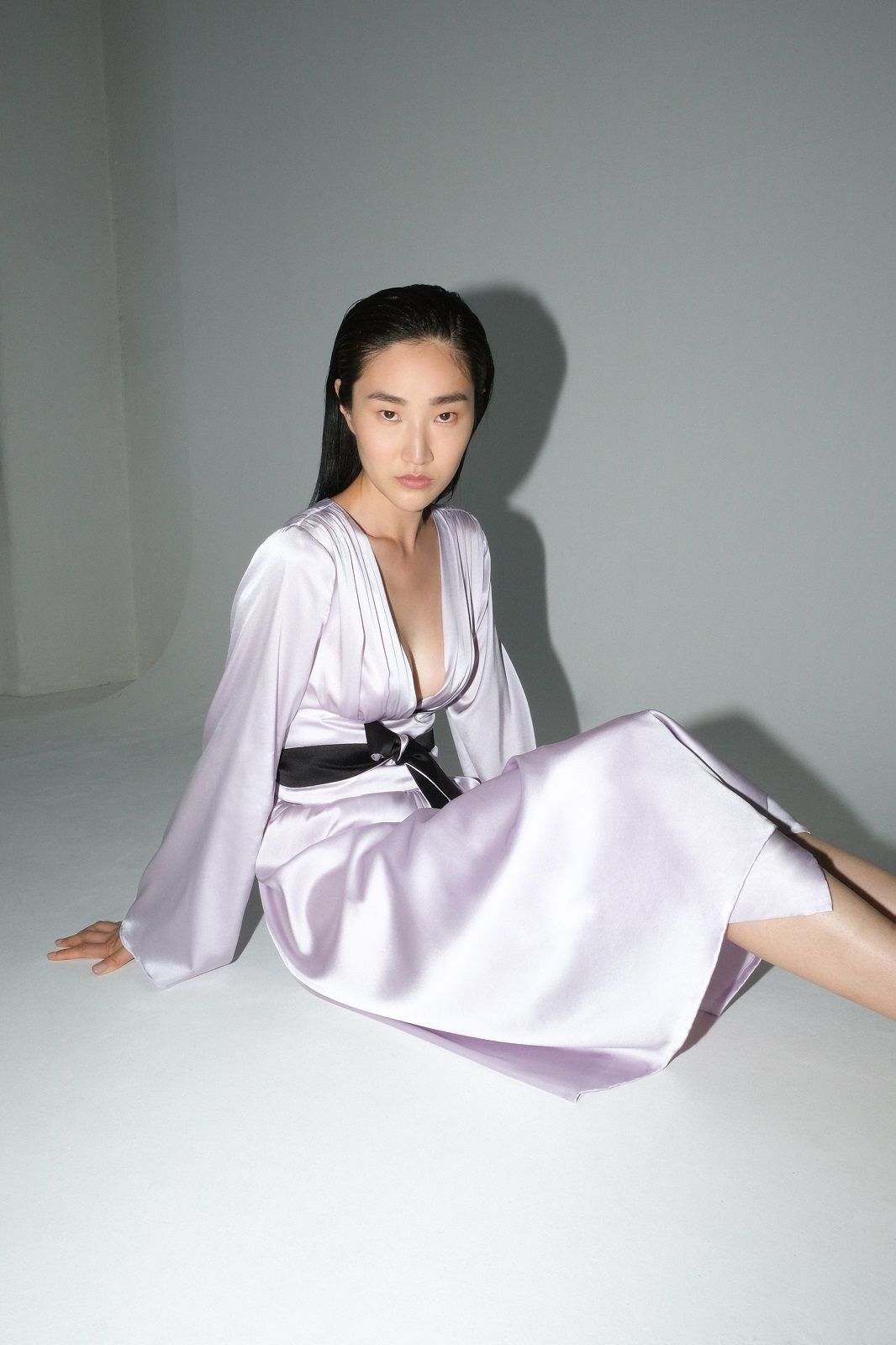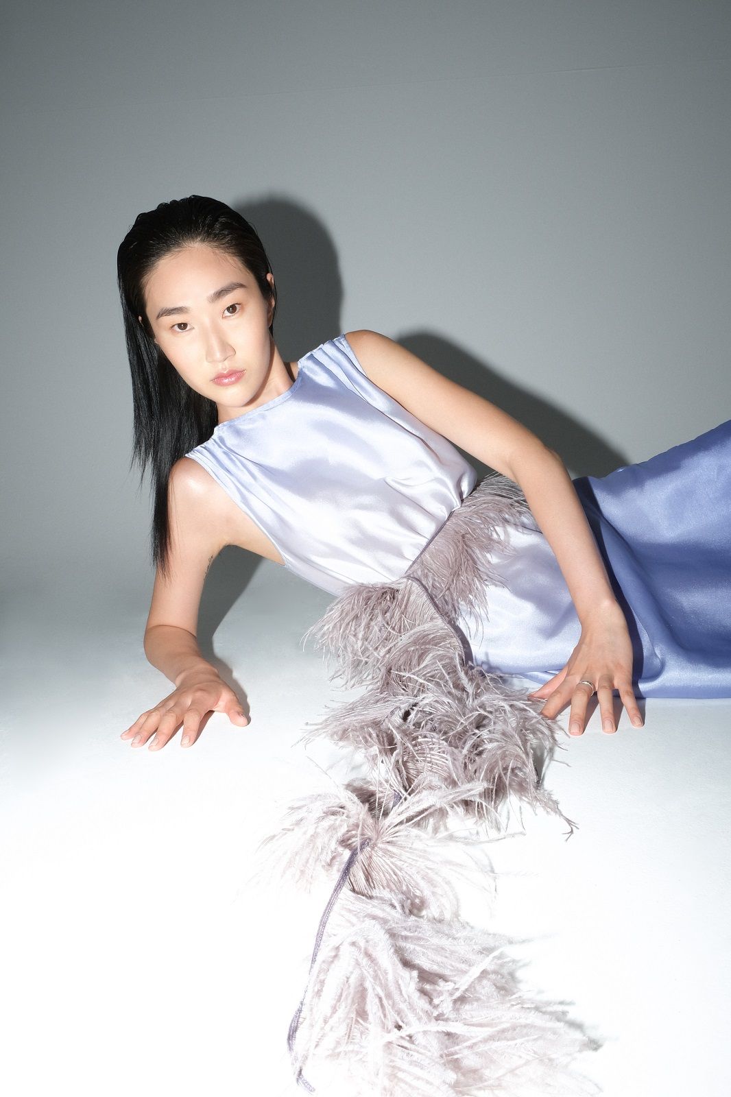 Lisa Von Tang, a talent who mixes Chinese and German origins, chose Milan Fashion Week and, in particular, the exhibition spaces of the Rossana Orlandi Gallery to present her spring/summer 2023 collection. Here, among video installations and sculptures, the young designer's creations paint a picture that speaks of multiculturalism and refined sensuality. Her clothes have the colors of Henri Matisse's works and the understated glamour perfect for dressing a confident and cosmopolitan woman. Lilac, light blue, lime green and natural tones make eye-catching silk jacquard pajama suits; bandeau tops; shorts; silk shirts to be worn with pleated pants; sweetheart-neck bustiers; cotton pants embellished with cut-outs on the hips; shirts that cross over the body; slip dresses; wrap skirts; duster coats; sets with oriental inspirations; bias-cut wool knit minidresses; and fluid, minimalist dresses that revisit the traditional Chinese Qipao dress in a contemporary way and with a hint of mischief. What makes Lisa Von Tang's garments even more intriguing are the details such as feathers, cut-outs, deep necklines and transparencies, but also the choice of fabrics characterized by a tactile component, from hemp to jacquard silk, from wool to cotton.