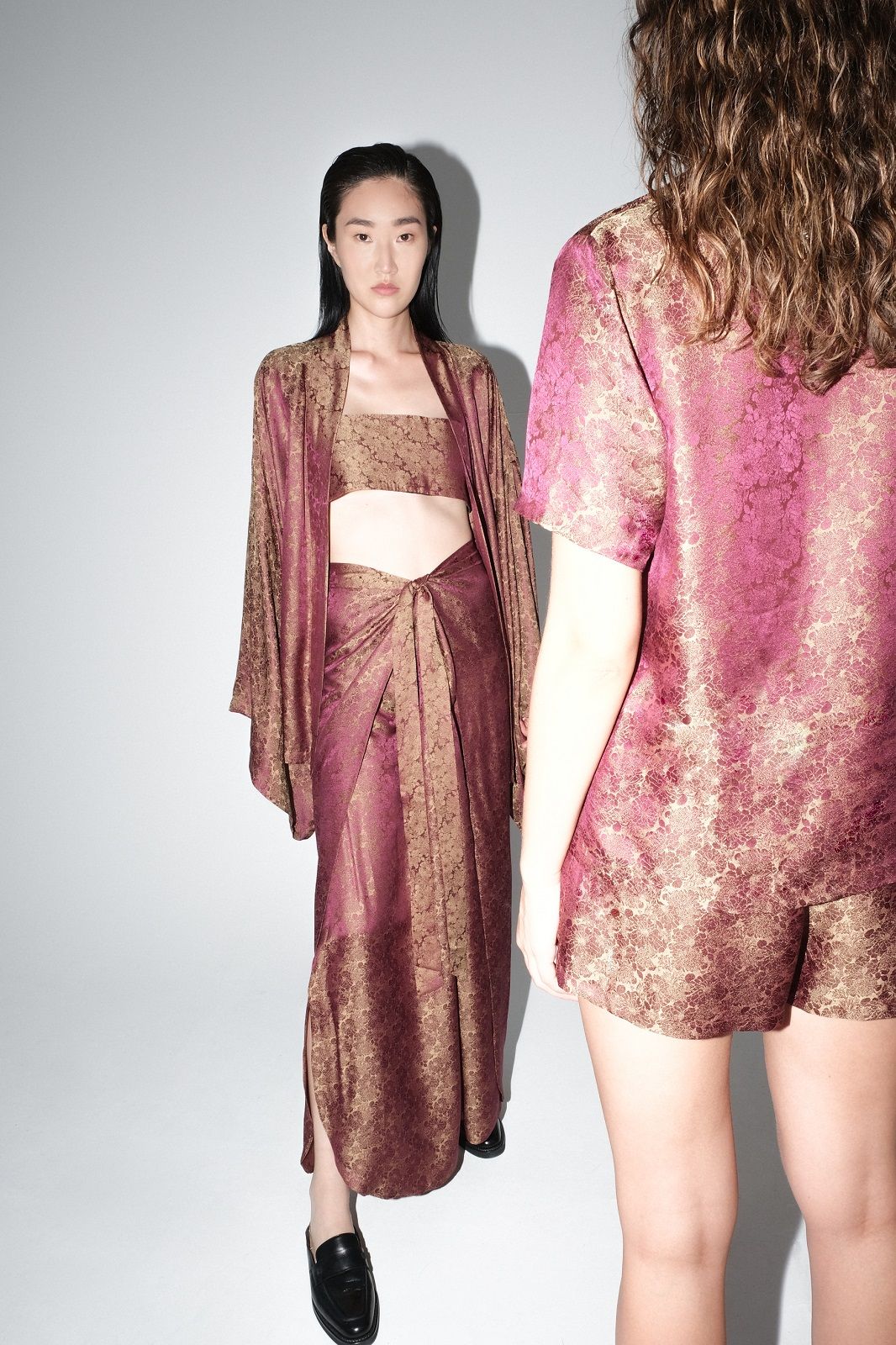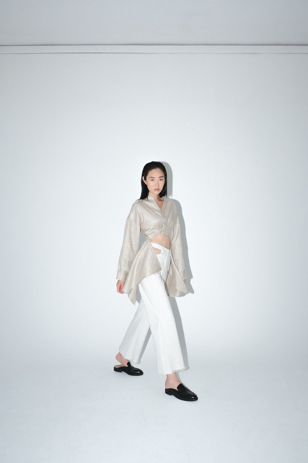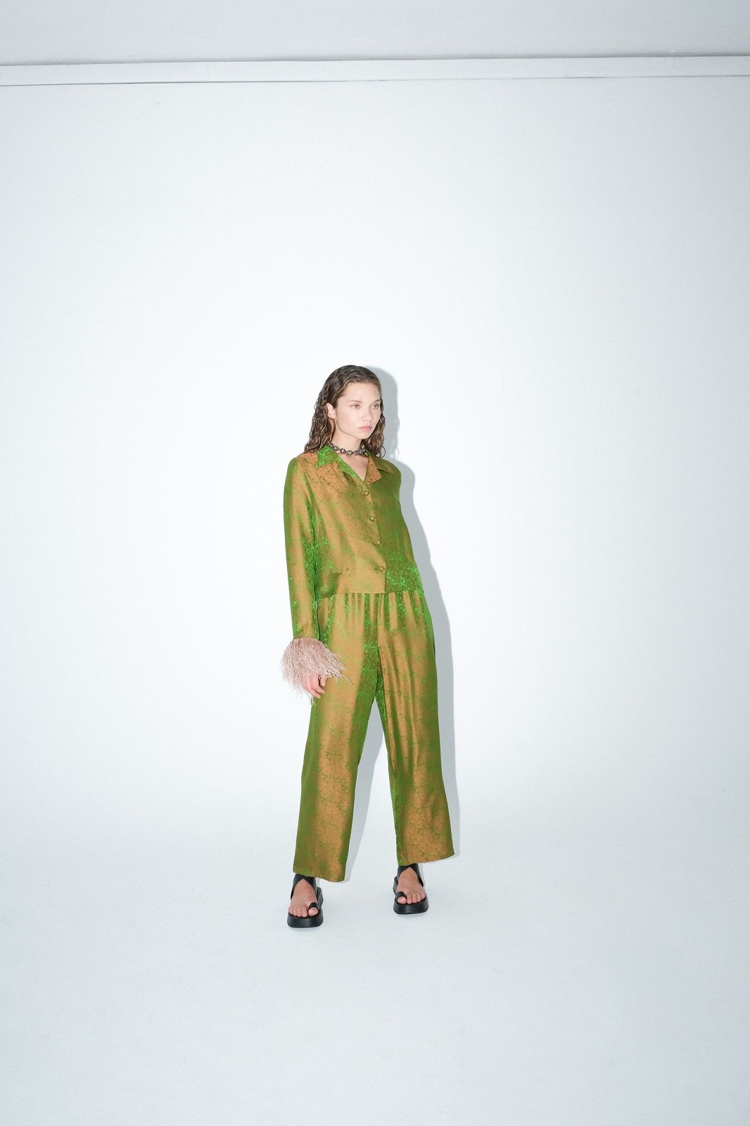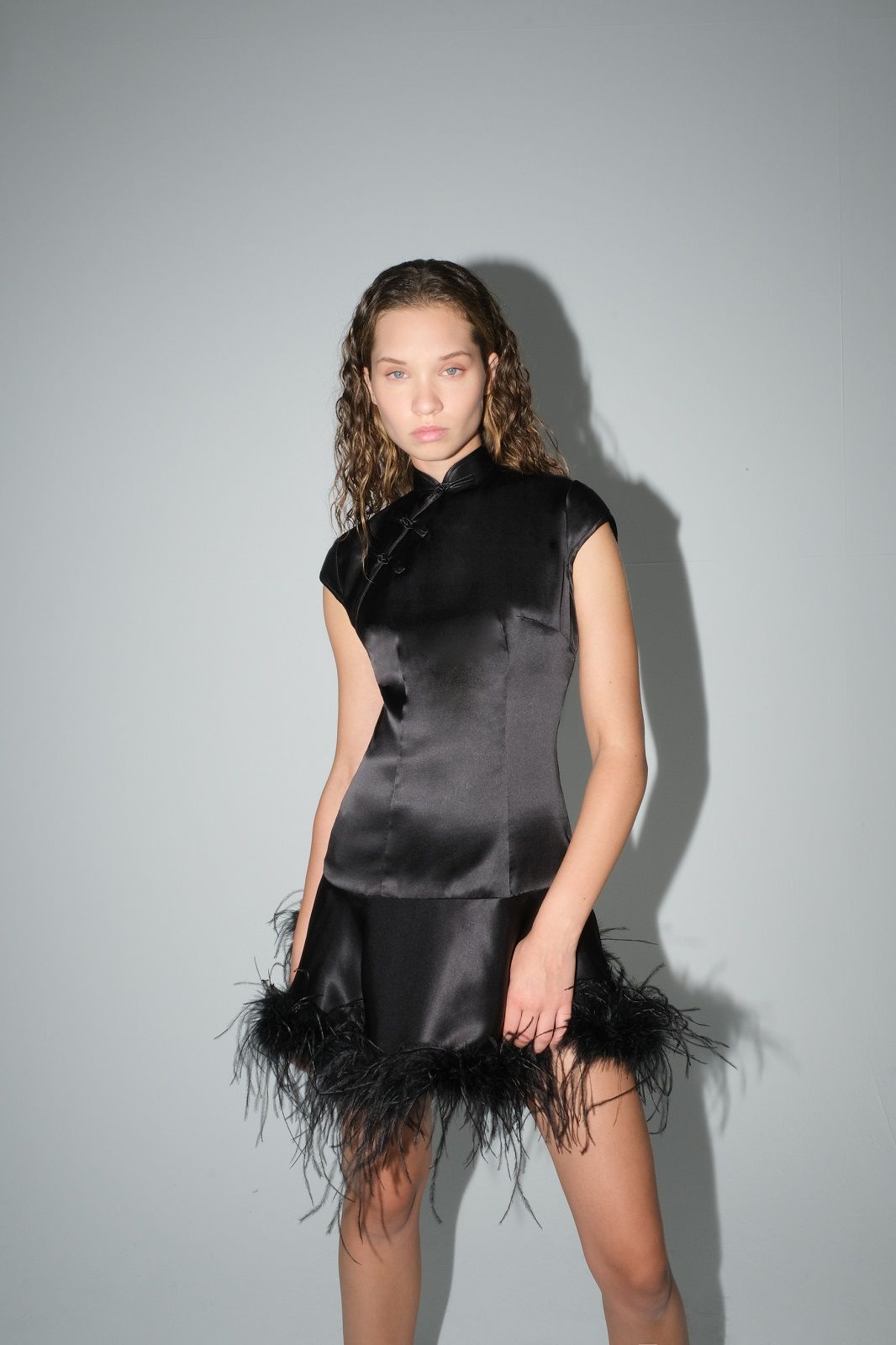 Lisa Von Tang, a talent who mixes Chinese and German origins, chose Milan Fashion Week and, in particular, the exhibition spaces of the Rossana Orlandi Gallery to present her spring/summer 2023 collection. Here, among video installations and sculptures, the young designer's creations paint a picture that speaks of multiculturalism and refined sensuality. Her clothes have the colors of Henri Matisse's works and the understated glamour perfect for dressing a confident and cosmopolitan woman. Lilac, light blue, lime green and natural tones make eye-catching silk jacquard pajama suits; bandeau tops; shorts; silk shirts to be worn with pleated pants; sweetheart-neck bustiers; cotton pants embellished with cut-outs on the hips; shirts that cross over the body; slip dresses; wrap skirts; duster coats; sets with oriental inspirations; bias-cut wool knit minidresses; and fluid, minimalist dresses that revisit the traditional Chinese Qipao dress in a contemporary way and with a hint of mischief. What makes Lisa Von Tang's garments even more intriguing are the details such as feathers, cut-outs, deep necklines and transparencies, but also the choice of fabrics characterized by a tactile component, from hemp to jacquard silk, from wool to cotton.