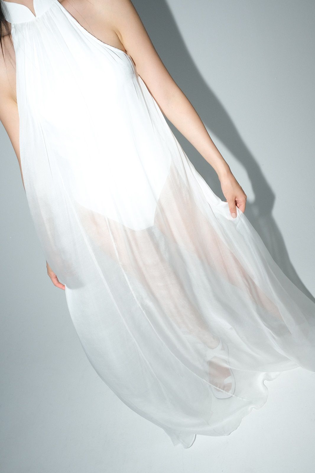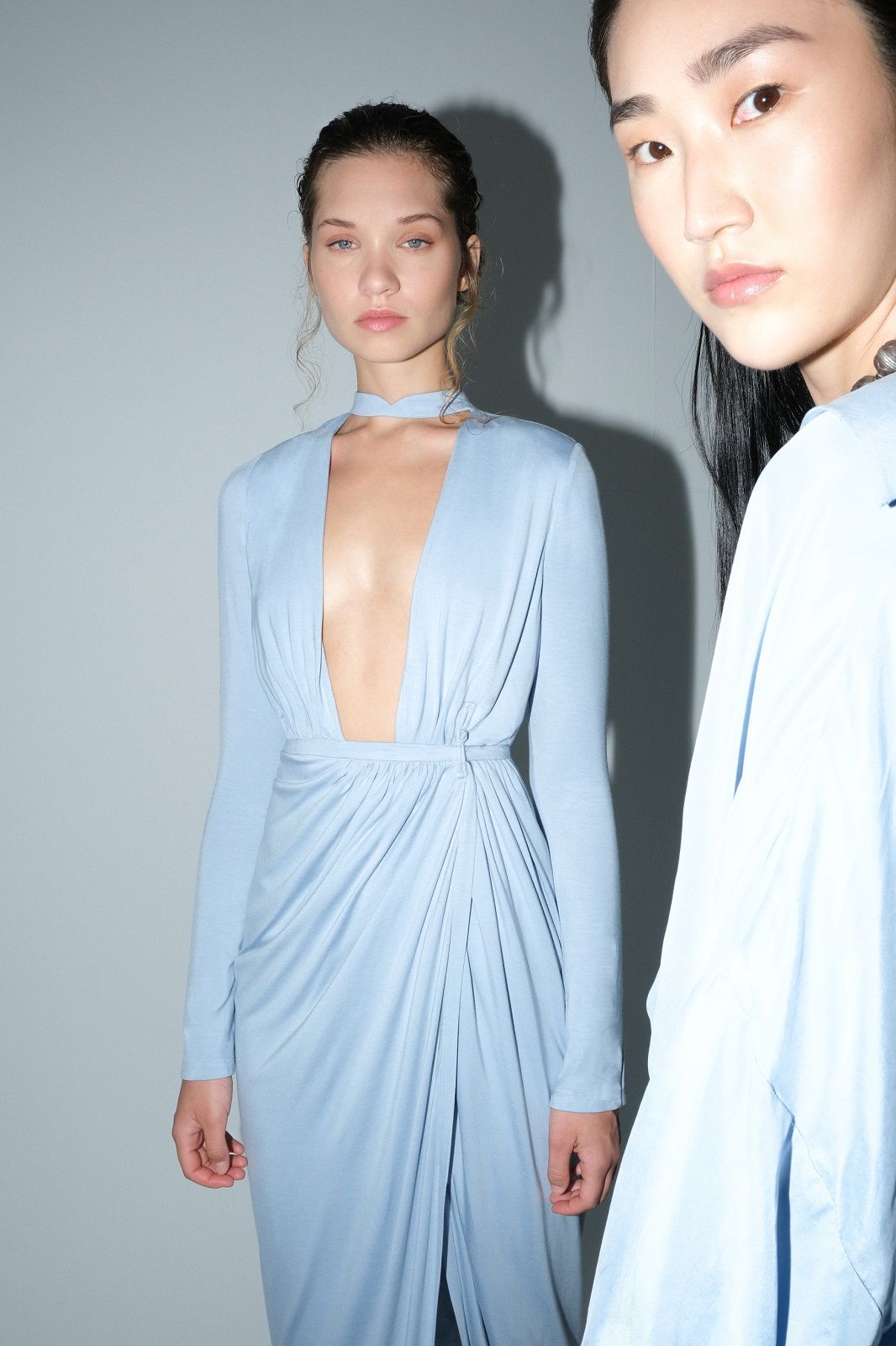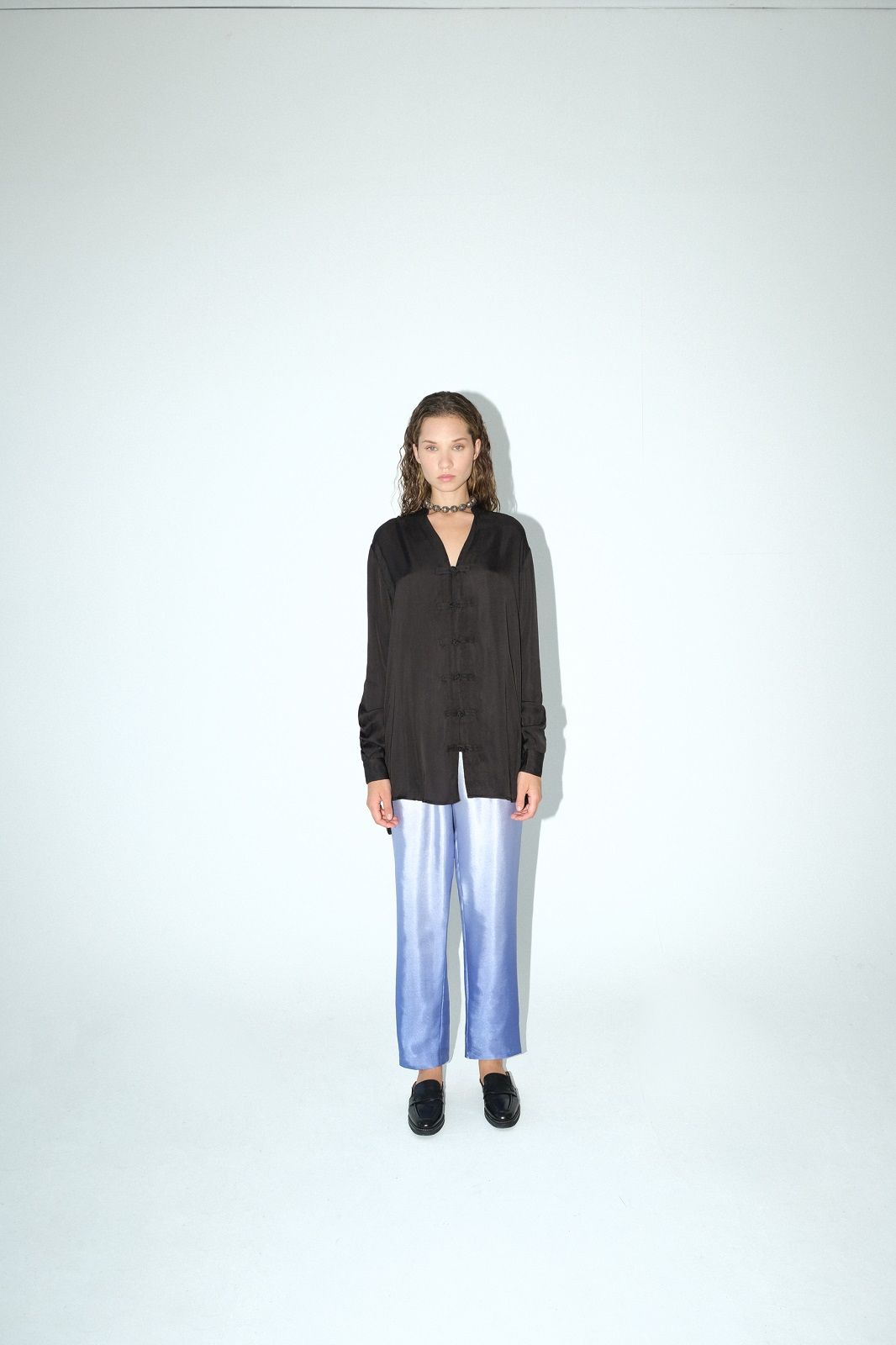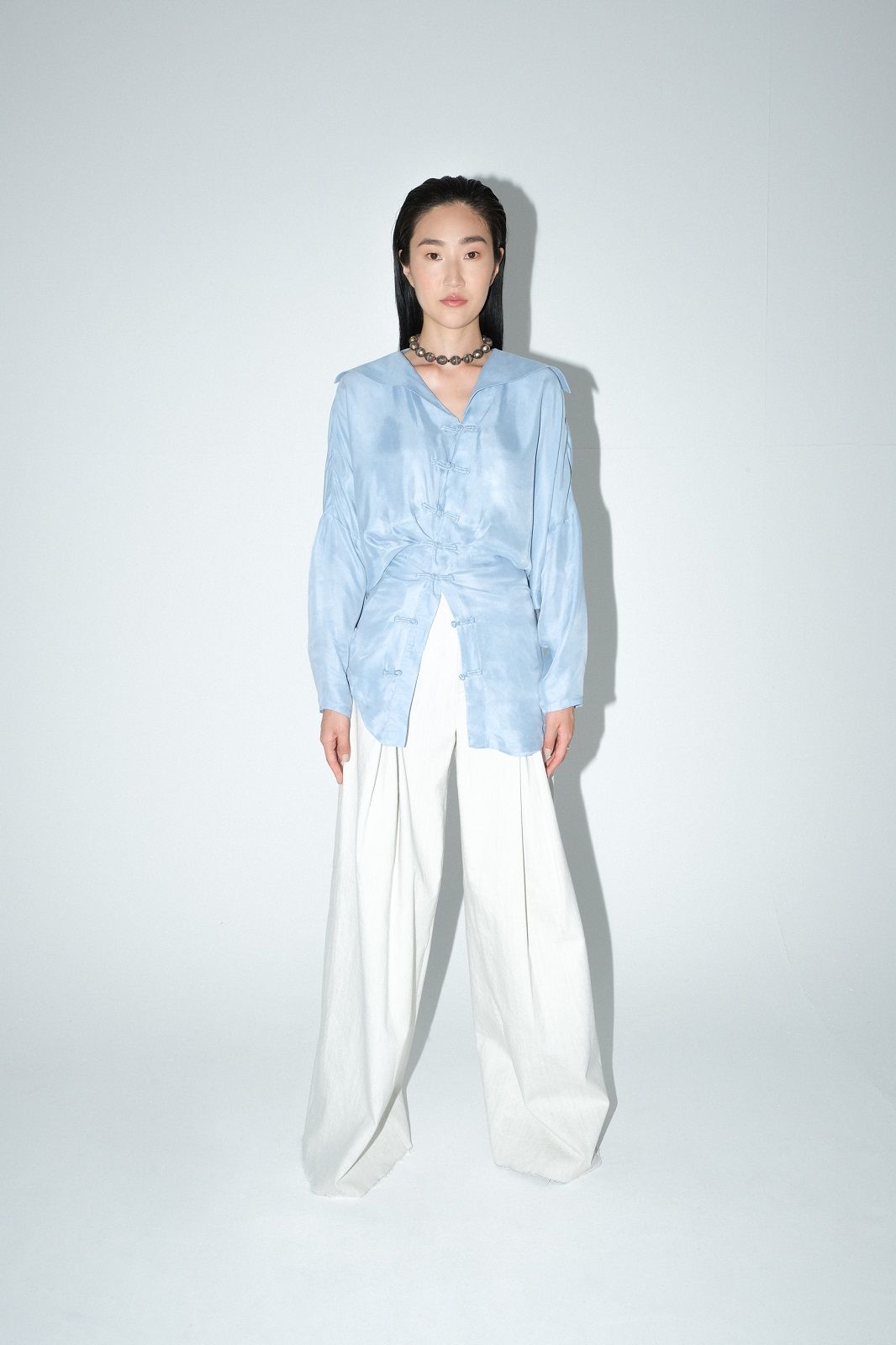 Lisa Von Tang, a talent who mixes Chinese and German origins, chose Milan Fashion Week and, in particular, the exhibition spaces of the Rossana Orlandi Gallery to present her spring/summer 2023 collection. Here, among video installations and sculptures, the young designer's creations paint a picture that speaks of multiculturalism and refined sensuality. Her clothes have the colors of Henri Matisse's works and the understated glamour perfect for dressing a confident and cosmopolitan woman. Lilac, light blue, lime green and natural tones make eye-catching silk jacquard pajama suits; bandeau tops; shorts; silk shirts to be worn with pleated pants; sweetheart-neck bustiers; cotton pants embellished with cut-outs on the hips; shirts that cross over the body; slip dresses; wrap skirts; duster coats; sets with oriental inspirations; bias-cut wool knit minidresses; and fluid, minimalist dresses that revisit the traditional Chinese Qipao dress in a contemporary way and with a hint of mischief. What makes Lisa Von Tang's garments even more intriguing are the details such as feathers, cut-outs, deep necklines and transparencies, but also the choice of fabrics characterized by a tactile component, from hemp to jacquard silk, from wool to cotton.