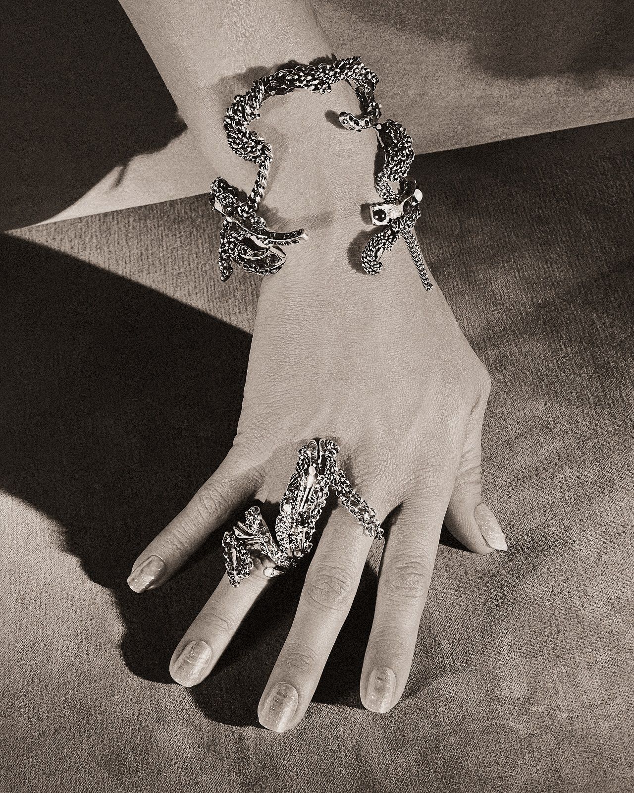 In Kooiker's shots Ms. Motomami is immortalized in a series of intimate, static and moving images that represent the perfect marriage between the star's bold style and the collage of different ideas and feelings in Jonny Johansson's new creations. For the designer, Rosalía is the perfect face of the brand because of her unique ability to transform herself through time, history, and culture while remaining extremely contemporary; while, for her part, the artist says she is excited about the collaboration, "When I pose for a photographer, I always try to be myself but also try to channel an energy. What appealed to me the most about working with Paul [Kooiker] was that he has an atemporal style, his pictures could have been taken when photography was invented. But, at the same time, he transmits a freshness of the moment. His pictures are badass."