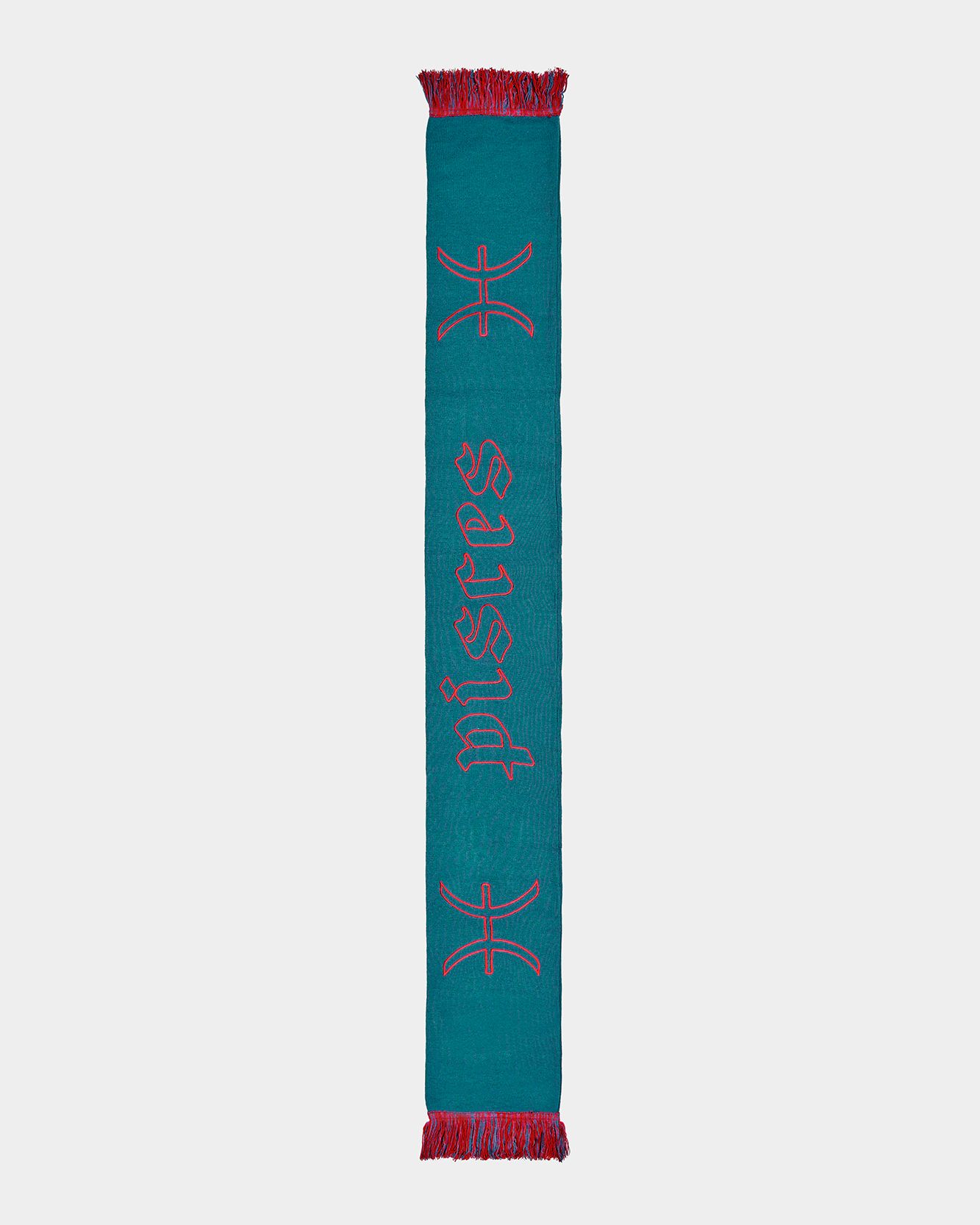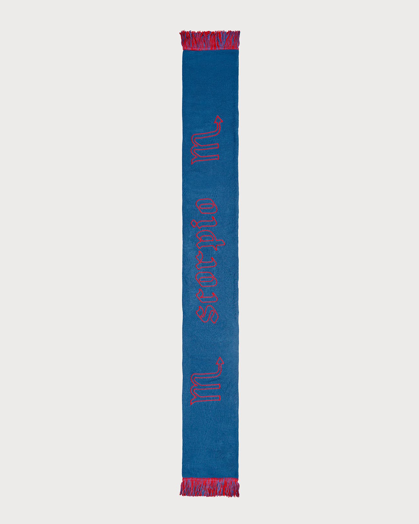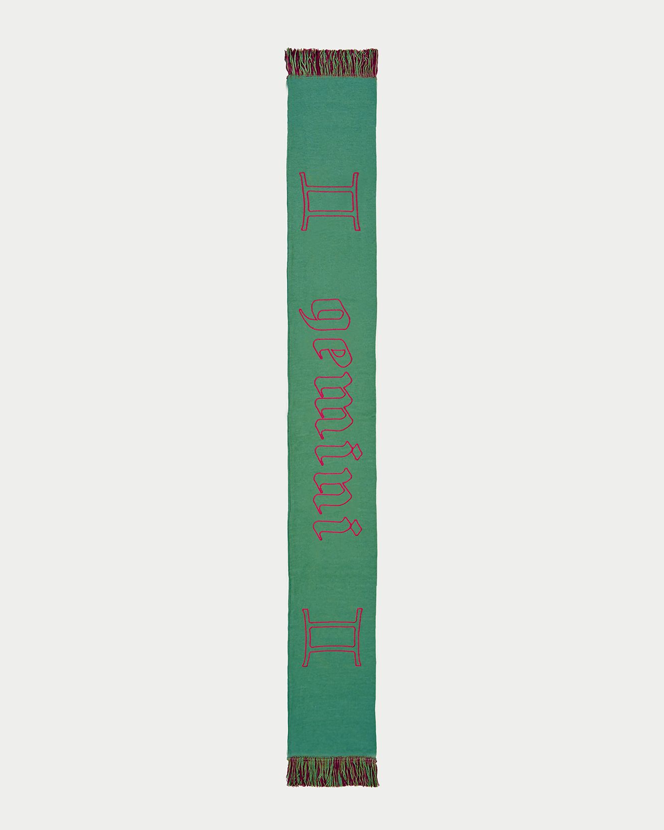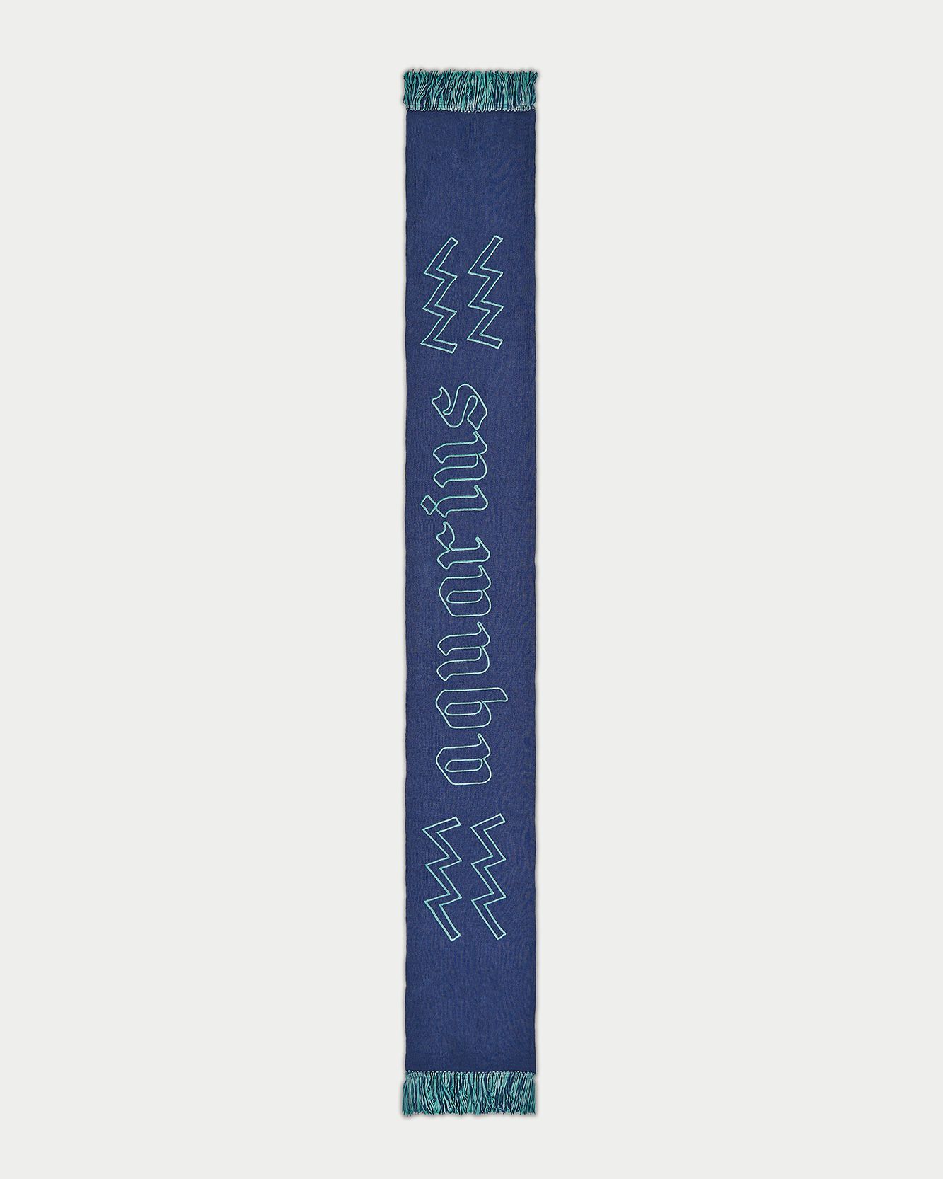 In 2022 now the first two questions asked of new acquaintances are: What is your name? and What sign are you? That's because the horoscope is an increasingly important part of understanding one's personality, a form of inner introspection that encompasses the facets of one's identity that coexist harmoniously and antithetically in the various placements of the birth chart. This is why we curated the drop of the Zodiac collection by Nasharpetta, a Roman brand born in pandemic with the goal of creating accessories that represent a sense of belonging. Nasharpetta x nss G-Club is a collaboration that follows the concept Wear Yourself and wants to create a way to communicate through a functional accessory one's zodiac sign, to answer the fateful question What sign are you? by showing one of 12 limited edition scarves. They are colorful and each color gradation is designed to best represent the sign it is paired with: various shades of green are paired with Air Signs scarves, red and purple with Fire Signs scarves, brown and orange color Earth Signs scarves, and Water Signs are represented by Blue, of course. The scarves feature the 12 signs of the zodiac embroidered in symbols and letters contrasting with the color of the fabric, following Goethe and Itten's color technique to generate visual curiosity, creating along with the lettering an eye-catching and collectible accessory design.