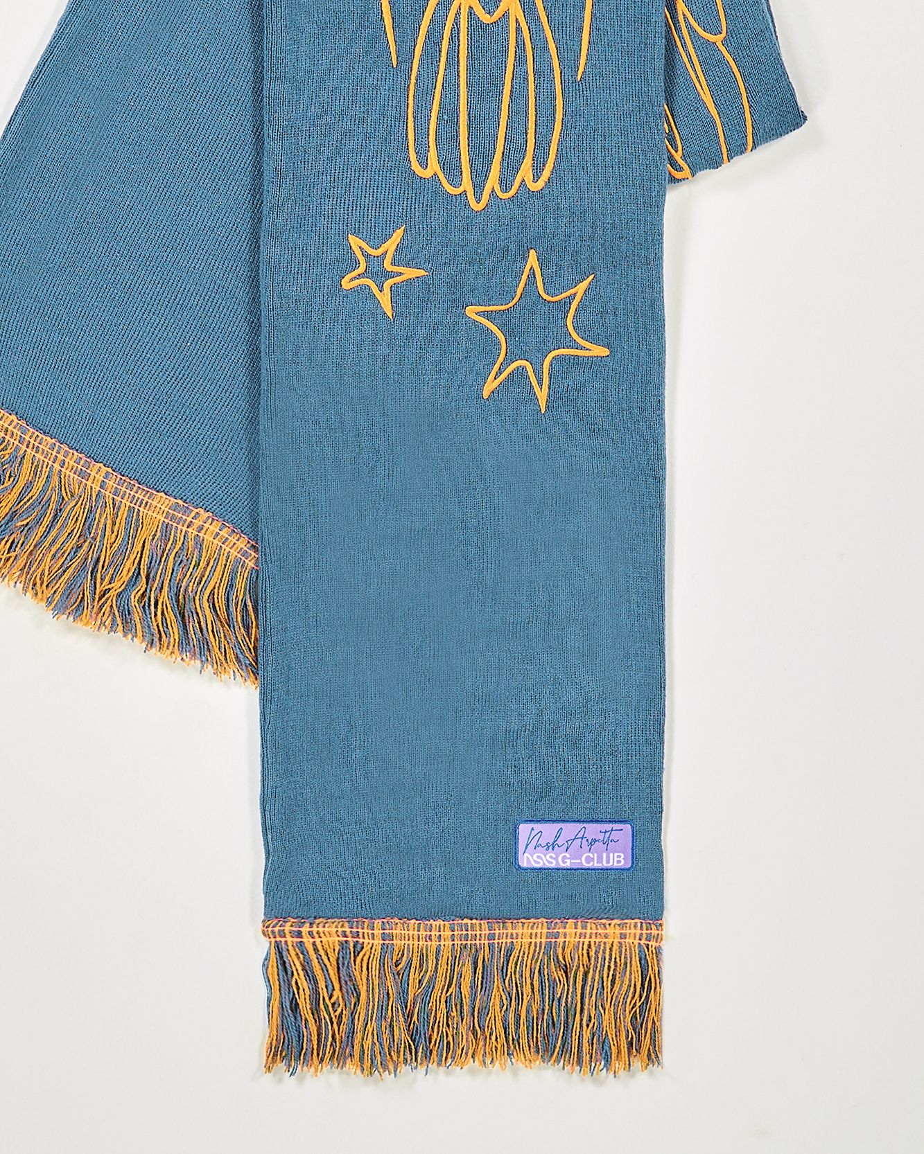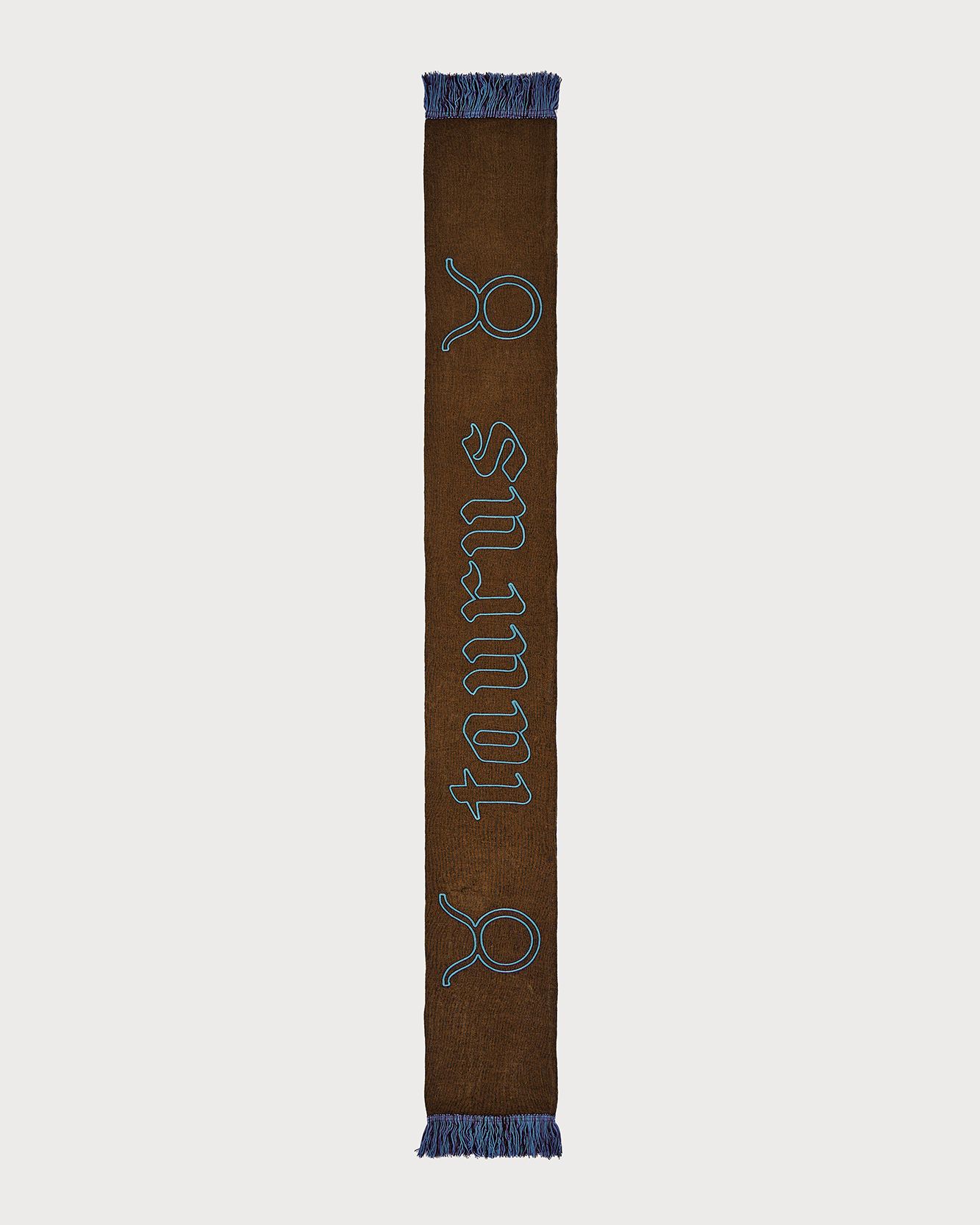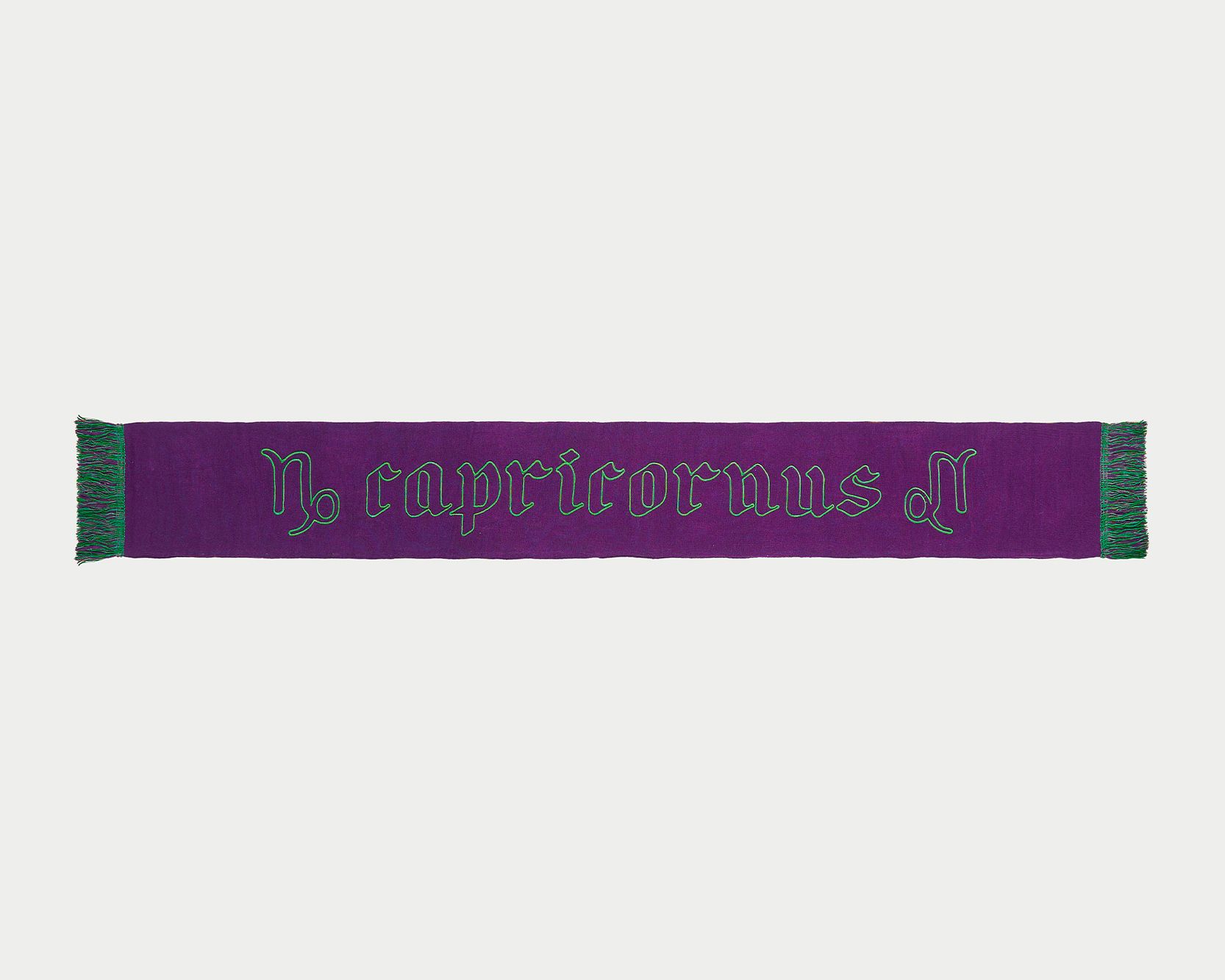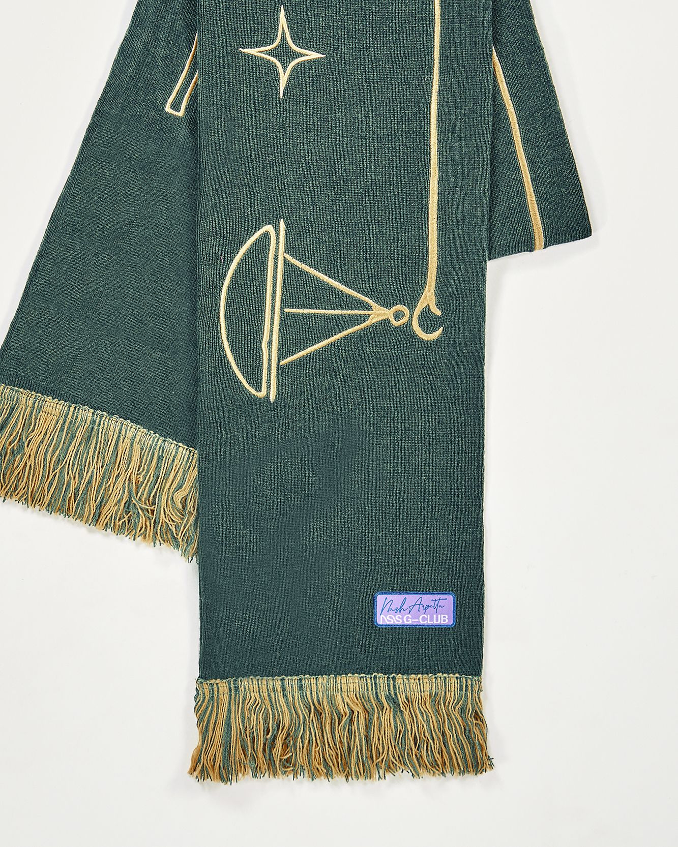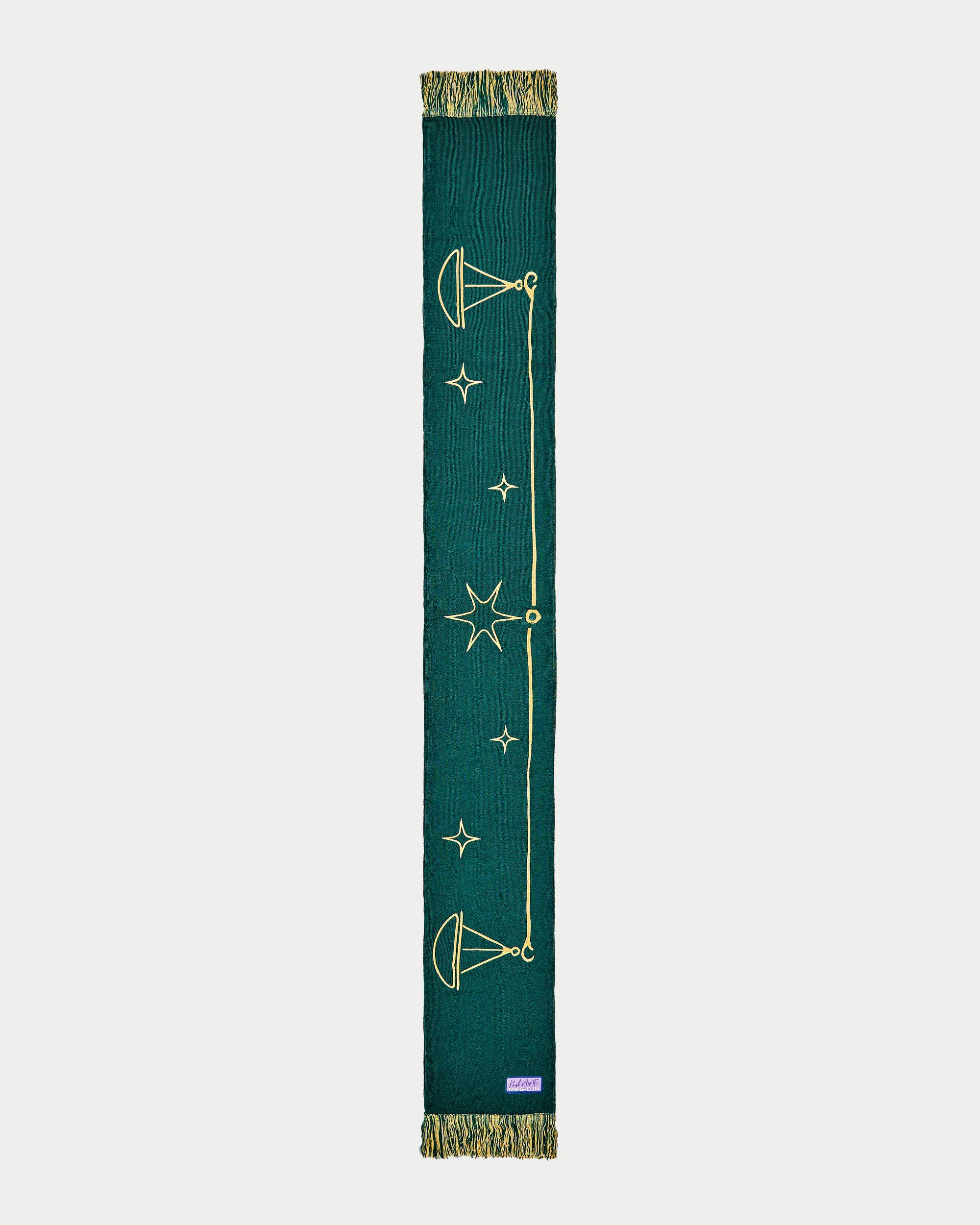 In 2022 now the first two questions asked of new acquaintances are: What is your name? and What sign are you? That's because the horoscope is an increasingly important part of understanding one's personality, a form of inner introspection that encompasses the facets of one's identity that coexist harmoniously and antithetically in the various placements of the birth chart. This is why we curated the drop of the Zodiac collection by Nasharpetta, a Roman brand born in pandemic with the goal of creating accessories that represent a sense of belonging. Nasharpetta x nss G-Club is a collaboration that follows the concept Wear Yourself and wants to create a way to communicate through a functional accessory one's zodiac sign, to answer the fateful question What sign are you? by showing one of 12 limited edition scarves. They are colorful and each color gradation is designed to best represent the sign it is paired with: various shades of green are paired with Air Signs scarves, red and purple with Fire Signs scarves, brown and orange color Earth Signs scarves, and Water Signs are represented by Blue, of course. The scarves feature the 12 signs of the zodiac embroidered in symbols and letters contrasting with the color of the fabric, following Goethe and Itten's color technique to generate visual curiosity, creating along with the lettering an eye-catching and collectible accessory design.