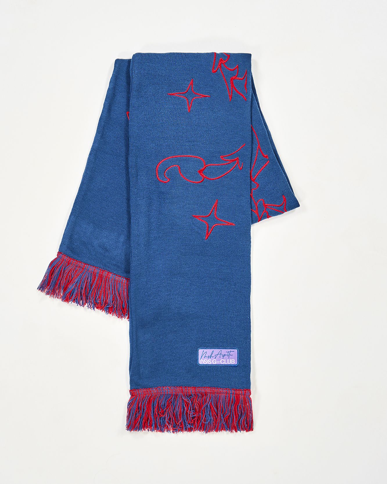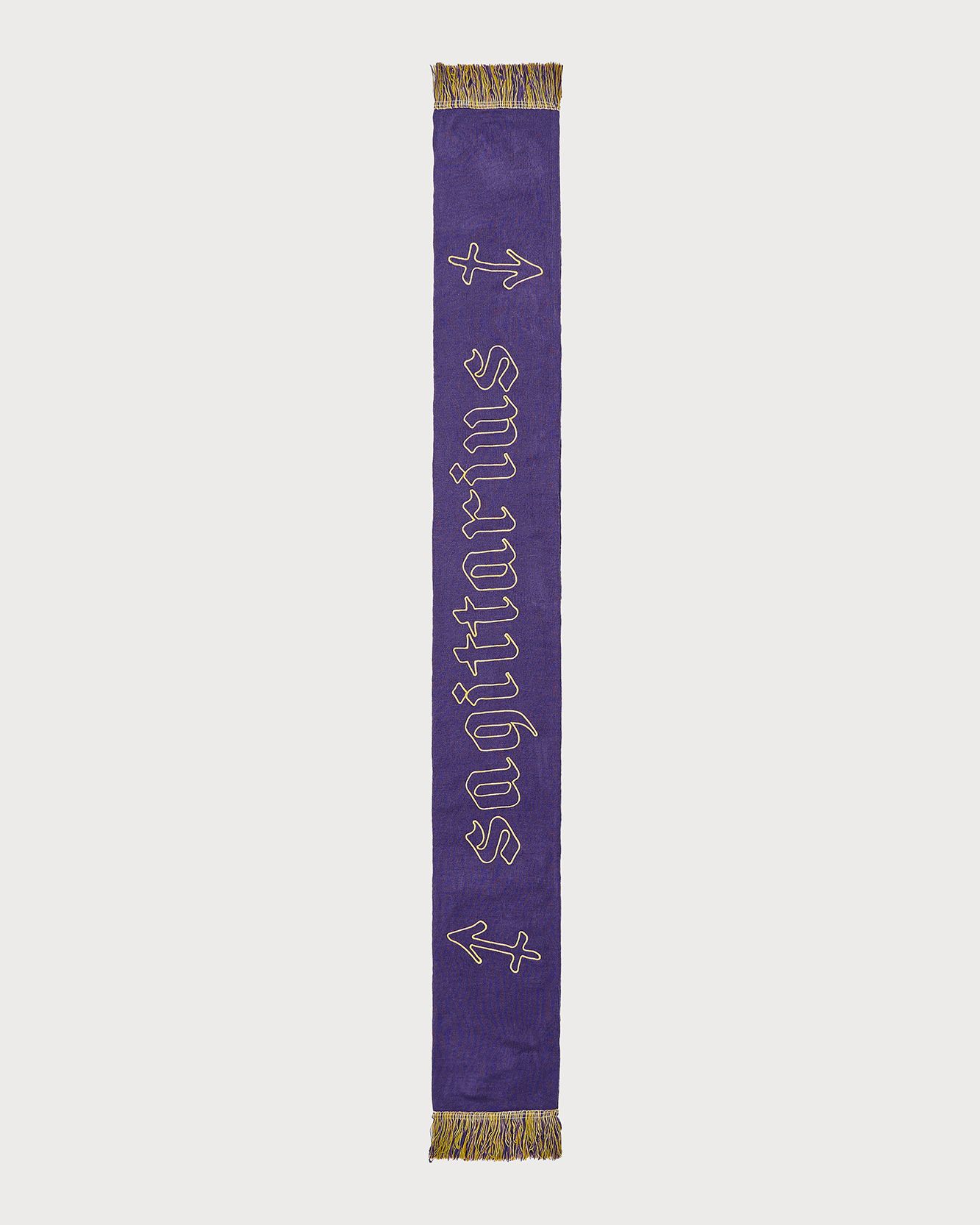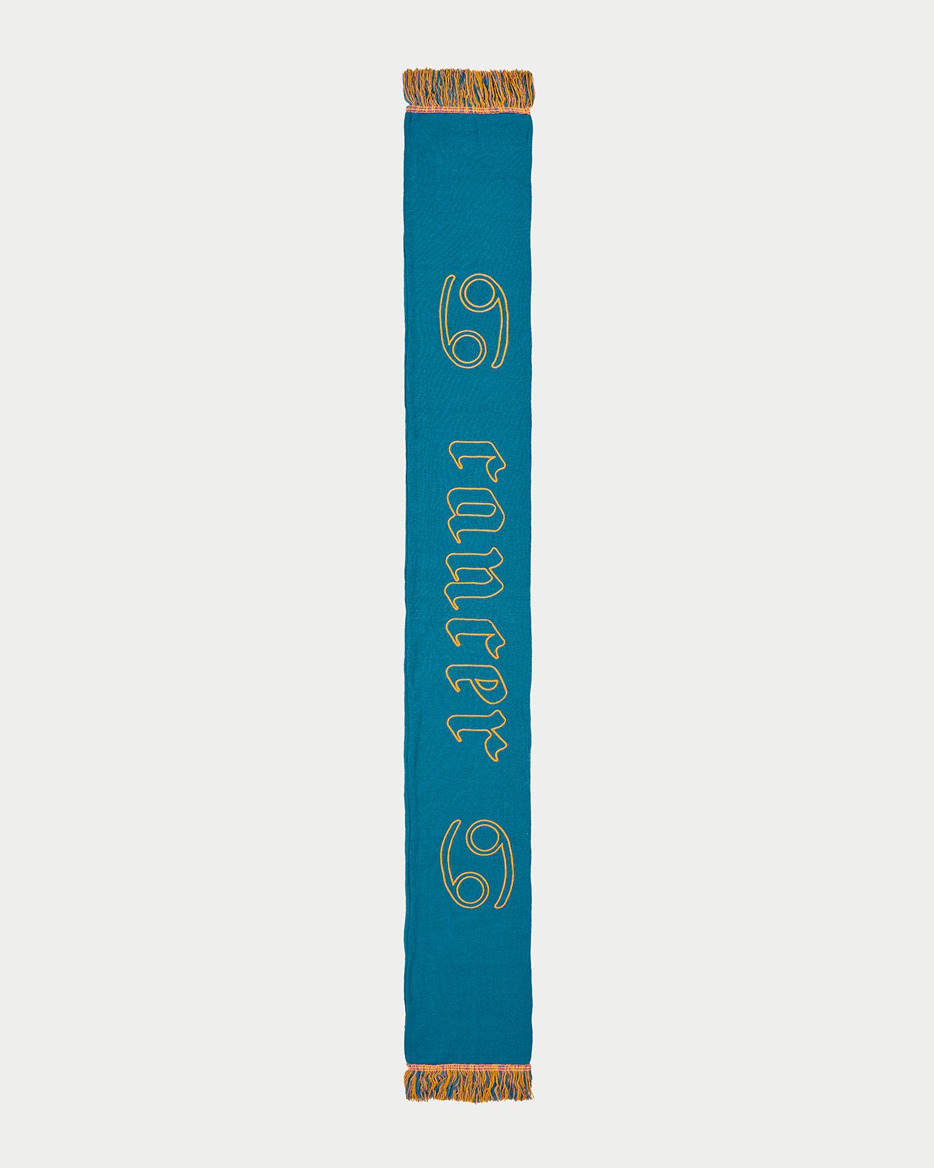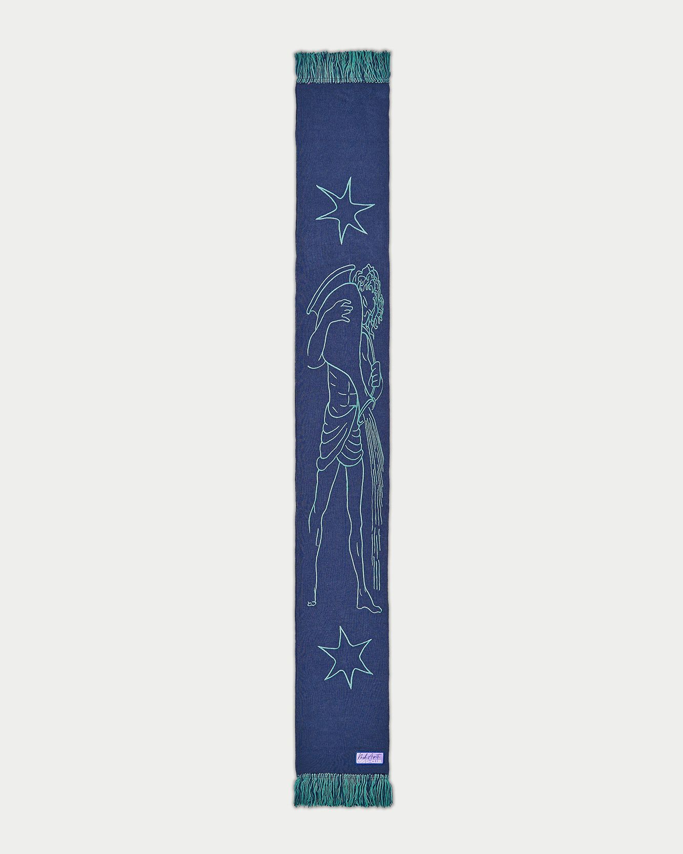 In 2022 now the first two questions asked of new acquaintances are: What is your name? and What sign are you? That's because the horoscope is an increasingly important part of understanding one's personality, a form of inner introspection that encompasses the facets of one's identity that coexist harmoniously and antithetically in the various placements of the birth chart. This is why we curated the drop of the Zodiac collection by Nasharpetta, a Roman brand born in pandemic with the goal of creating accessories that represent a sense of belonging. Nasharpetta x nss G-Club is a collaboration that follows the concept Wear Yourself and wants to create a way to communicate through a functional accessory one's zodiac sign, to answer the fateful question What sign are you? by showing one of 12 limited edition scarves. They are colorful and each color gradation is designed to best represent the sign it is paired with: various shades of green are paired with Air Signs scarves, red and purple with Fire Signs scarves, brown and orange color Earth Signs scarves, and Water Signs are represented by Blue, of course. The scarves feature the 12 signs of the zodiac embroidered in symbols and letters contrasting with the color of the fabric, following Goethe and Itten's color technique to generate visual curiosity, creating along with the lettering an eye-catching and collectible accessory design.