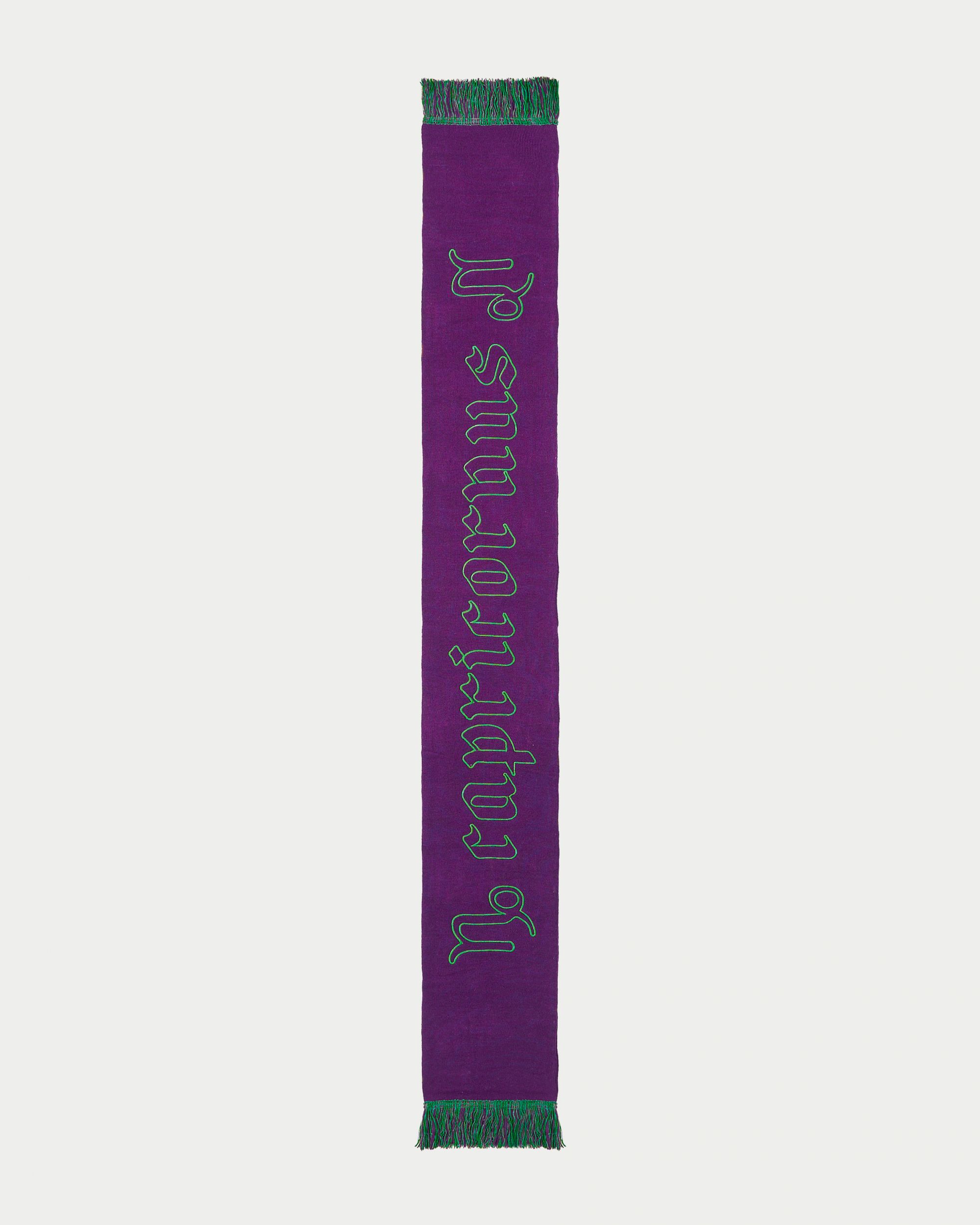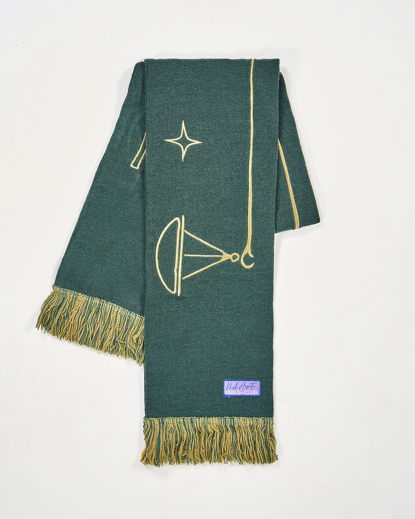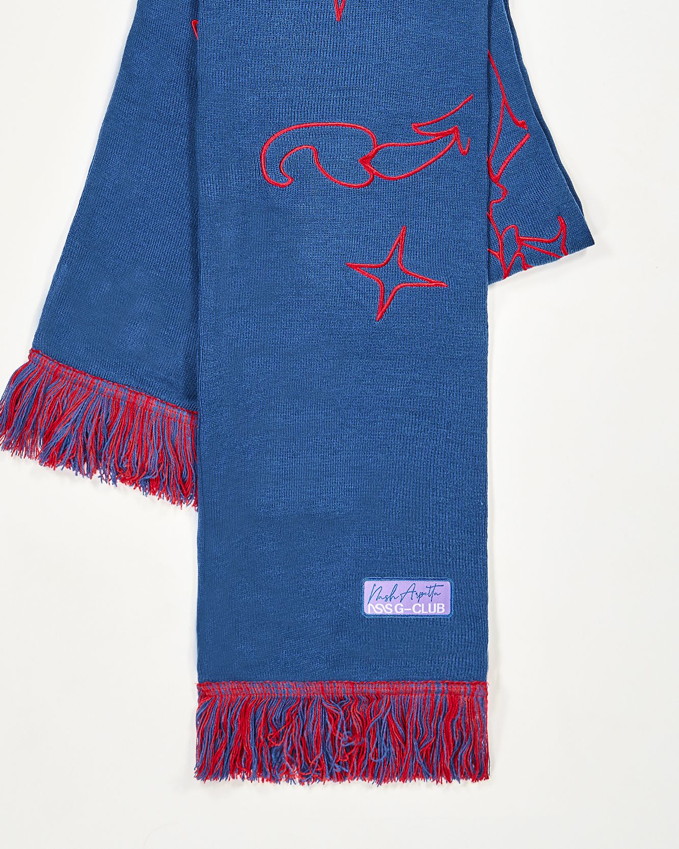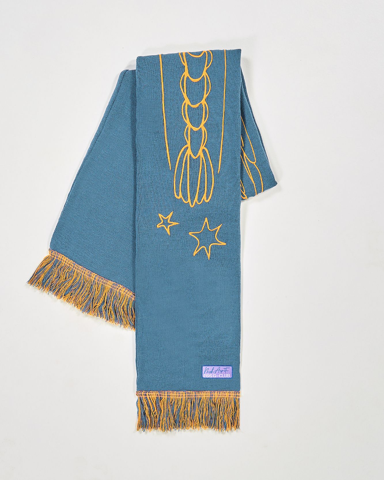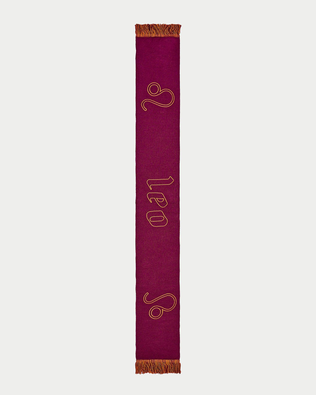 In 2022 now the first two questions asked of new acquaintances are: What is your name? and What sign are you? That's because the horoscope is an increasingly important part of understanding one's personality, a form of inner introspection that encompasses the facets of one's identity that coexist harmoniously and antithetically in the various placements of the birth chart. This is why we curated the drop of the Zodiac collection by Nasharpetta, a Roman brand born in pandemic with the goal of creating accessories that represent a sense of belonging. Nasharpetta x nss G-Club is a collaboration that follows the concept Wear Yourself and wants to create a way to communicate through a functional accessory one's zodiac sign, to answer the fateful question What sign are you? by showing one of 12 limited edition scarves. They are colorful and each color gradation is designed to best represent the sign it is paired with: various shades of green are paired with Air Signs scarves, red and purple with Fire Signs scarves, brown and orange color Earth Signs scarves, and Water Signs are represented by Blue, of course. The scarves feature the 12 signs of the zodiac embroidered in symbols and letters contrasting with the color of the fabric, following Goethe and Itten's color technique to generate visual curiosity, creating along with the lettering an eye-catching and collectible accessory design.