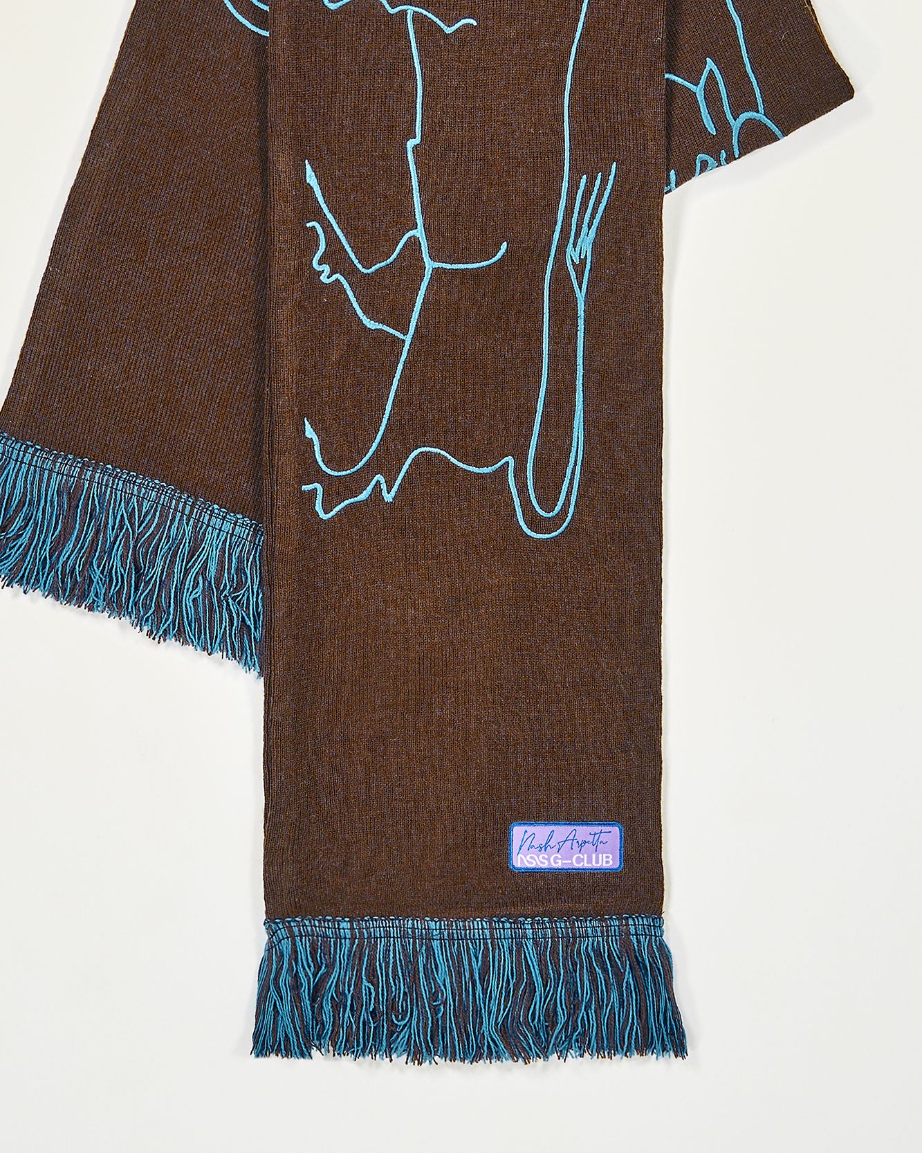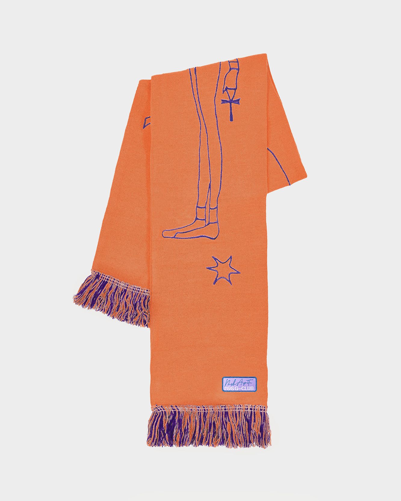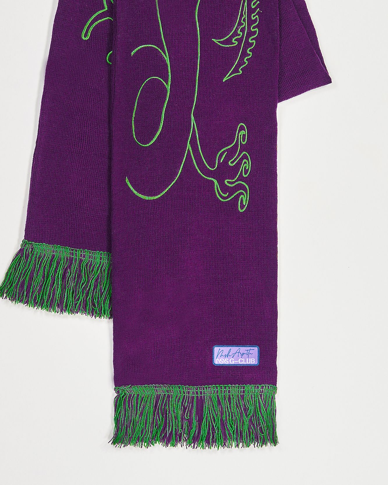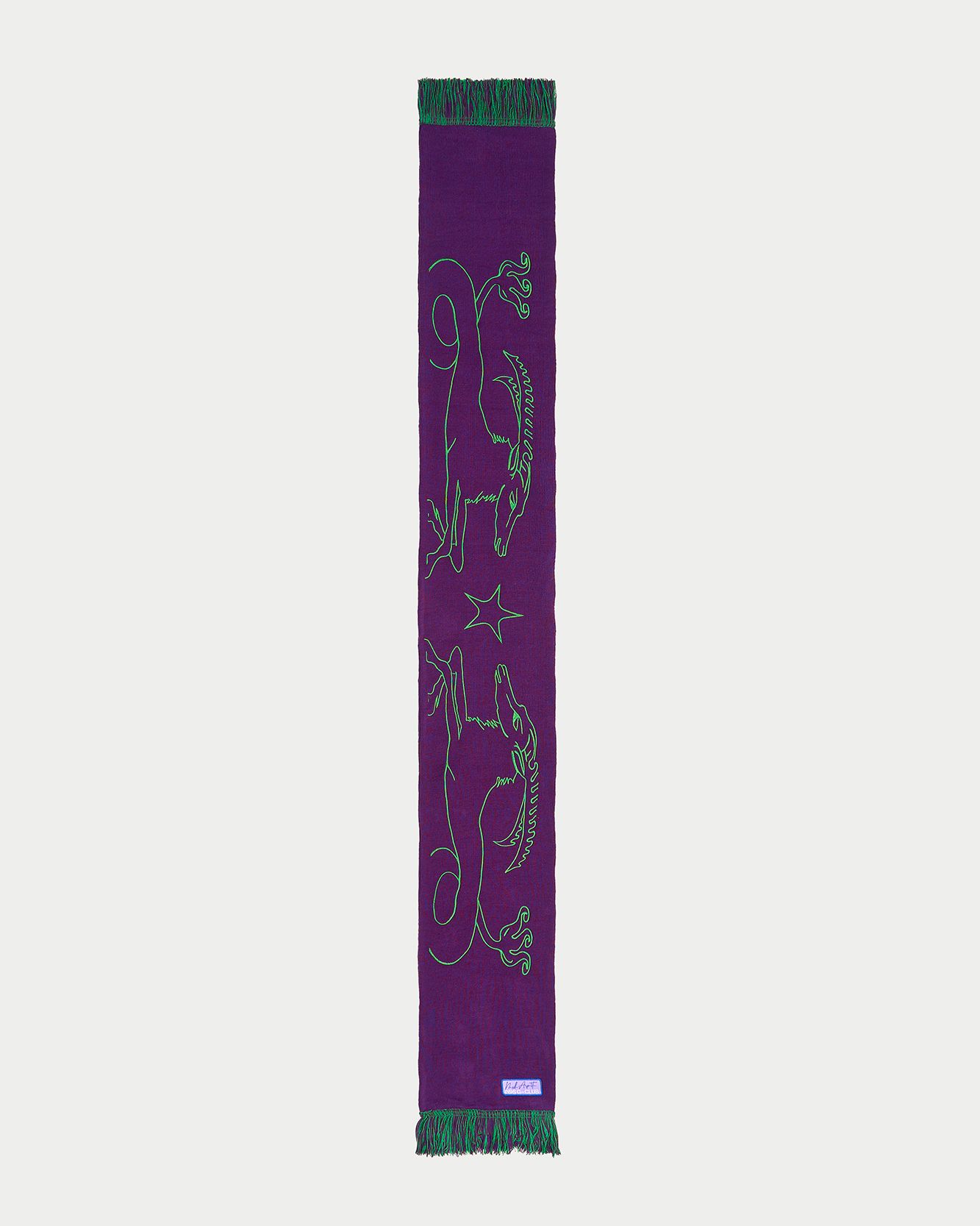 In 2022 now the first two questions asked of new acquaintances are: What is your name? and What sign are you? That's because the horoscope is an increasingly important part of understanding one's personality, a form of inner introspection that encompasses the facets of one's identity that coexist harmoniously and antithetically in the various placements of the birth chart. This is why we curated the drop of the Zodiac collection by Nasharpetta, a Roman brand born in pandemic with the goal of creating accessories that represent a sense of belonging. Nasharpetta x nss G-Club is a collaboration that follows the concept Wear Yourself and wants to create a way to communicate through a functional accessory one's zodiac sign, to answer the fateful question What sign are you? by showing one of 12 limited edition scarves. They are colorful and each color gradation is designed to best represent the sign it is paired with: various shades of green are paired with Air Signs scarves, red and purple with Fire Signs scarves, brown and orange color Earth Signs scarves, and Water Signs are represented by Blue, of course. The scarves feature the 12 signs of the zodiac embroidered in symbols and letters contrasting with the color of the fabric, following Goethe and Itten's color technique to generate visual curiosity, creating along with the lettering an eye-catching and collectible accessory design.