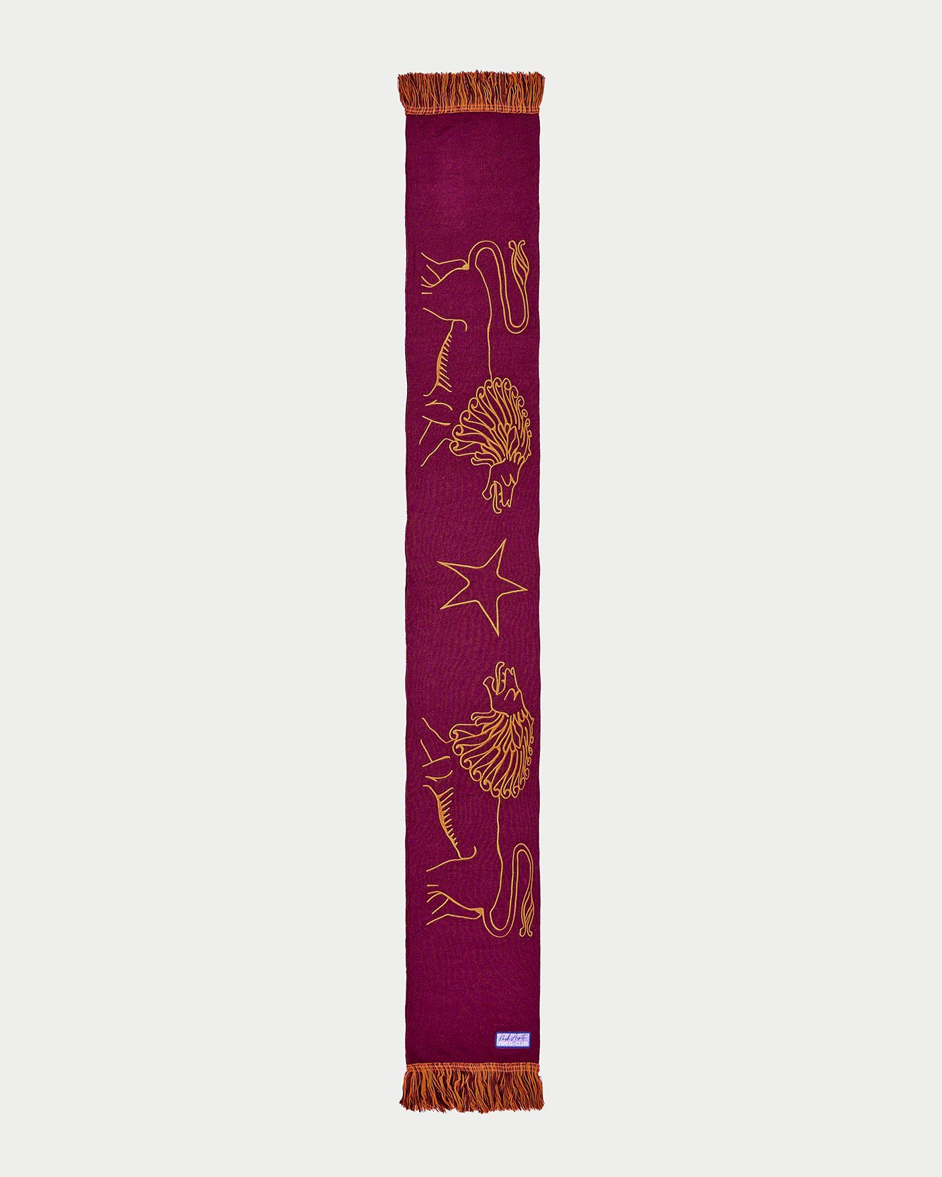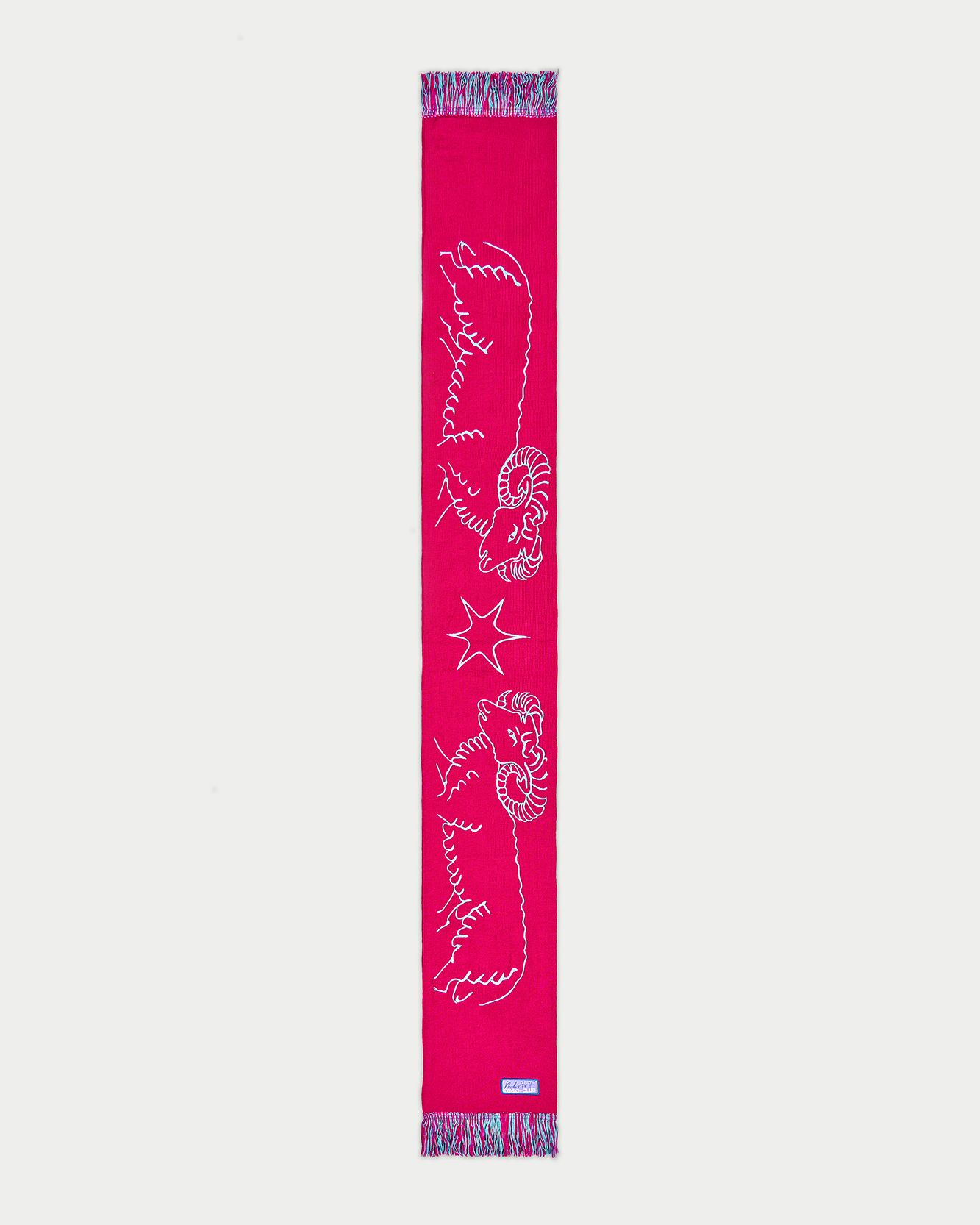 A fun styling trick for wearing them is to play with overlapping three scarves together, choosing one's Big Three, i.e., the three zodiac signs to know in order to get a comprehensive picture of the different facets of personality, which are Solar Sign, Ascendant and Moon, to provide with the outfit a business card that immediately communicates who we are. Another way to play with the scarf concept could be to wear only the sign of one's birth chart, choosing the one by which one feels most represented, such as Venus, if one wants to communicate one's dominant aspect in Love, or Saturn, a planet that is known to return with time what has been sown, to make things clear right away. Speaking of the time it gives back, Nasharpetta, a project born during the pandemic gained popularity after the dedicated drop of stadium-style scarves to high schools in Rome, is also reaping the rewards of its work. When at the height of the lockdown it launched its project dedicated to Rome's high schools, it allowed kids to reclaim the sense of belonging associated with school attendance and the core of friendships created there, to make them feel less alone and give them a way to represent their identity. With the limited-edition Zodiac Collection, the team decided to identify another element that could make one or more communities feel represented, nurturing the sense of belonging that even unconsciously is found in the zodiac sign classification.