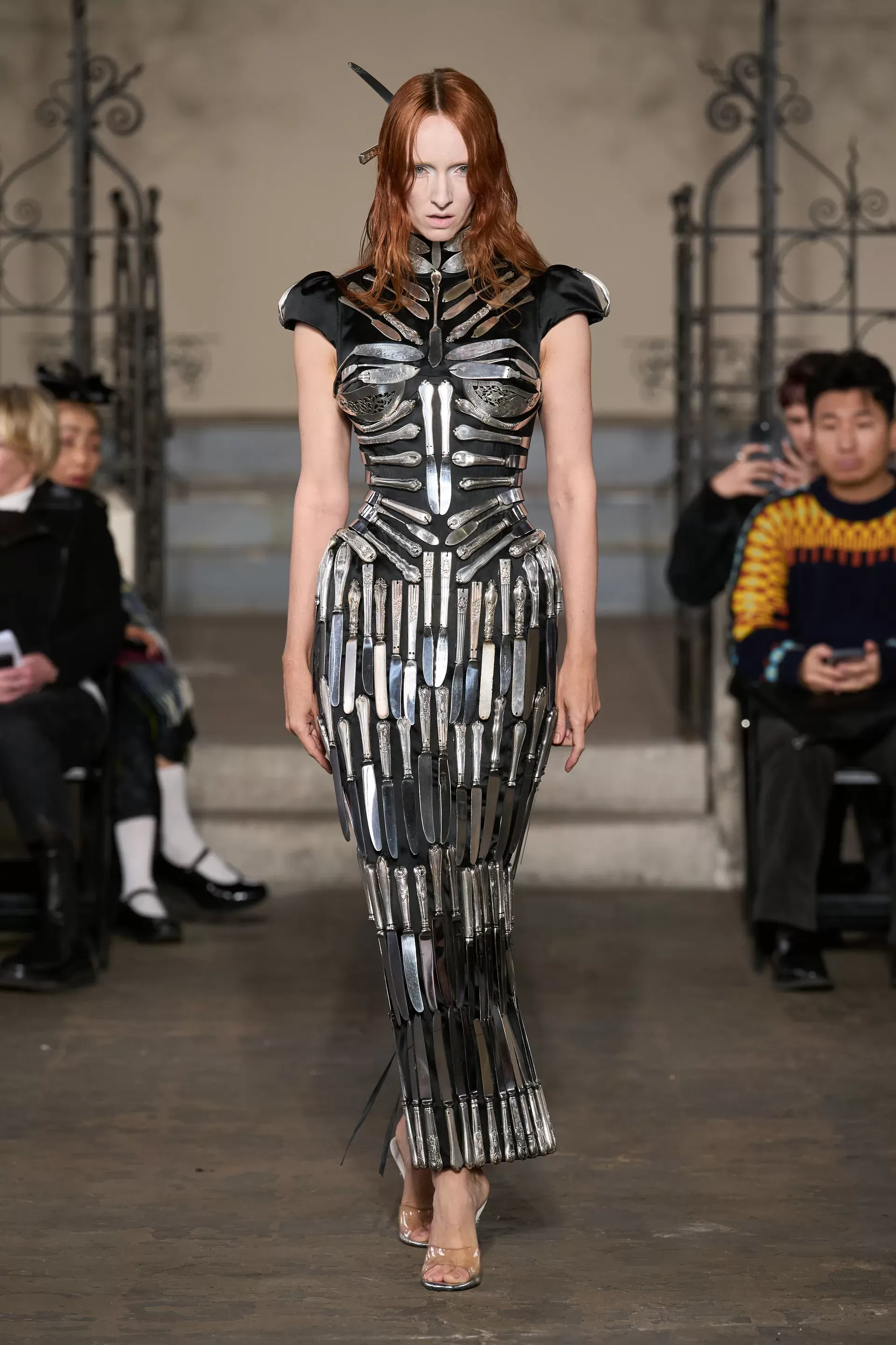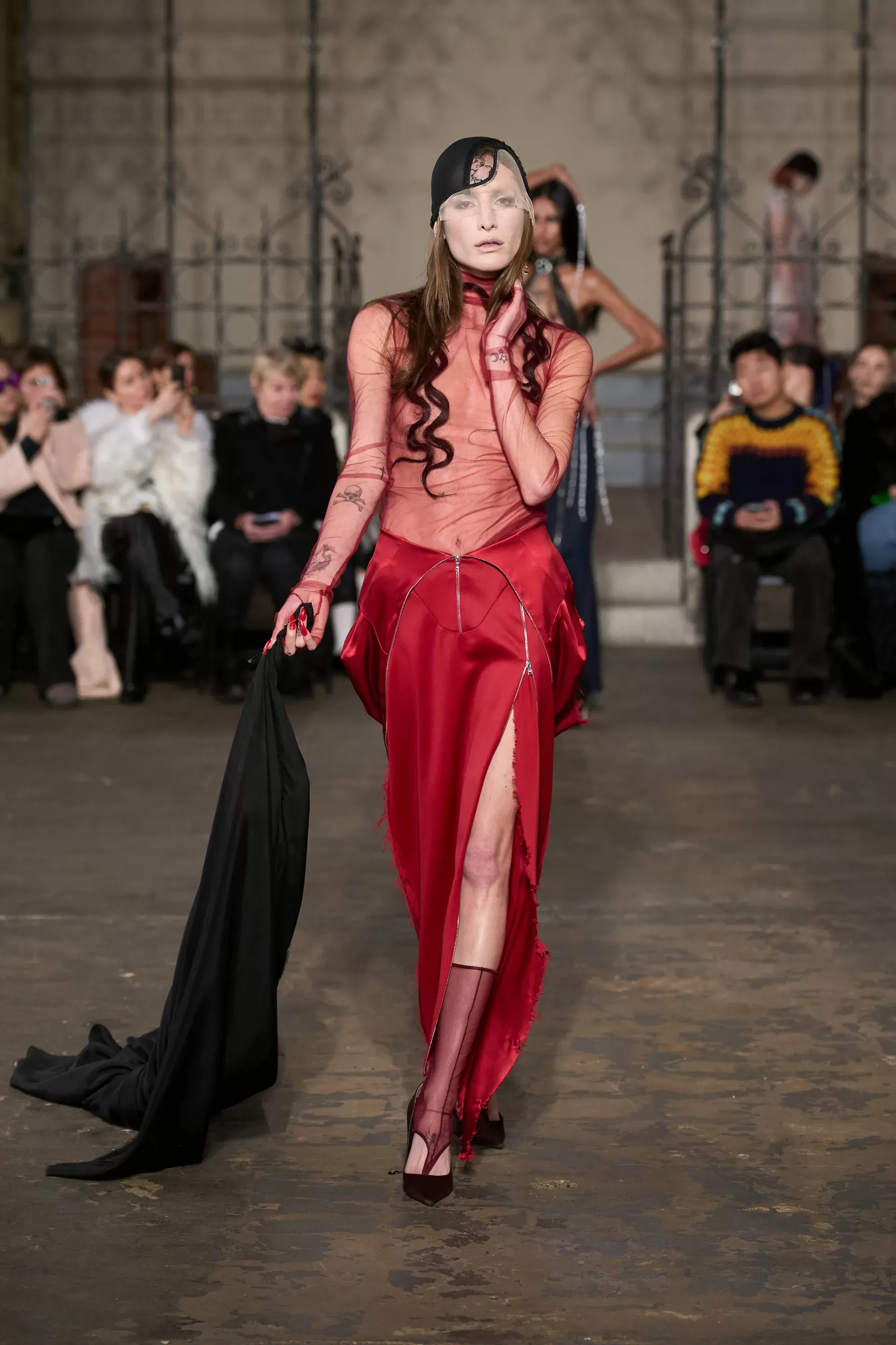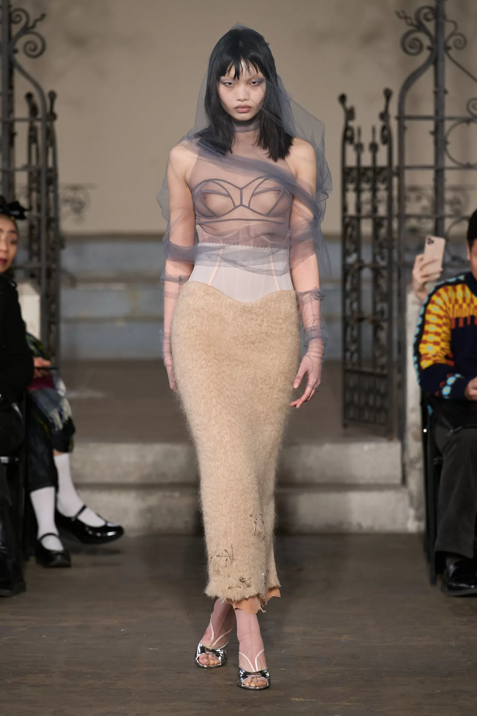 Born in Istanbul, Findikoglu studied fashion at London's Central Saint Martins, where she graduated with honours in 2015. However, she was not selected to show her work at the fashion school's end-of-year presentation, to which only a select few were admitted. Nevertheless, she showed her creations, perhaps in an even more scenic way, by staging a guerrilla street show with other students who, like her, had been excluded from the event. This spirit of anarchy deeply informed her fashion shows: the first collection took place in a strip club, the second in a church, in what American conservative radio host Alex Jones, in his outrage, called a 'Satanic orgy'. His eponymous label was launched in 2016 and immediately caught the attention of fashionistas around the world. He soon moved from London Fashion Week to the more famous Paris Fashion Week, winning numerous prestigious awards including the 2017 Fashion Scout Merit Award and selection for the LVMH Prize in the same year. His work has been exhibited in museums and galleries, including the Tate Modern and the Victoria and Albert Museum, and has gained a cult following among underground kids and enterprising celebrities. Lady Gaga called Findikoglu "the designer of the future" and Kanye West commissioned a dress from her for Kim in the early years. Last year, Bella Hadid stunned everyone with her Mata Hari look at the aspiring designer's Met after-party, which consisted of hold-ups, transparencies, a hand-woven Turkish moiré corset and lush beading; Paloma Elsesser wore an equally dramatic pearl grey corset embellished with colourful maxi beads, ruffles and black fishnet gloves and finally, even TikTok star Addison Rae succumbed to the exotic allure of Findikoglu's gowns. It was the baptism of fire, the entry into the Olympus of the mainstream.