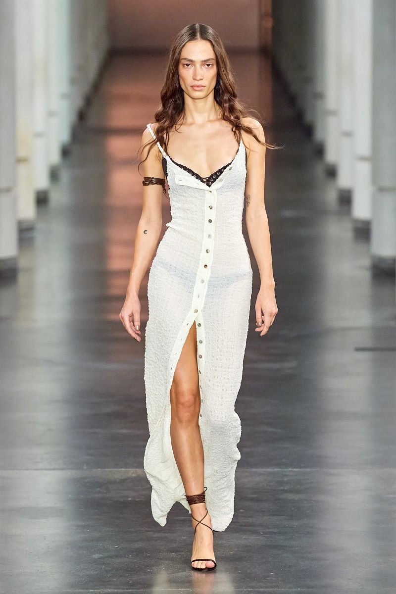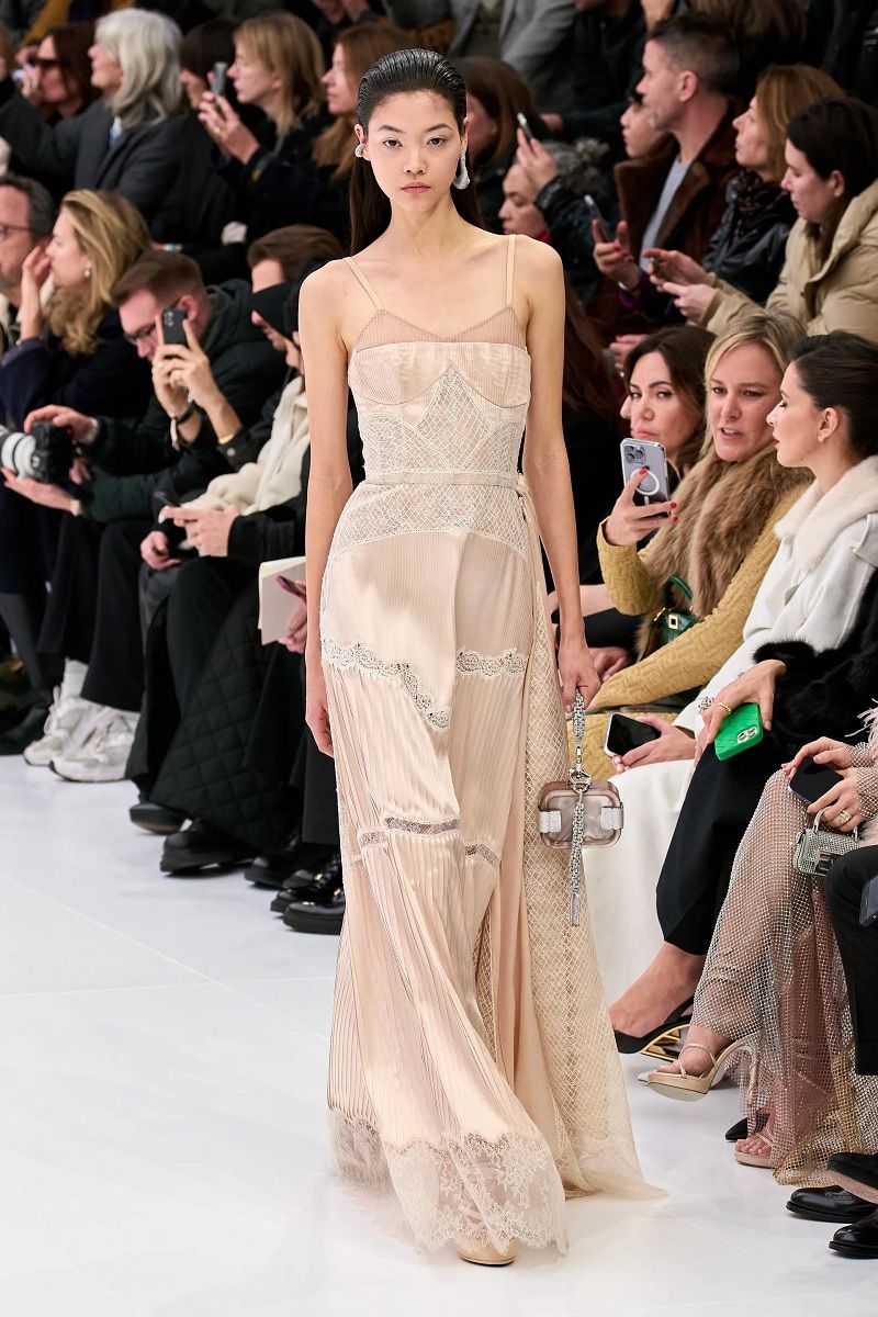 From Alexander McQueen's "bumster" jeans to the "whale tail" thongs that protrude from the trousers, as in Gucci by Tom Ford's SS97, Jean Paul Gaultier's conical bras in the 1990s and Kendall Jenner, who roamed the streets of Los Angeles in Bottega Veneta's no pants version, underwear worn as outerwear, mischievously revealing a glimpse of the body's curves and bare skin, is a trend that cyclically comes back into fashion. The peekaboo bra is also not a styling invention of the Cannes 2023 divas; Chanel recently proposed it for Resort 2024; Kim Jones for Fendi's SS23 haute couture (worn by Song Hye Kyo at the Met Gala and Zoe Saldana at the Oscars); while in previous seasons the peekaboo bra has been proposed by Bottega Veneta, Ludovic de Saint Sernin, Givenchy and Versace. The Medusa brand often brought it to the catwalk, as did Dolce & Gabbana, but the real heyday of the bra peeking mischievously out of dresses was the 1990s. In the decade of minimalism and grunge, it was a must-have in the collections of Blumarine, Narciso Rodriguez, Betsey Johnson, Isaac Mizrahi and many others.