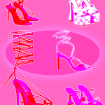 Spool heeled sandal with crystal straps and cardinal purple fabric from Amina Muaddi; the interplay of fabrics and all-black laces by Andrea Wazen; slim heel, black leather and micro logo by Coperni; baby blue patent leather and pointed toe by Gia Borghini; platform with metal logos and studs, ankle strap and soft pink by Gucci; precious crystal-studded heel, black ankle strap and satin trim by Miu Miu; architecturally complex and pastel heel by N°21; brown satin, chains and leather straps by Yves Saint Laurent; black and red encounters, ultra-thin heel and elastic fabric by Salvatore Ferragamo; turquoise satin, red heel and subtle laces by The Attico.