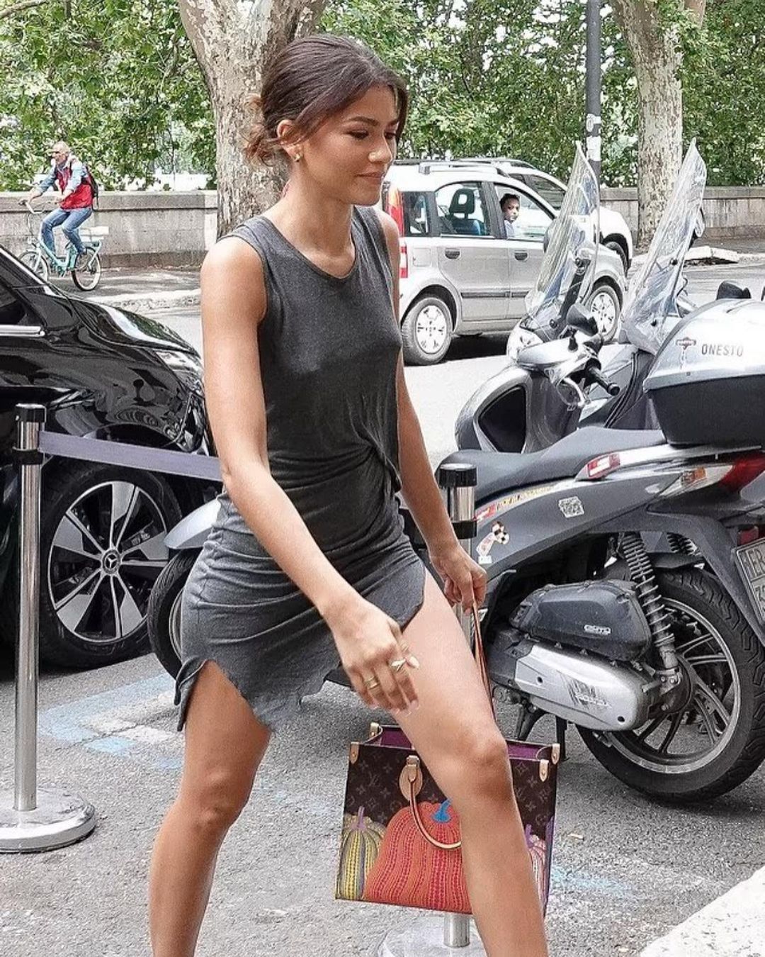 Rita Ora, on the other hand, reached back to Prada's SS23 catwalk for the grey mini dress that almost looked like a bra top and mini skirt. She wore it to a BBC show and teamed it with black patent leather heeled Mary Janes. However, a quiet, luxurious style is not the only way to effectively reject the Carrie-style shift dress, as Zendaya and Emili Sindlev prove. For a shopping trip to Rome's Bulgari shop, the actress dug out a tank top dress from her wardrobe that she had already worn on several occasions and paired it with a Louis Vuitton bag and a pair of loafers. Confirming that pink is not the only colour trending this summer, the influencer wore a model very similar to Carrie's to Roskilde Festival. How did she make it shine? With a bucket hat, knee-high buckled boots and a Gucci fanny pack.