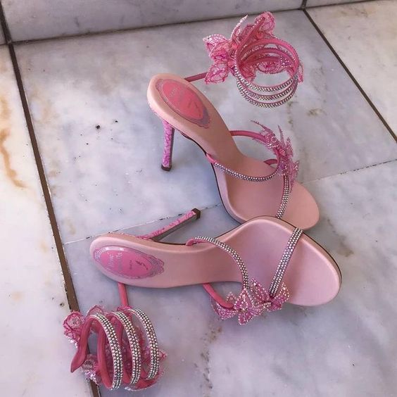Heels with rhinestones and precious stones, possibly in pink, have been researched for more than 95%
