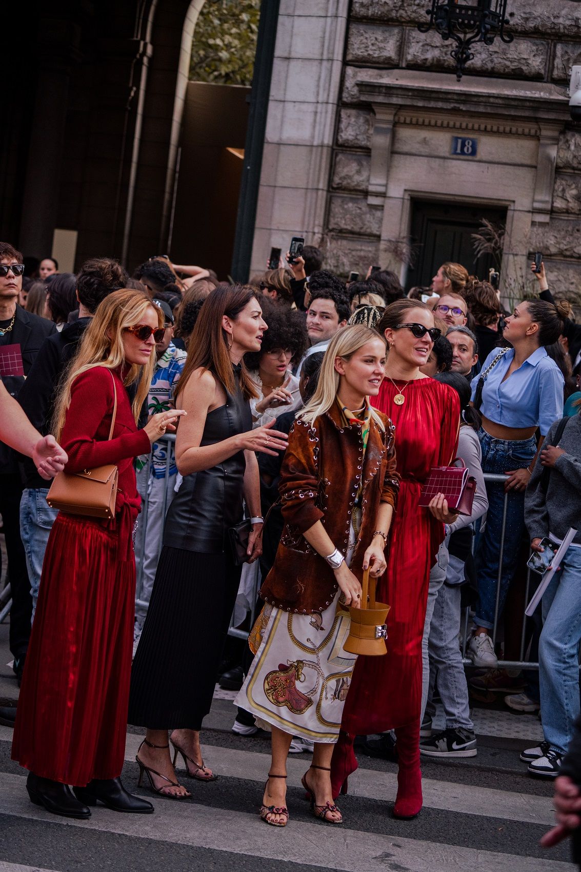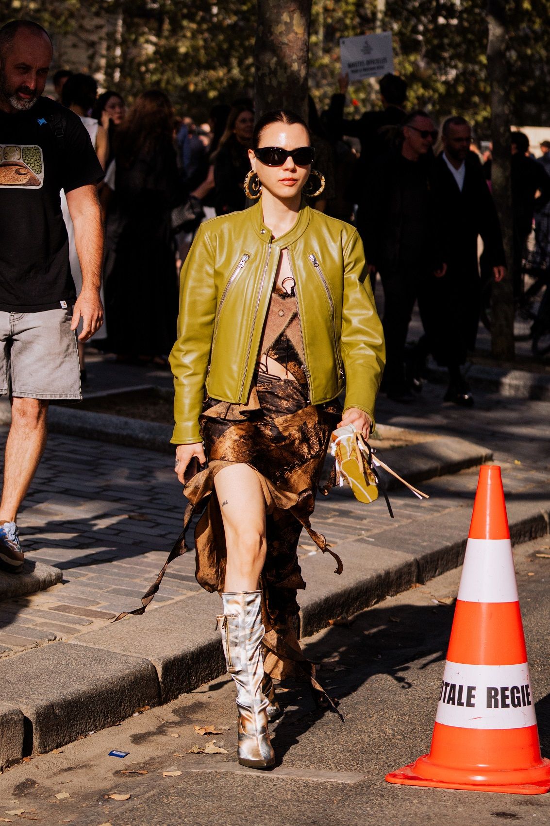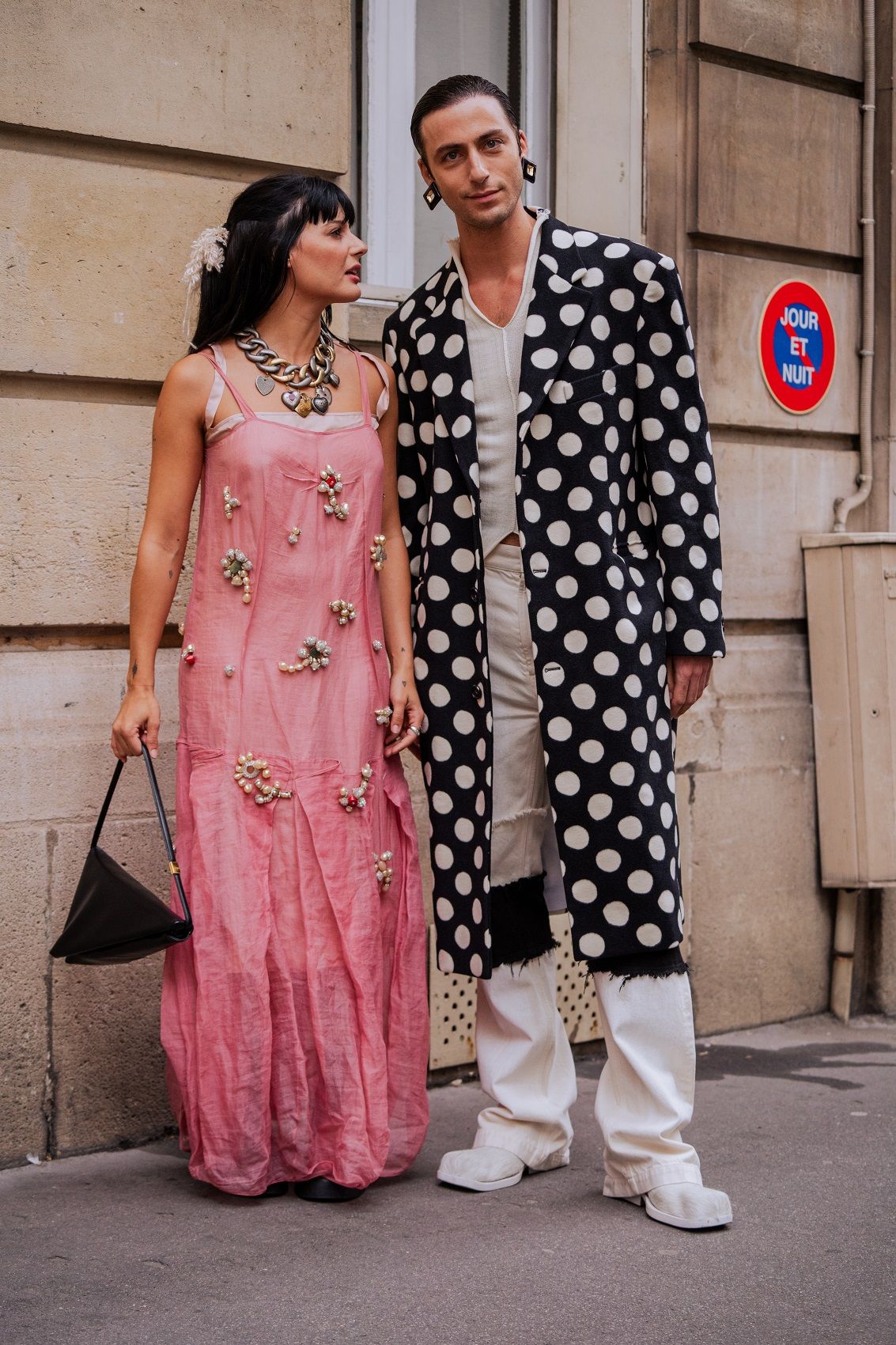 Paris Fashion Week concluded a month of fashion shows for the SS24 season, which consists of clean, minimal lines, casual cuts and reassuring garments that often hark back to the past to dress the future. If the catwalk catches the eye with celebrities walking down the runway or sitting in the front row, and special details like a rose-shaped bag or a brooch in the hair, street style also follows the same trends. The streets of the Ville Lumiere were filled with celebrities and icons such as Paris Hilton, Barbara Palvin, Anna Wintour, Jeanne Damas and Chloe Lecareux. A sober style triumphs but is given a little twist by colour accents, statement accessories and make-up. So green light for polka dots, red, wet hair, kitten heels, socks, transparencies, overlays and anything that helps give the outfit attitude.