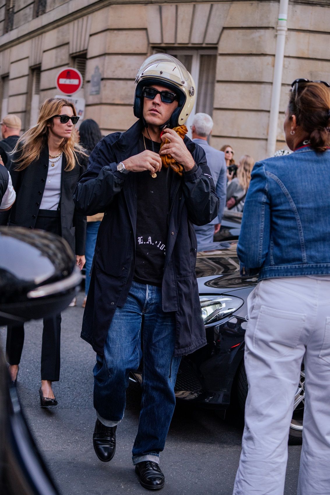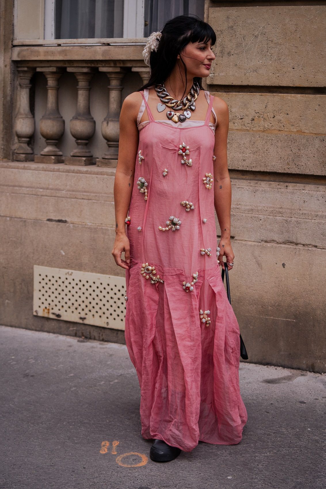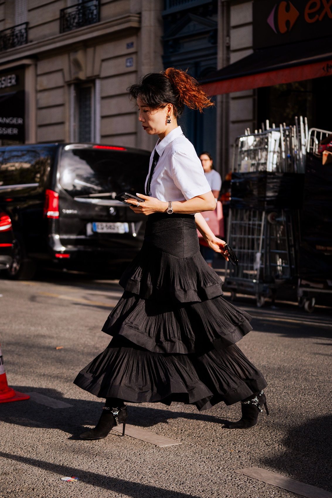 Paris Fashion Week concluded a month of fashion shows for the SS24 season, which consists of clean, minimal lines, casual cuts and reassuring garments that often hark back to the past to dress the future. If the catwalk catches the eye with celebrities walking down the runway or sitting in the front row, and special details like a rose-shaped bag or a brooch in the hair, street style also follows the same trends. The streets of the Ville Lumiere were filled with celebrities and icons such as Paris Hilton, Barbara Palvin, Anna Wintour, Jeanne Damas and Chloe Lecareux. A sober style triumphs but is given a little twist by colour accents, statement accessories and make-up. So green light for polka dots, red, wet hair, kitten heels, socks, transparencies, overlays and anything that helps give the outfit attitude.