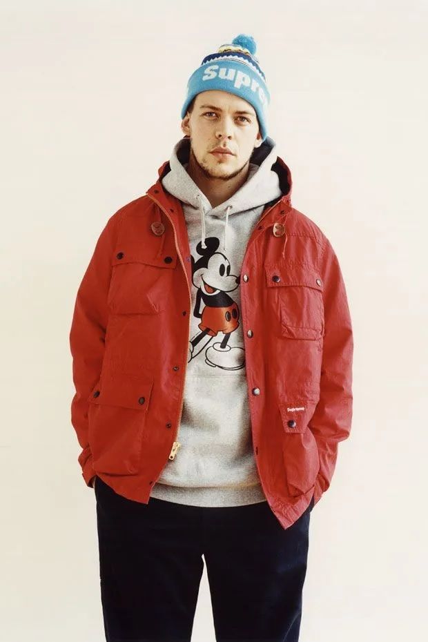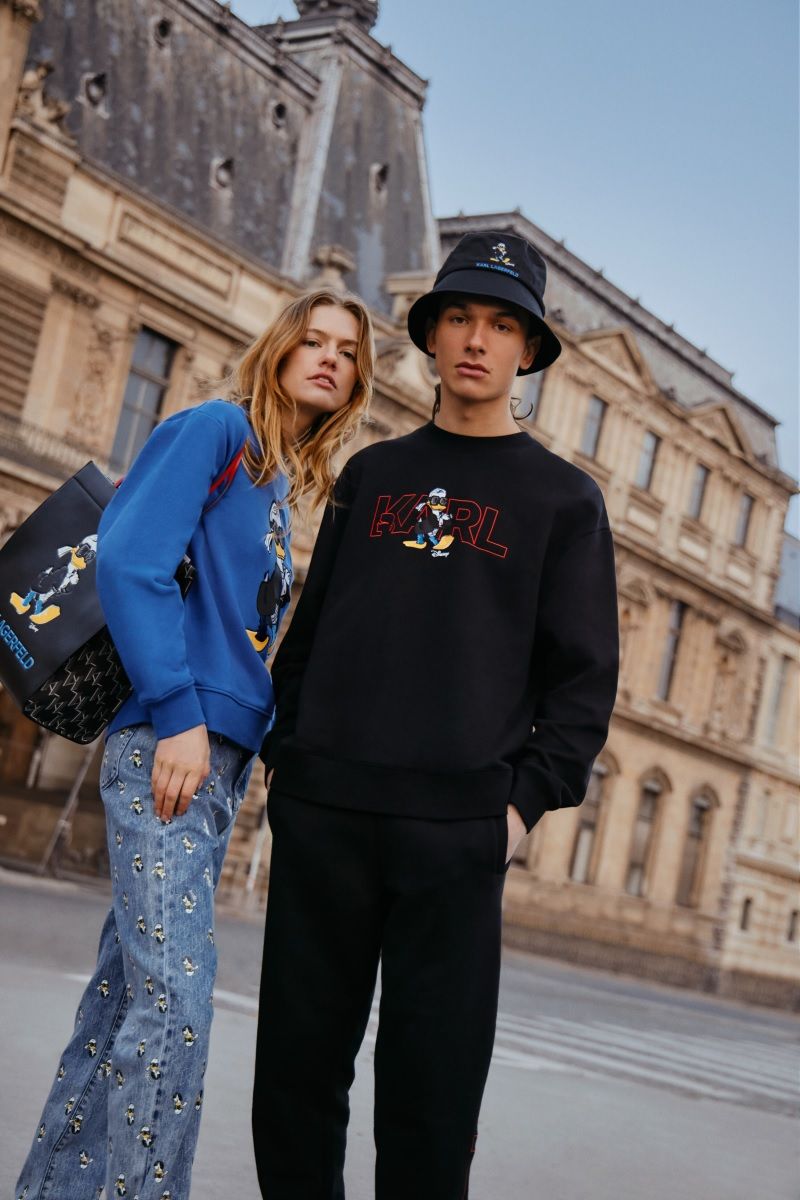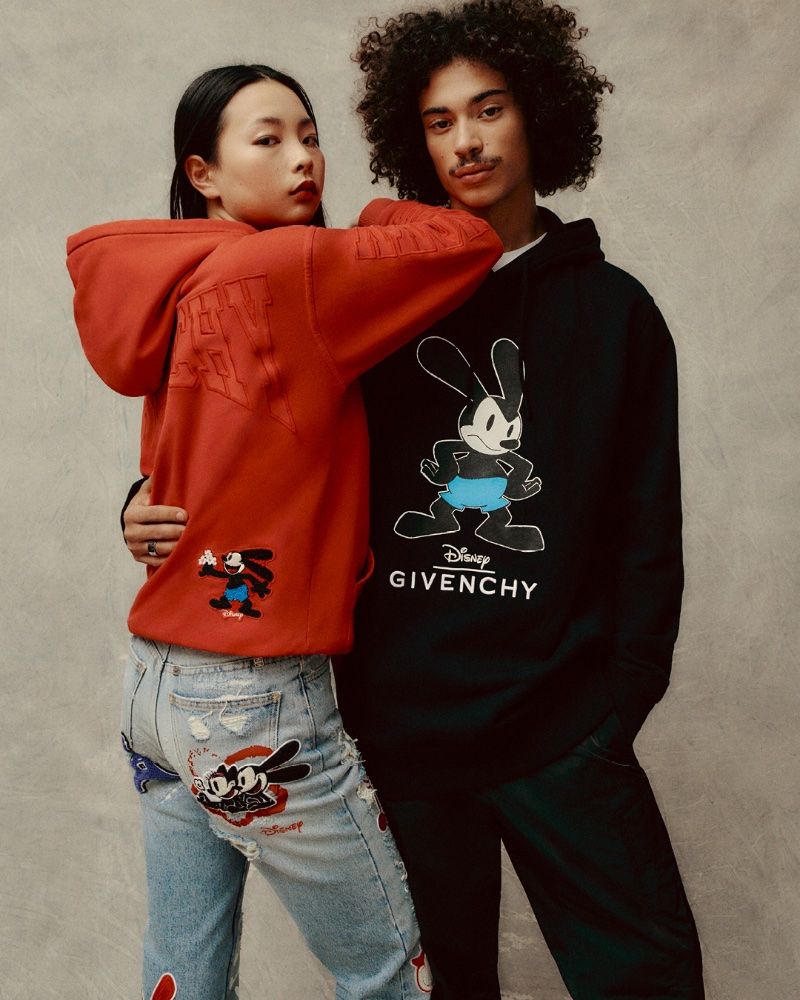 To celebrate Disney's 100th anniversary, many brands created ad hoc capsules. Swarovski presented a replica of Cinderella's crystal slipper made for the 2015 live-action film adaptation starring Lily James. The brand's team put in 150 hours of work to create a dreamy, romantic and brightly glowing piece carved from solid Aurora Borealis crystal, known for its dazzling reflections, thanks to 221 facets. Karl Lagerfeld, on the other hand, reused an old sketch of Donald Duck made by Kaiser Karl on a variety of items, from bomber jackets to handbags, featuring the duck wearing blue jeans, a black blazer over a turtleneck shirt, dark sunglasses and a white ponytail. Also for the Disney centennial, Schiaparelli's Daniel Roseberry transformed Cody's flight over Marahute in the film The Rescuers Down Under into a massive gold and Swarovski crystal necklace. The jewelry was sold for charity in support of Make a Wish. In 2022, Stella McCartney took inspiration from Fantasia, combining recycled materials and vintage silks with the stars of the 1940s musical film. A few years earlier, Miu Miu released a range of jumpers with motifs from Bambi, Alice in Wonderland and the Aristocats. in 2016, Kenzo used its archival prints with elements from the original 1967 Jungle Book for a men's and women's collection with tropical motifs and silk shorts directly inspired by Mowgli's iconic costume. Also in 2016, Judith Leiber created a bag inspired by Snow White's poisoned apple, a cluch in the shape of a red apple, studded with crystals. Givenchy has collaborated with Disney several times before, launching capsules inspired by One Hundred and One Dalmatians, Bambi and an early version of Mickey Mouse. Mickey Mouse himself is the most popular motif in fashion to celebrate Disney's legacy in pop culture. The image of the mouse with the big ears and yellow gloves has graced the garments of many brands over the years, including SupremeBAPEVansCOMME des GARÇONSUniqloCoachOpening Ceremony e Tommy Hilfiger.