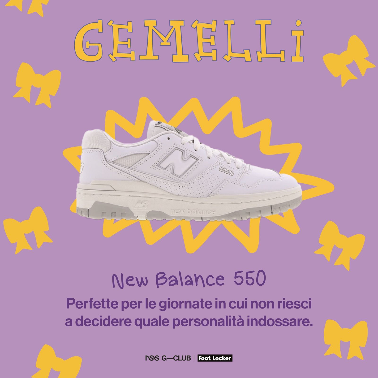 Positive, eccentric, original, curious, intelligent, energetic, extroverted, versatile, Gemini loves novelties and cross-pollinations. The sneaker that suits this mood is the New Balance 550. Inspired by the original model that, since its debut in 1989, has defined an entire generation of basketball legends, it stands out for its unmistakable retro look that adapts to any outfit. From the power suit worn for the office to the mini dress for a night out with friends, the New Balance 550 suits every occasion and every facet of the mutable personality of a Gemini.