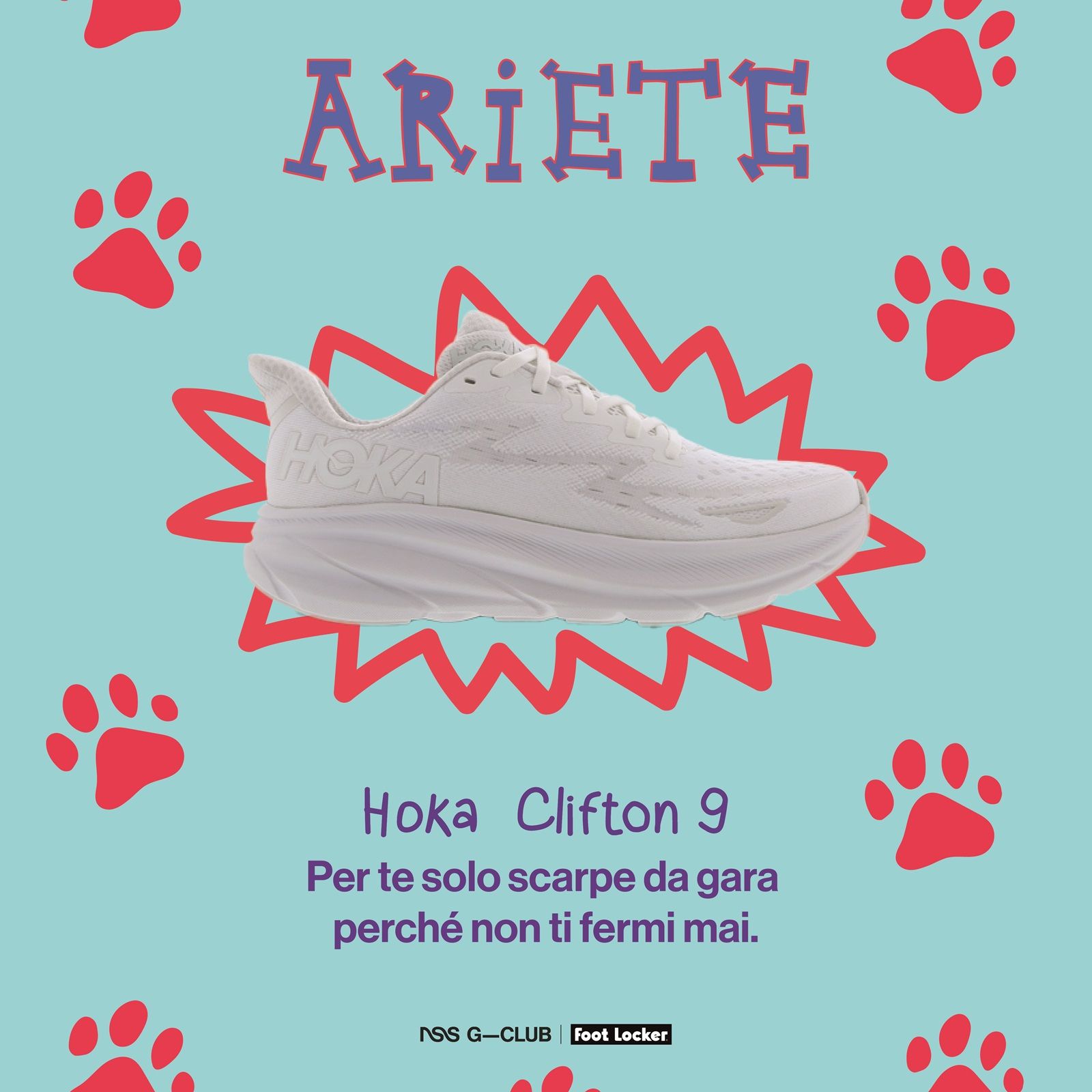 Aries, being the first sign of the zodiac, is a natural trendsetter. Ruled by Mars, it's bold, ambitious, always on the move, ready for adventure, leaving a mark wherever it goes. That's why the sneaker that best represents it is the HOKA Clifton 9. Just wear it to feel the energy of great runners. Made with an engineered mesh upper, featuring new responsive cushioning, and finished with a Durabrasion rubber sole, this shoe gives wings to the feet, allowing Aries to tackle any path it chooses to take.