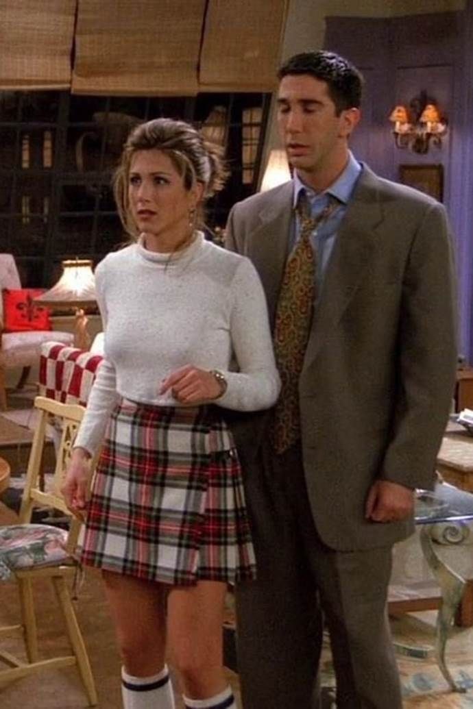 With a look nothing quiet, rather subtle, chic, and cool, labels like Bottega Veneta, Ferragamo, and Miu Miu would be part of Rachel’s accessories repertoire. She would be a frequent guest at fashion shows, attending mostly Louis Vuitton and Ralph Lauren ones. Speaking of Ralph Lauren, as a Lauren girl at heart, she would embrace the label’s taupe and beige looks seen in the Fall of 2024. But the thing she loved the most was definitely plaid skirts. And that wouldn’t likely change as discussions on preppy this, corpcore that hit our screens. So keeping with the much-loved checkered skirts, the Friends character would wear those seen in Chanel Pre-Fall 2024, Versace Fall 2024, N.21 Fall 2024, Burberry Resort 2025, and Self Portrait Resort 2025.