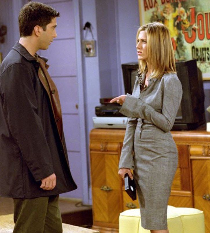 With her fashion sense always on point – whether from her days as an assistant buyer at Bloomingdales, a buyer at Ralph Lauren, or at a rewarding position at Louis Vuitton – she would always have her eyes wide open to the latest trends and designer collections. When on duty, Rachel Green would put a cool twist on workwear – with looks such as in Staud Resort 2025 brown cardigan paired with plaid pants and a giant bag; Tod's Resort 2025 draped dark chocolate leather skirt, white blouse, and beige bag; or Hervé Léger Resort 2025 white turtleneck and a midi black crocodile-like skirt.