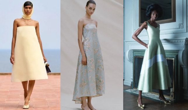As for the classic ‘90s slip dresses, those recently seen in Saint Laurent Pre-Fall 2024, Tove Resort 2025, and Self Portrait Resort 2025 would be some of her choices – not to mention various vintage ones she would search in high-fashion thrift stores. Despite the traditional nineties staple and the most sophisticated and sleek items seen, Rachel Green’s style isn’t all about neutral shades – the hardcore fashionista also enjoys some candy-colored looks. With pastel shades being rescued mainly by Greta Gerwig’s ''Barbie'' film, this Friends’ craving for something sweet would only increase. Donning pastel dresses like the Jacquemus Fall 2024 strapless butter yellow one for a summer vibe, Staud Resort 2025 floral baby blue more formal one, and Greta Constantine Resort 2025 mint gown for pure refinement in special events or when going out, Rachel Green's fashion lexicon would prove to be quite complete.
