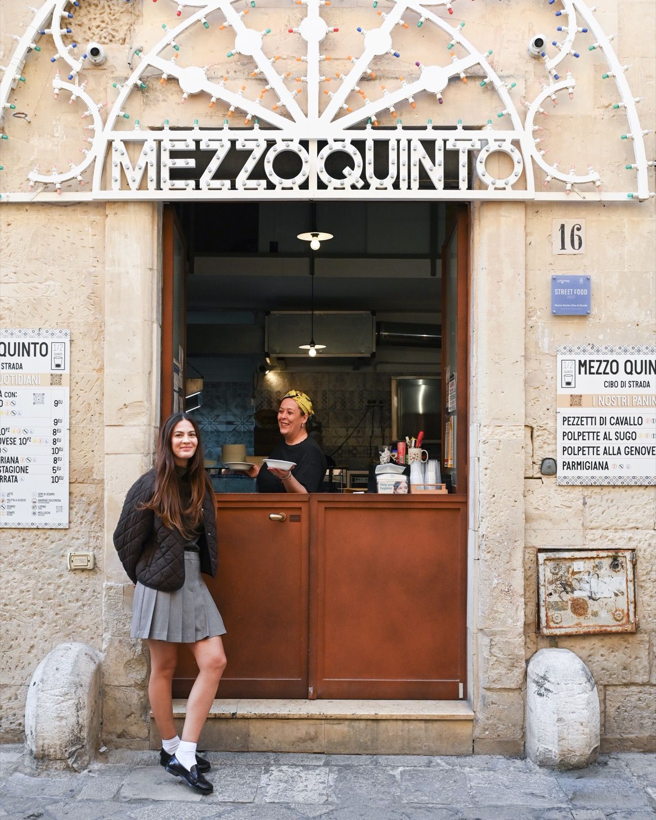 Speaking of breaks, after so much cycling, it’s time to grab something to eat. In Lecce, the options are endless! "Quinto" is perfect for a Salento puccia, while "Mezzo Quinto" is famous for its tomato-sauced meatballs, which are incredible. To take home even just a crumb of this wonderful Lecce atmosphere in the form of food, explore "Valentina Specialità del Salento," the perfect spot for a chat and to be enveloped by the aroma of Salento delicacies. Trust Mrs. Valentina’s recommendations. At "Angiolino," "Mamma Elvira," and "Le Zie," you can experience authentic Salento cuisine, from land and sea. At "Natale," on the other hand, you breathe the atmosphere of historic trattorias.