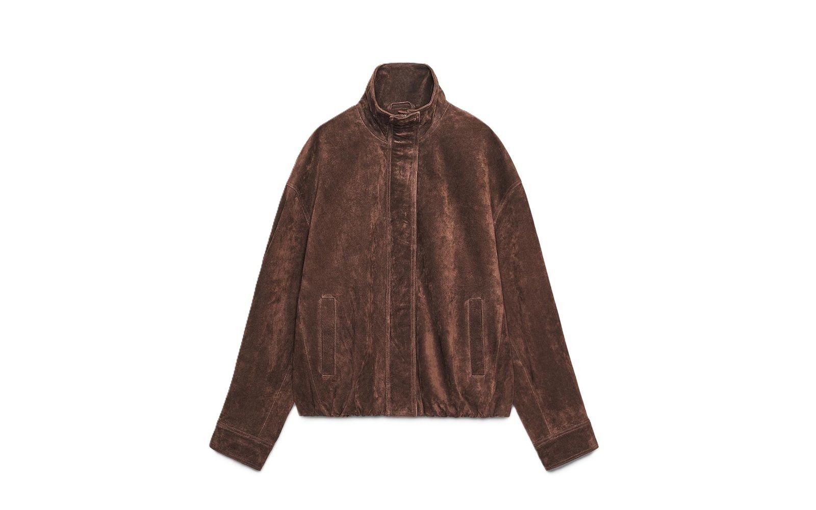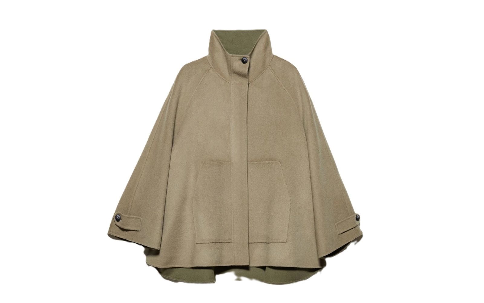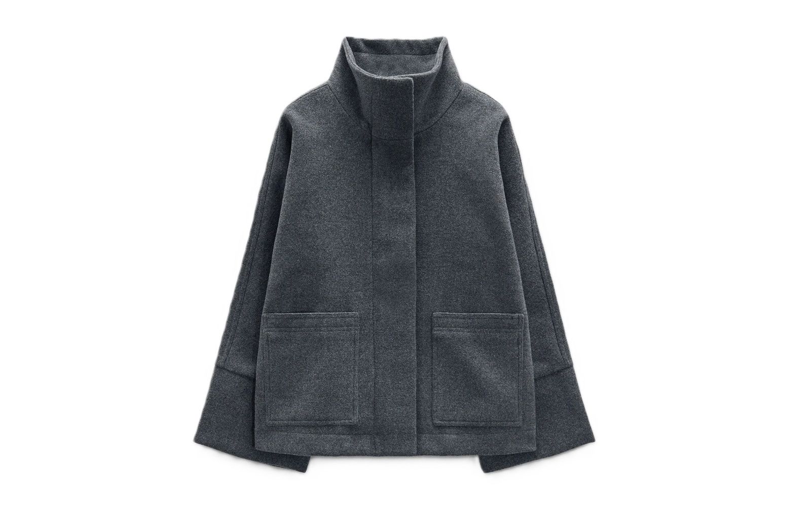 The undisputed star of this winter? The funnel neck. Tall, clean, sculpted: it returns as a symbol of contemporary elegance. It rises around the face like a sculpture, drawing a decisive profile and turning even the simplest jacket into something visually memorable. Wool and cashmere reign in the softest, coziest versions, while nylon and leather offer a more urban and sharp twist. The wardrobe fills with outerwear that protects, defines, tells a story. Those who want a more structured option, almost like a cosmopolitan heroine who doesn’t fear the wind whistling through the boulevards, will love the Alta Vision Short Puffer Jacket by Rains, with its refined silhouette reminiscent of a futuristic cocoon and its windproof PU fabric made for the coldest climates, yet aesthetically clean like a Nordic runway look. Also beautiful and accessible, with strong urban character, is the high-neck jacket by Parfois, oversized, soft, linear, with a hidden zip and snap closure. Need a jacket that works for an important dinner right after the office? There’s the Letizia double wool jacket by Max&Co., with its signature A-line flare and wrist straps. Leather is also firmly part of the trend. One example is the Gamma jacket by Soeur, in soft leather, rounded lines, long sleeves and an important high collar, with back darts that sculpt the volume almost like a piece of wearable art. Still leather, but with a more relaxed charm, is the Reinvented Suede Jacket by Róhe, a cognac suede bomber with a high collar and snap buttons.