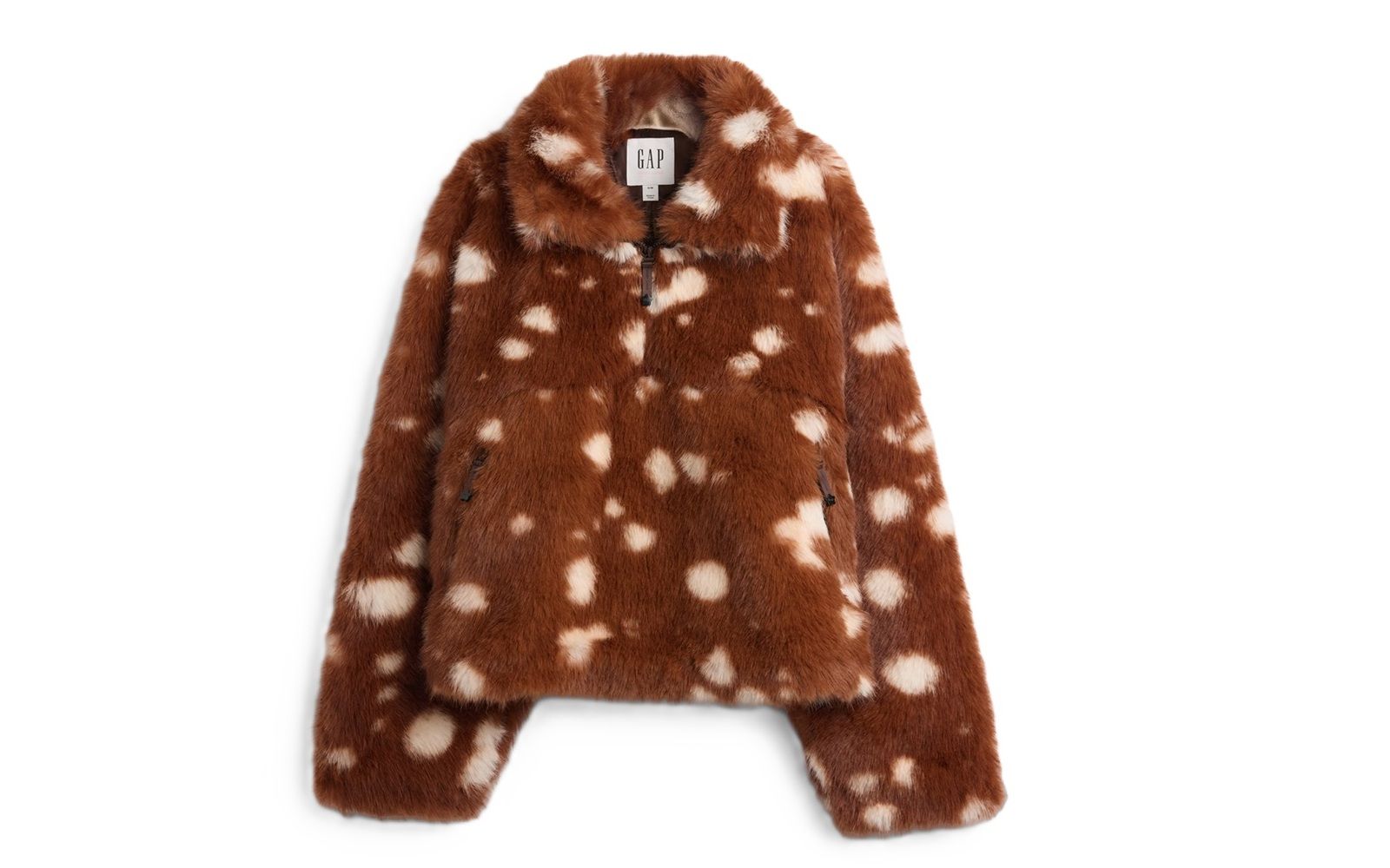 This season also brings a strong comeback for faux fur. A piece that combines warmth with a touch of theatricality and often a hint of eccentricity. Among the most sought-after is the Desigual jacket designed by Monsieur Christian Lacroix, also worn by Sienna Miller, featuring multicolor shades, front pockets, and light volume. More neutral and minimalist yet equally cozy is the Stefanel faux fur jacket, beige, soft, warm, with a reassuring elegance that works with denim, tailored pants, or a midi dress with high boots. Equally chic but more affordable is the Mango faux fur jacket, an urban cuddle with a refined allure without being too much, perfect for those who love eco fur in a sober, chic style. Animal print lovers can opt for the leopard print version by Ba&sh or the Gap x Sandy Liang capsule featuring deer-like spots (the Bambi spots are one of the season’s unexpected trends).