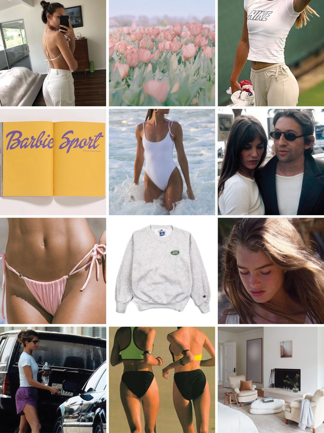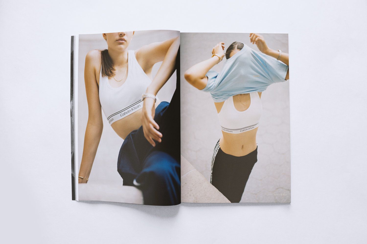 The Sporty & Chic page is a vision board featuring '90s models, architecture, interior design, ad campaigns, simply what inspires and shapes Emily's imagery, with a particular focus on the female body. The aesthetic of the moodboard is not too different from the one of JJJJound, characterised by a grey palette and unexpected but always cool pictures. Started as a side project, Emily decided to turn it into something physical: a magazine. More than 60 pages ranging from interviews, essays and photography, to architecture, design and pure fashion.