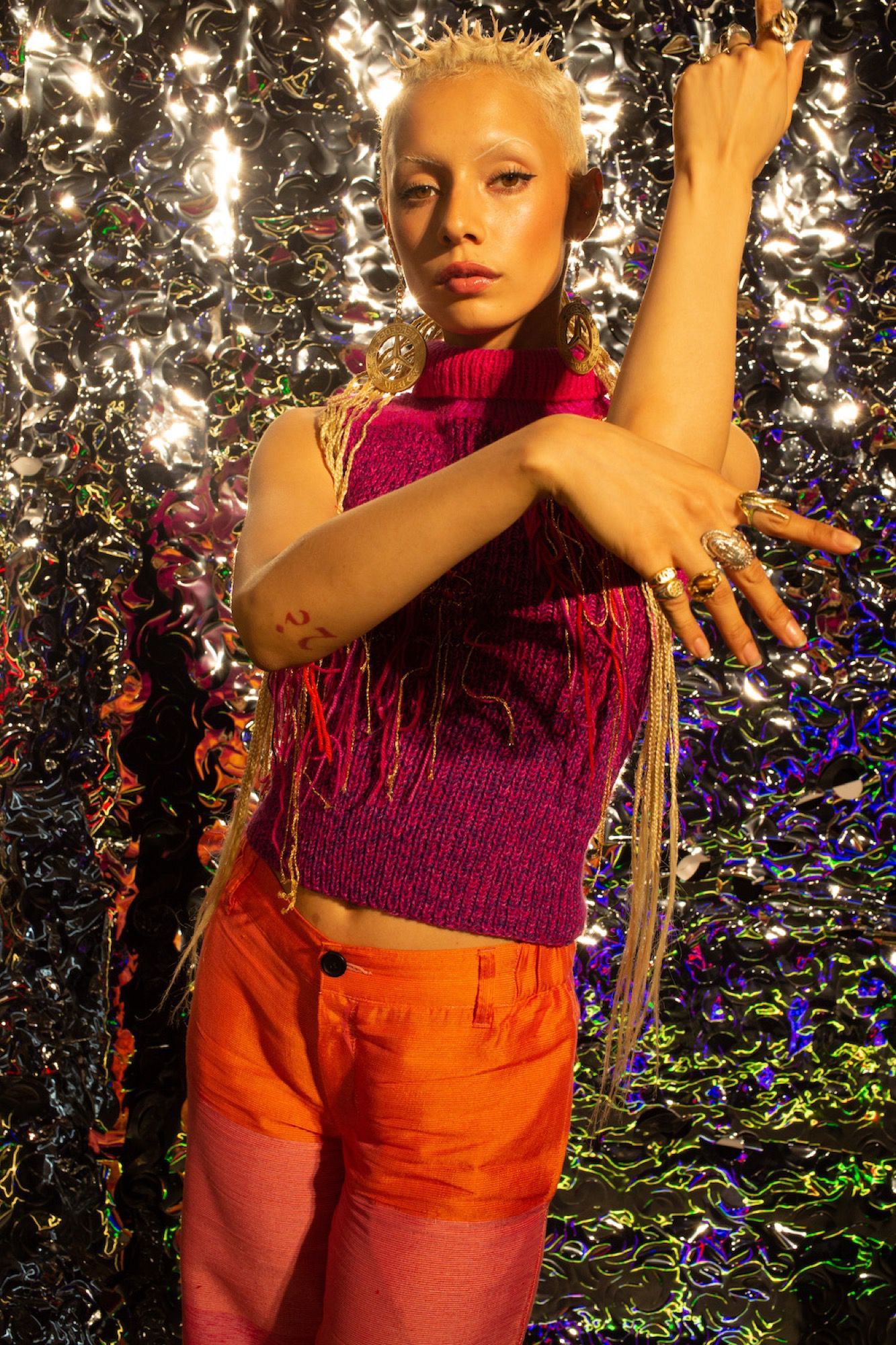 With her androgynous, almost extraterrestrial look, her very short platinum blonde hair and bleached eyebrows the face of Jazzelle Zanaughtti, better known as @uglyworldwide, has revolutionized the fashion industry, introducing a new aesthetic and imagery.