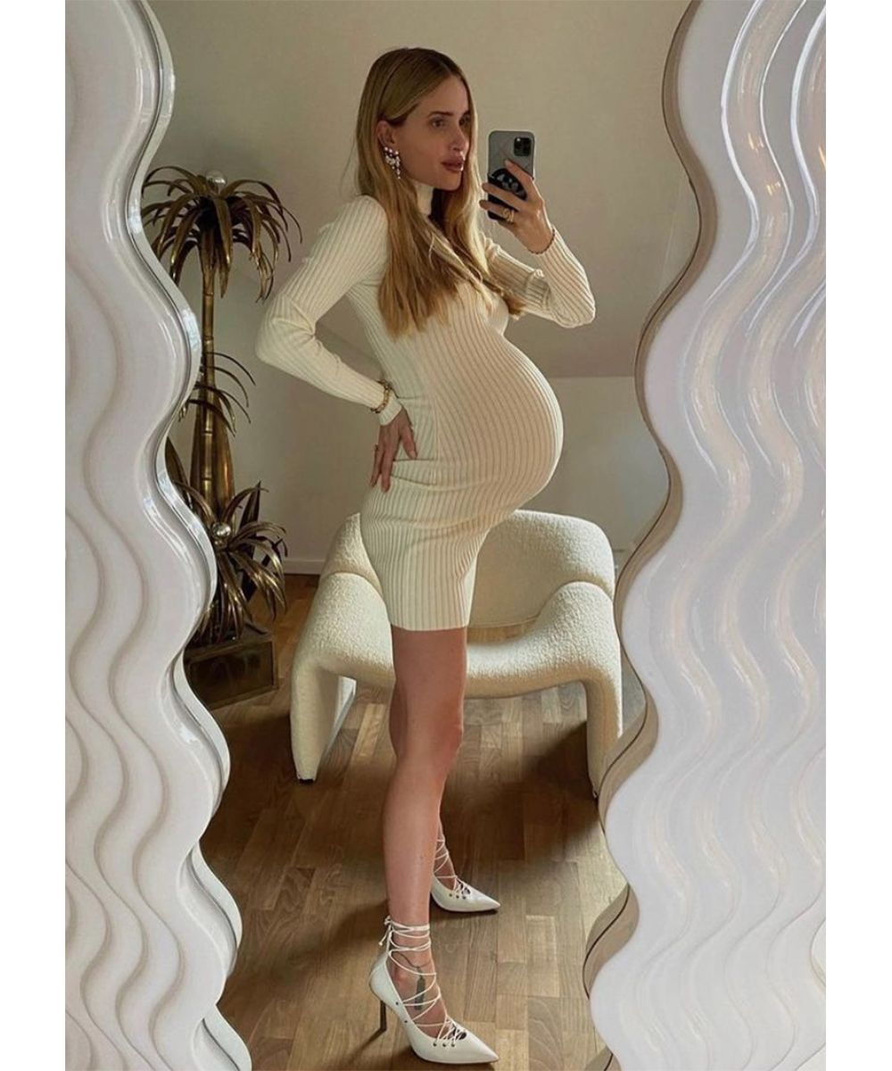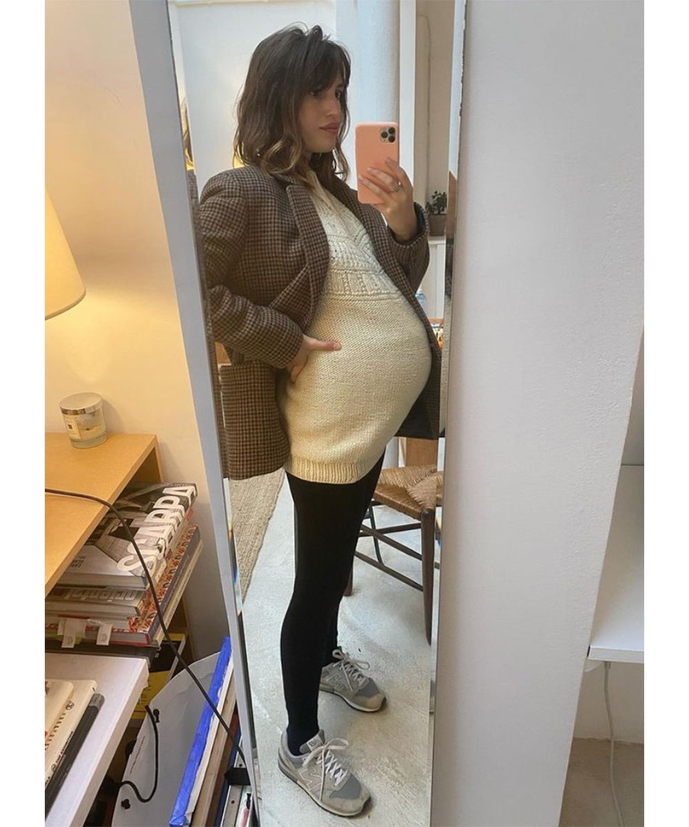 "The golden rule is to embrace your body and its beautiful new curves" says the 28-year-old entrepreneur, founder and director of the Parisian brand Rouje, mixing chic and french-inspired style with a vintage echo. Jeanne Damas is an expert in style, with her easy-chic pregnancy looks. Her outfits, from the pregnancy reveal to the last days before childbirth, were characterized by attention to details, accessories and shapes with an 80s inspiration. Stretch materials, sweaters, woven yarns and belts were Jeanne’s best friends during her maternity journey. The only style regret? Not being able to wear her favorite vintage jeans, she told Vogue France. But according to her radiant face, the joy of motherhood is priceless compared to that.