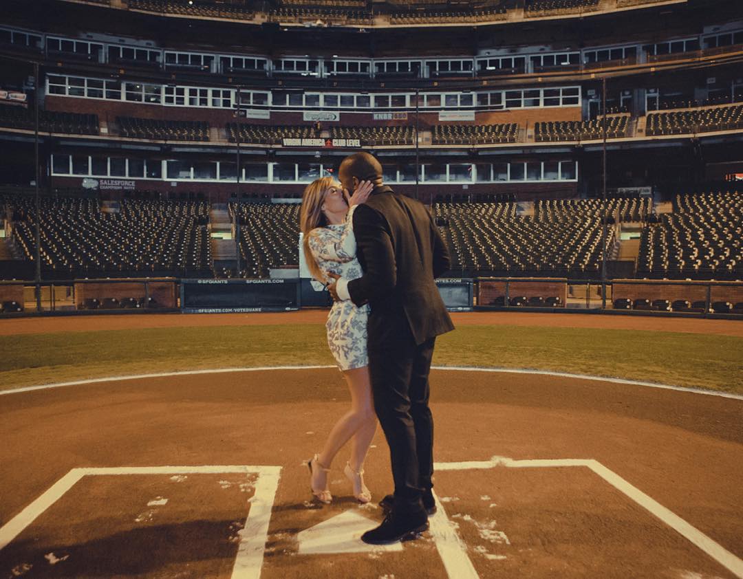 Kanye rented the T&T Stadium in San Francisco to propose to Kim. The ceremony, perhaps of the most extra in engagement events history, included a symphony orchestra and a "Please marry me" on the stadium’s jumboscreen. About nine months later, Kimye earned the April 2014 Vogue cover shot by Annie Leibowitz and the record of first interracial couple to occupy this place of honour.
