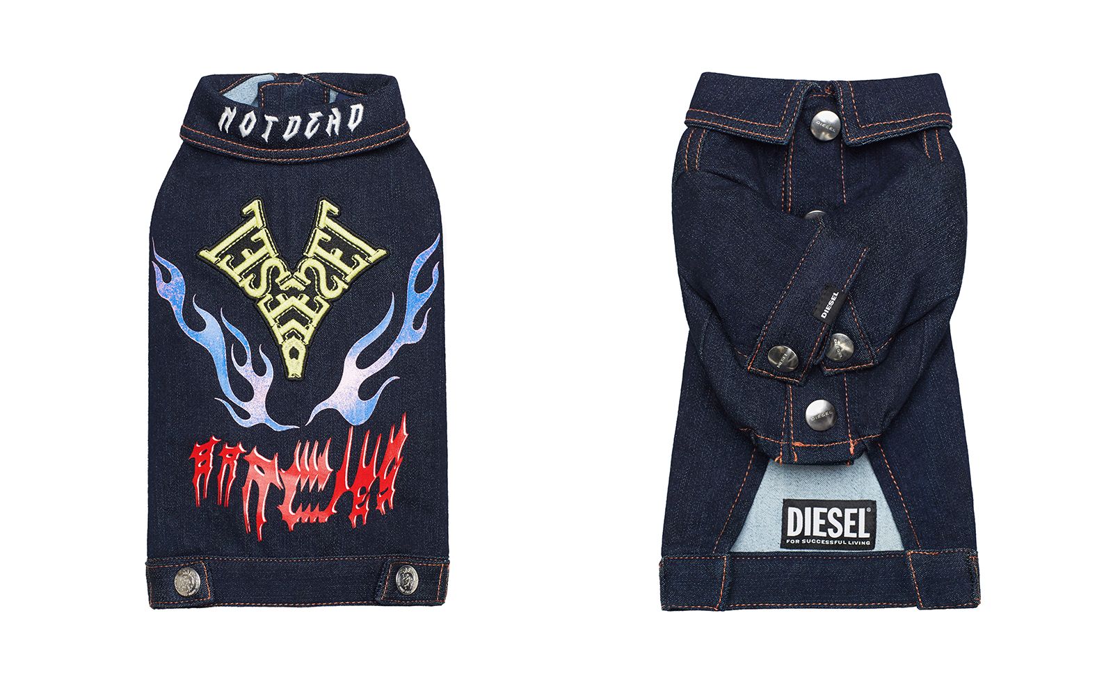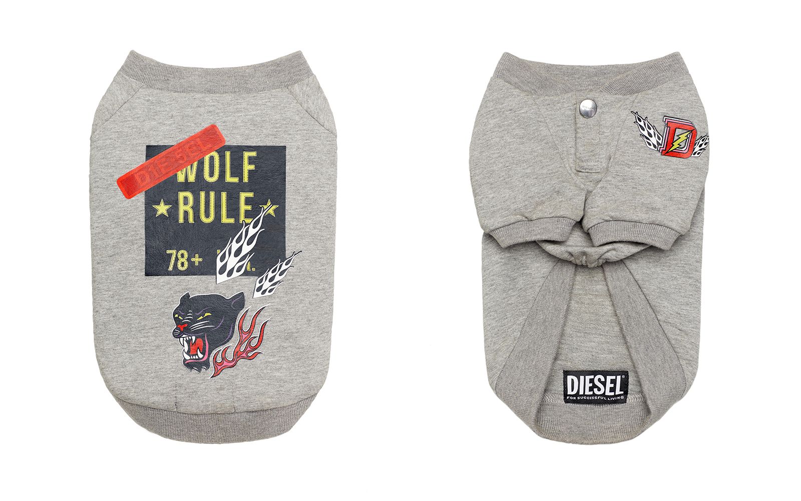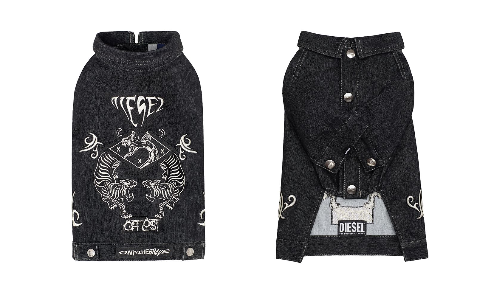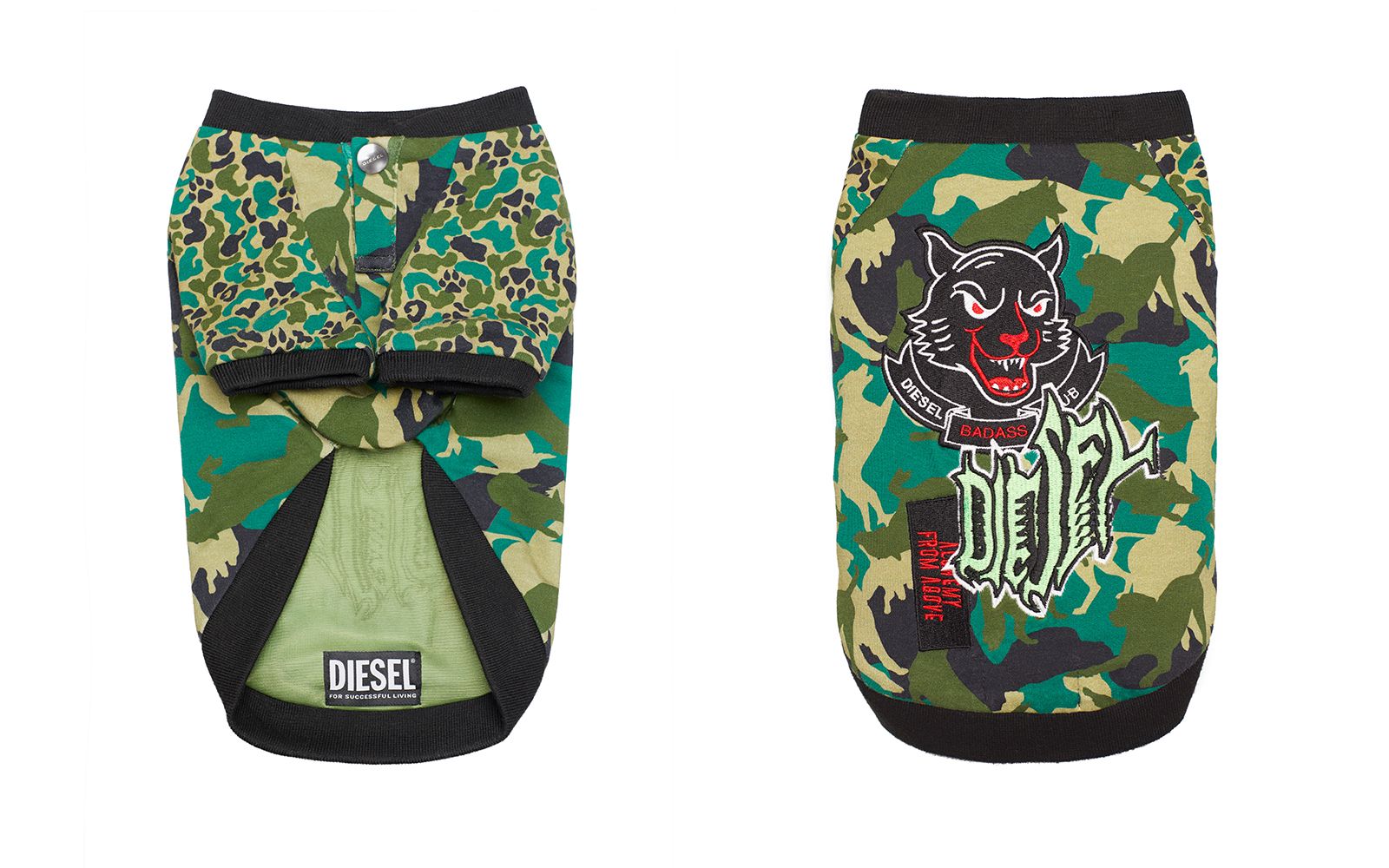 DIESEL has just announced its very first petwear collection, named Diesel Doggies Collection, which includes 4 garments designed for toy dogs and small four-legged friends: two denim jackets with rock'n'roll-inspired patches, and two sweatshirts in gray and camouflage. The collection is already available in selected stores and on the brand's website.