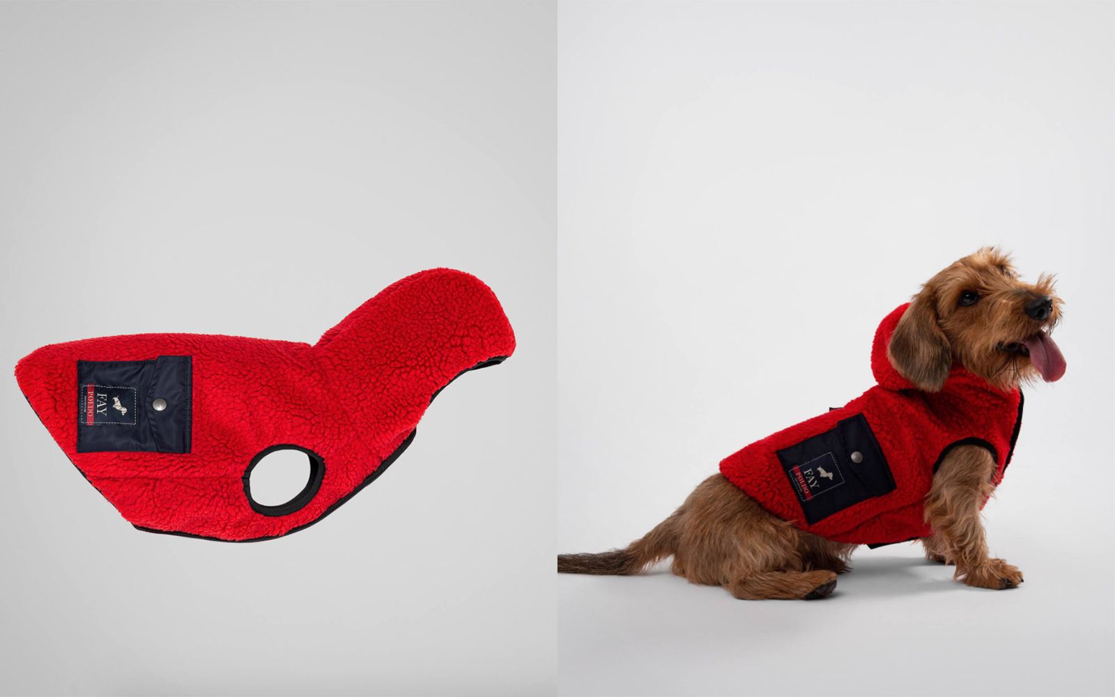 The luxury petwear brand Poldo Dog Couture never stops and continues to collaborate with big names in fashion, and after Moncler and Dsquared2 now it's time for FAY, a brand that has transformed workwear into cool clothing for everyday use. The two brands have reinterpreted FAY's iconic garments, such as the padded jacket and fleece, making them functional and pleasant for 4-legged friends.
