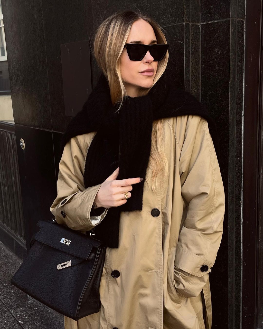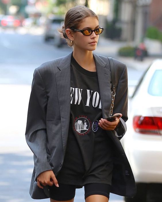 The evegreen eyewear par excellence is black, with its no frills and suitable for every face style. The cat-eye frame is angled at the sides to lift up the face is loved by all the celebs in everyday life. Hailey Bieber never goes out without her pair of black YSL cat-eye sunnies, which prove to be perfect both with more comfortable outfits that for the Paris Fashion Week complementing a look entirely designed by Bottega Veneta.