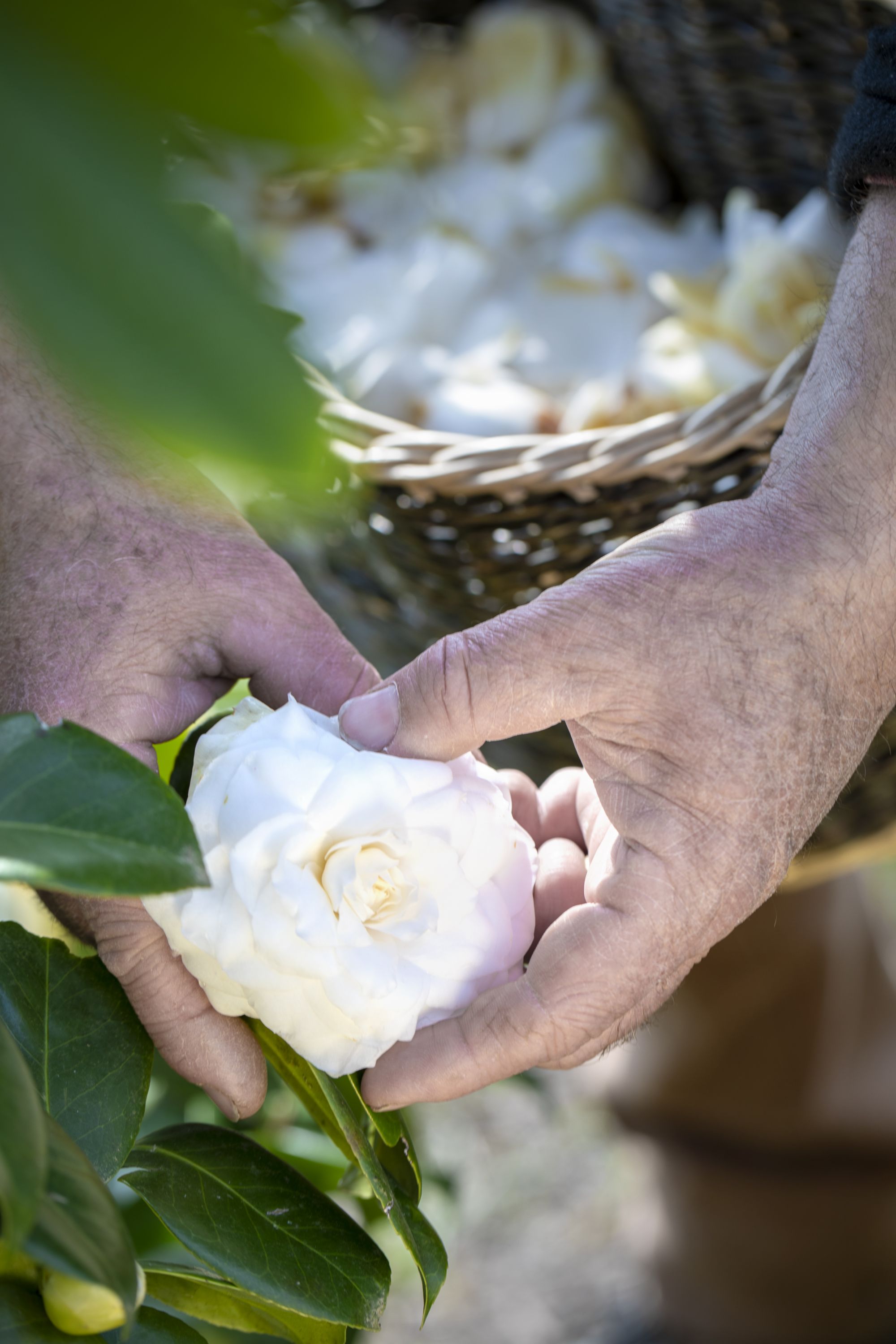 "Here everything is natural, we accompany it, without trying to control it. This also applies to the harvest, done entirely by hand. The camellia flowers are collected one by one, after the morning dew has disappeared, so that they are dry for optimal extraction. Then they are deposited inside baskets. After weighing, the flowers are immediately frozen to preserve the integrity of the active molecules before being sent to the laboratory" - explains Philippe Grandry, manager of Chanel crops on the farm.