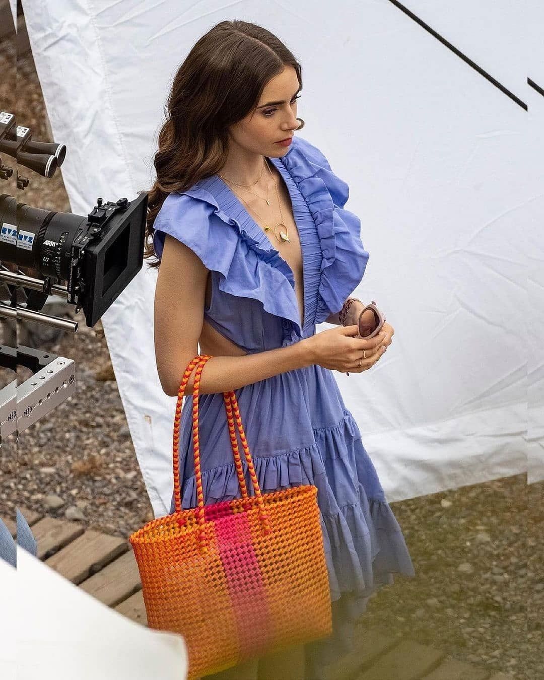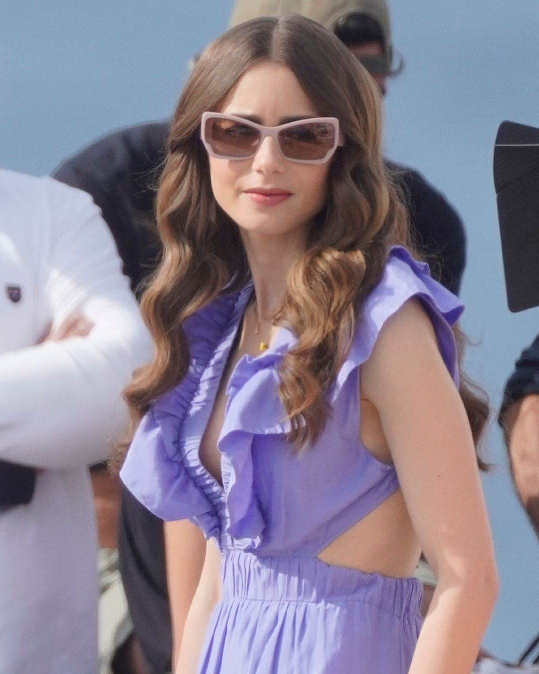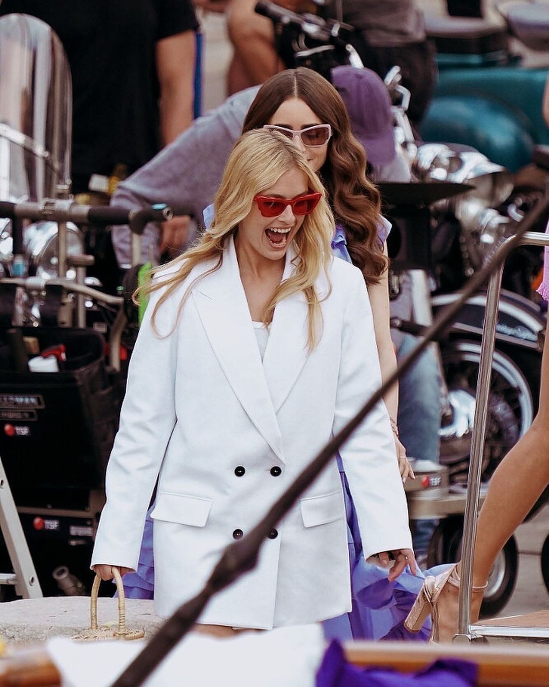 Although they have often been criticized as being too stereotypical, it is undeniable that part of the success of Emily in Paris is due to the outfits worn by Emily and the rest of the cast. Fashion will maintain its central role even in the second season, as shown by the first images coming from the set. Among the looks, created by Patricia Fields (legendary costume designer of Sex and the City), that the young American girl and her friends wore during the filming in Saint-Jean-Cap-Ferrat, in the south of France, we can find a summer mini dress with mix'n match prints, combined with a black and white bucket hat; a turquoise bikini; a lilac dress full of ruffles; a checked trench coat and many oversized sunglasses recalling Hollywood divas such as Audrey Hepburn.