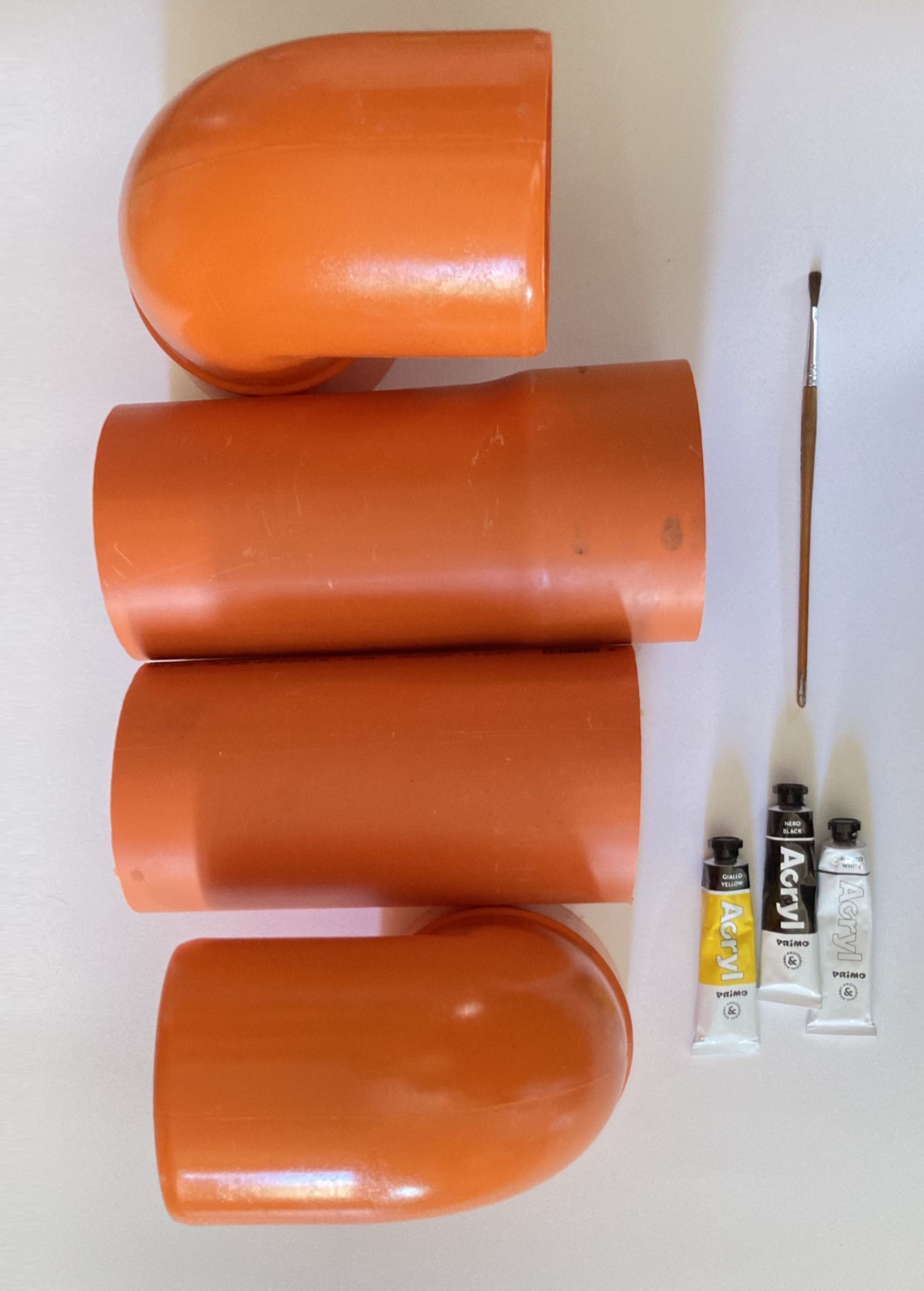 In the experiment we used simple plastic pipes; if you don't have work in progress at home, to find them you can just go near construction sites and find them abandoned in different shapes, sizes and colors like orange, but also red, yellow, gray... Just choose your favorites and start playing with them, assembling them together, and trying to compose a super cool sculpture. If the base color does not convince you, you can paint the tubes in your favorite color; the acrylic will be perfect. But here's the step by step guide on how to recreate the super cool DIY vases.