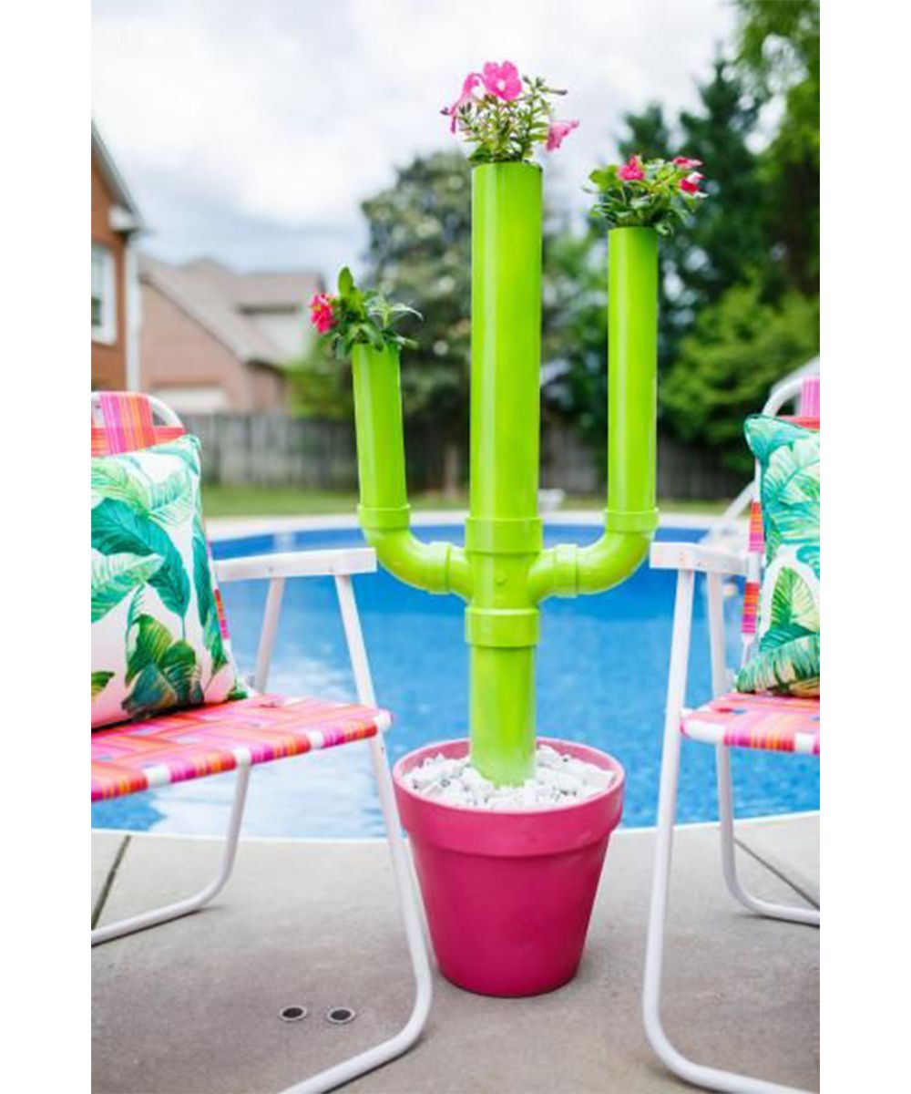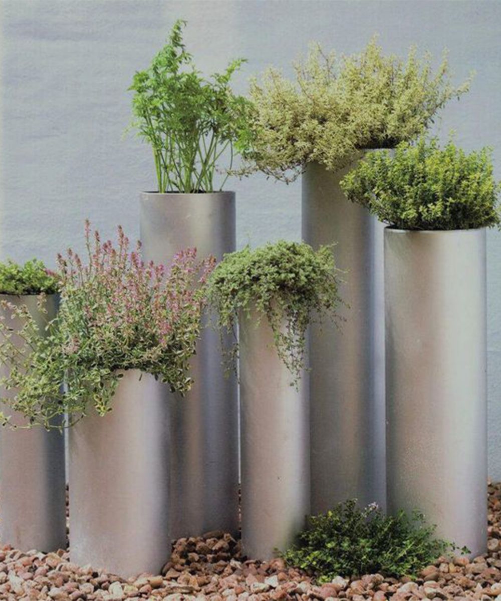 PVC or metal pipes, acrylic paint and a brush (optional), plants.