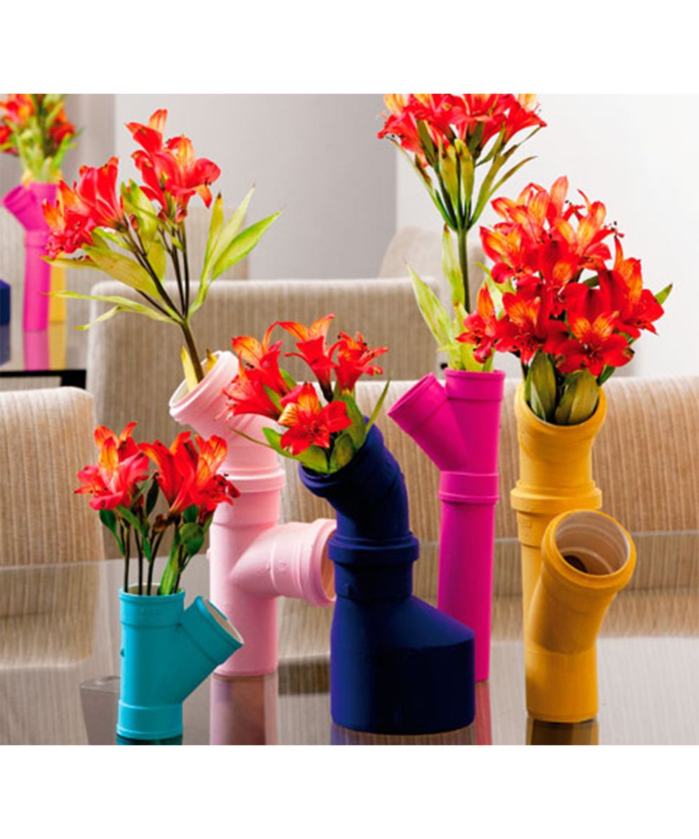 In fact, the nice thing about these tubes is that not only are they solid, durable and often colored materials, but they work interlocking, so their assembly can give rise to the most disparate shapes. n In a few minutes and having fun, you can have colorful vases similar to minimalist pieces of art; an example are the works of the French designer François Xavier Ballery, who took inspiration from these very common pipes to create his Pretty Vase Collection. Or Kodai Iwamoto, who a few years ago presented at the Milan Design Week, PVC vases made with the glass blowing technique, which he used to remodel the pipes and completely transform them into something new.