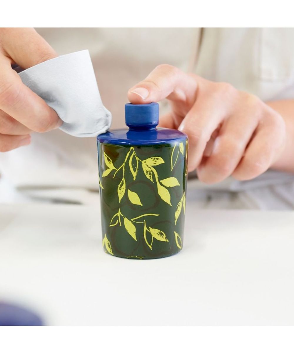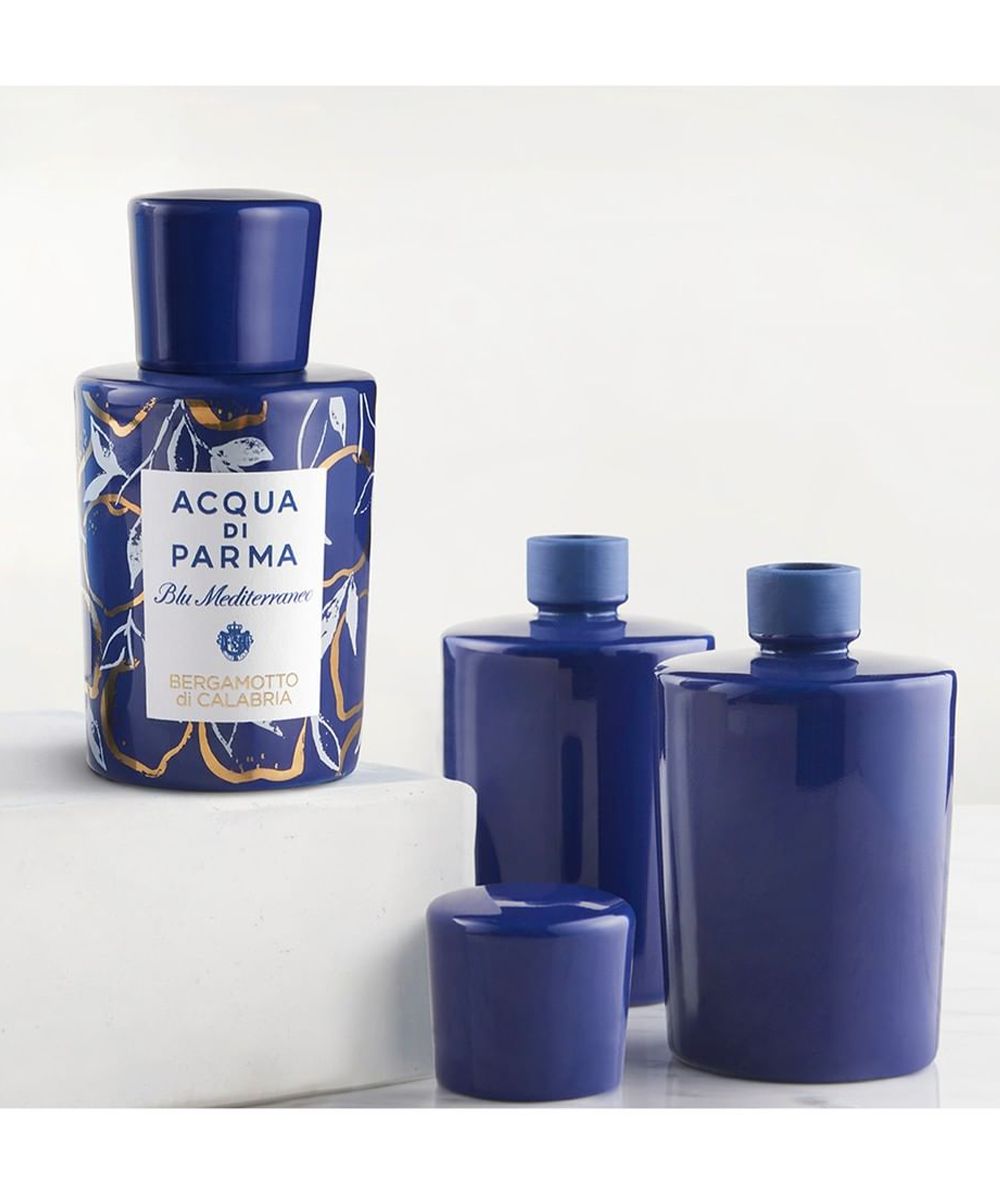 Offered in an elegant cobalt blue porcelain bottle decorated with white fruits and golden reflections, the fragrance, available only in the 100ml format, is a precious limited edition. The bergamot opening is enhanced by notes of mandarin and orange that enhance its juicy and fruity accents, while grapefruit enhances the more bitter ones. The green notes of galbanum reveal the mineral nuances and floral scents of geranium, highlighting its enveloping sweetness.